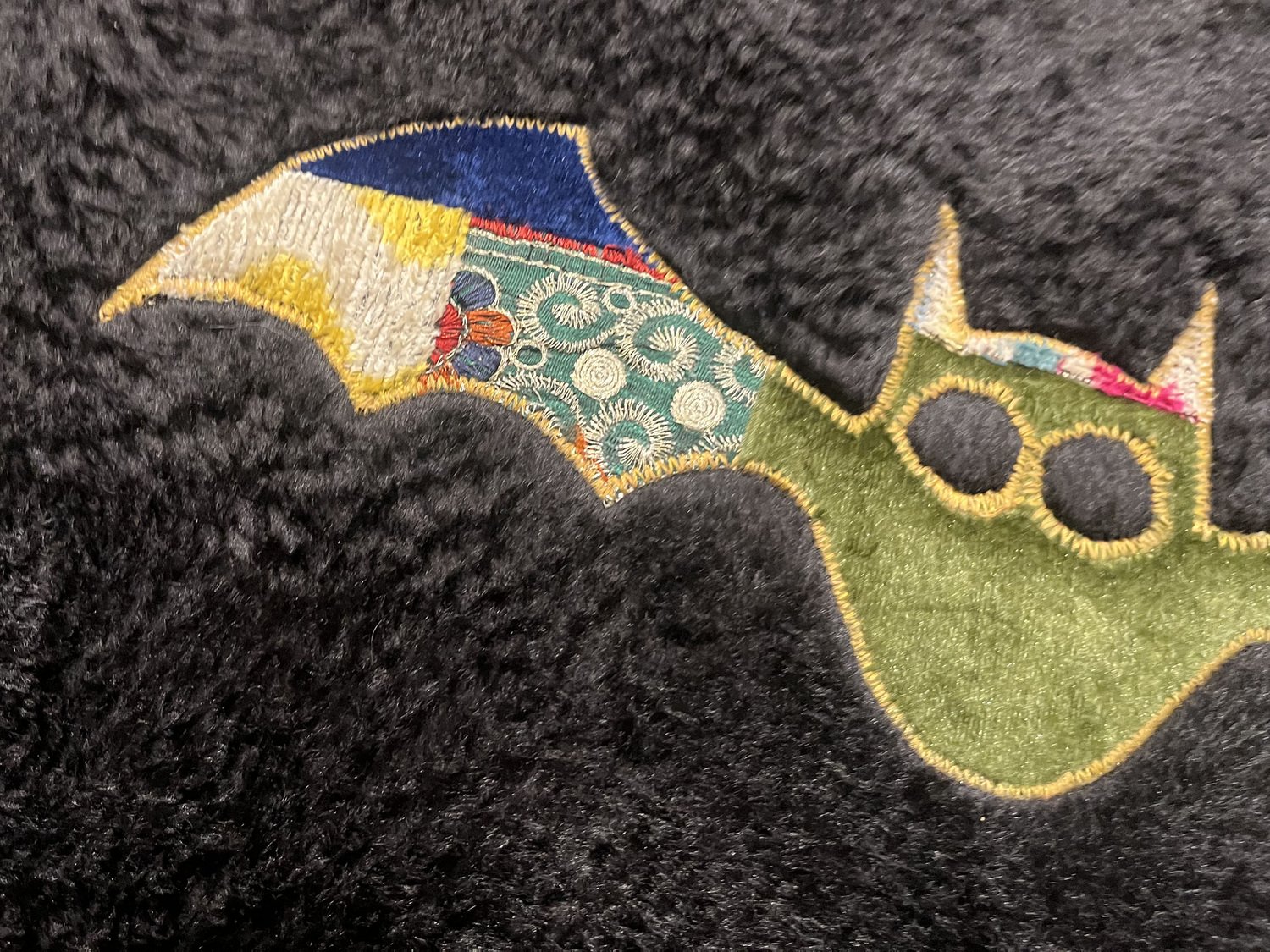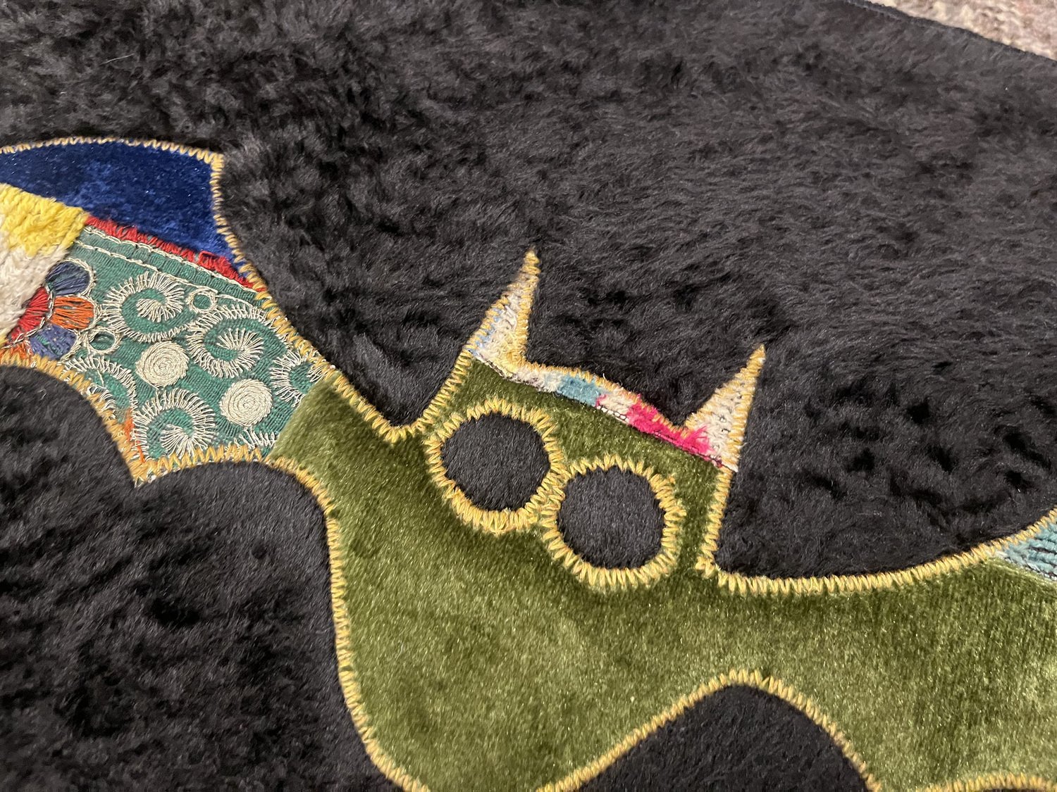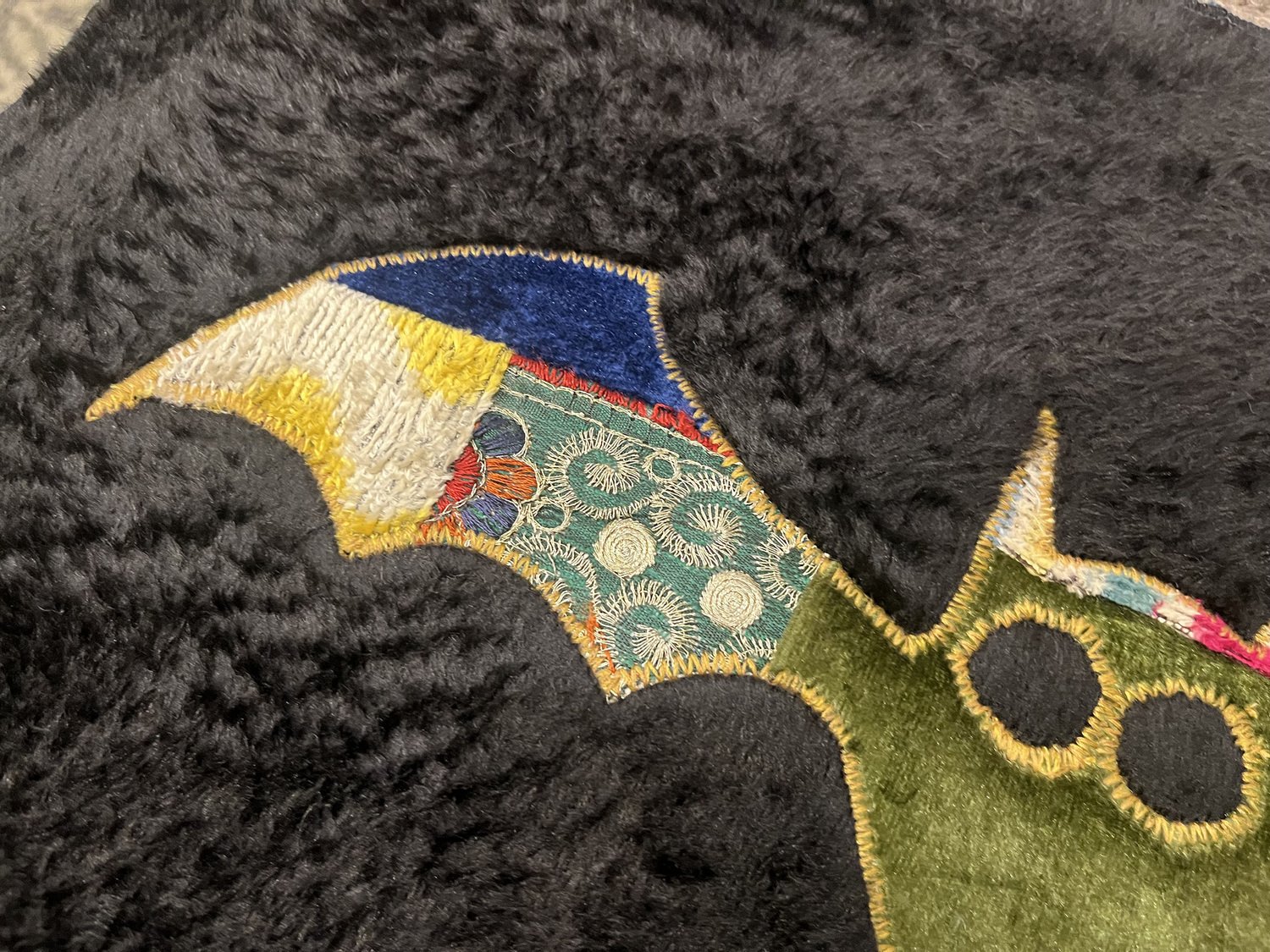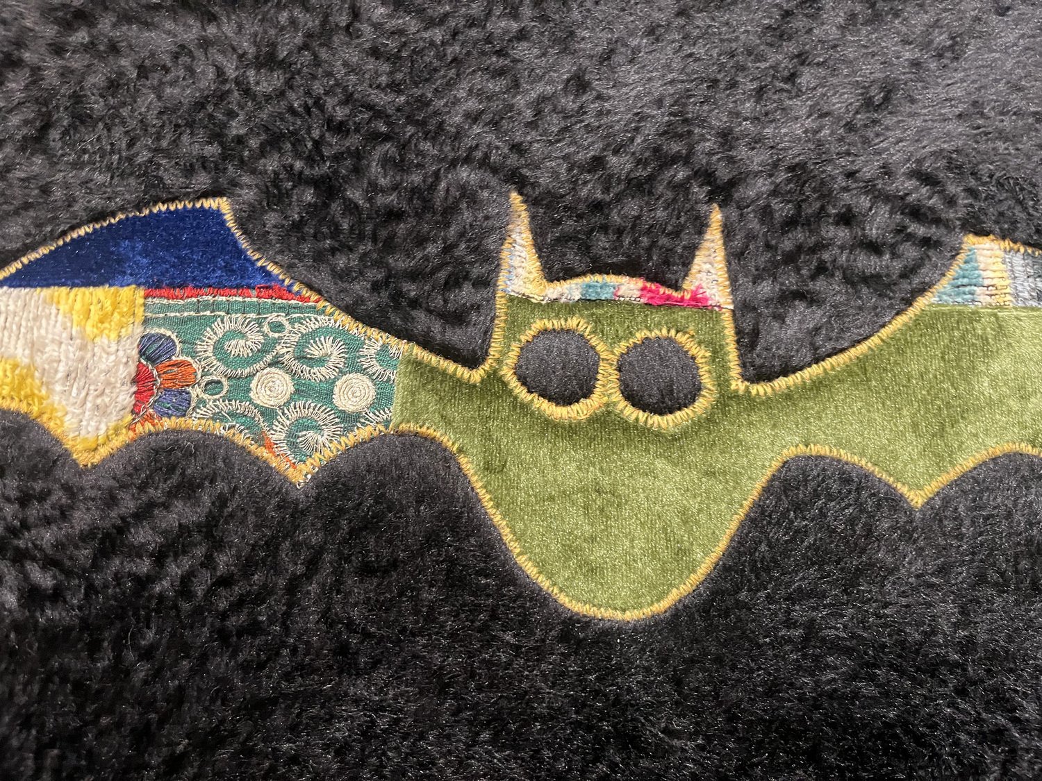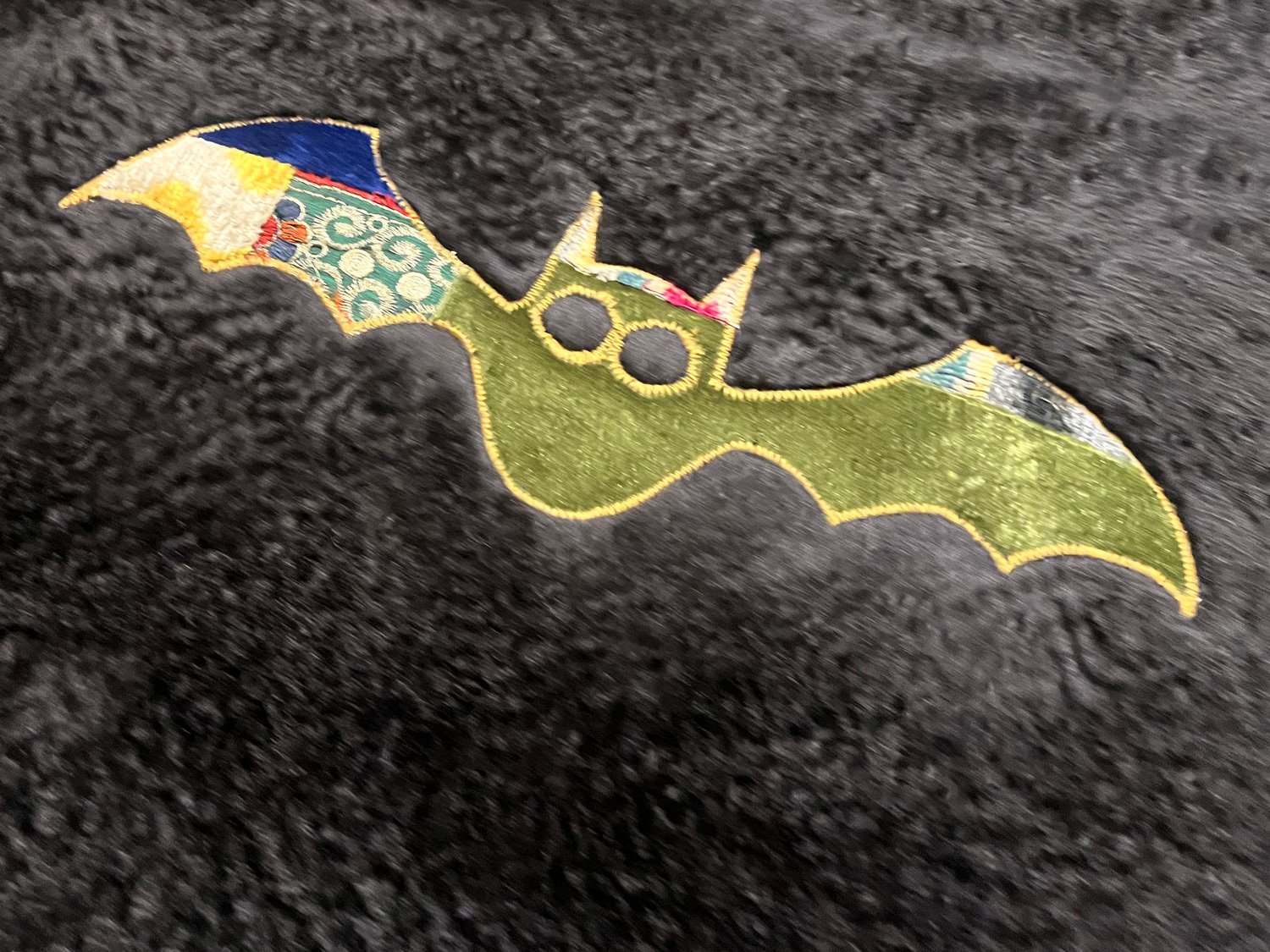 Handgefertigter Fliegender Fledermaus Wandbehang aus Seide, 1980er