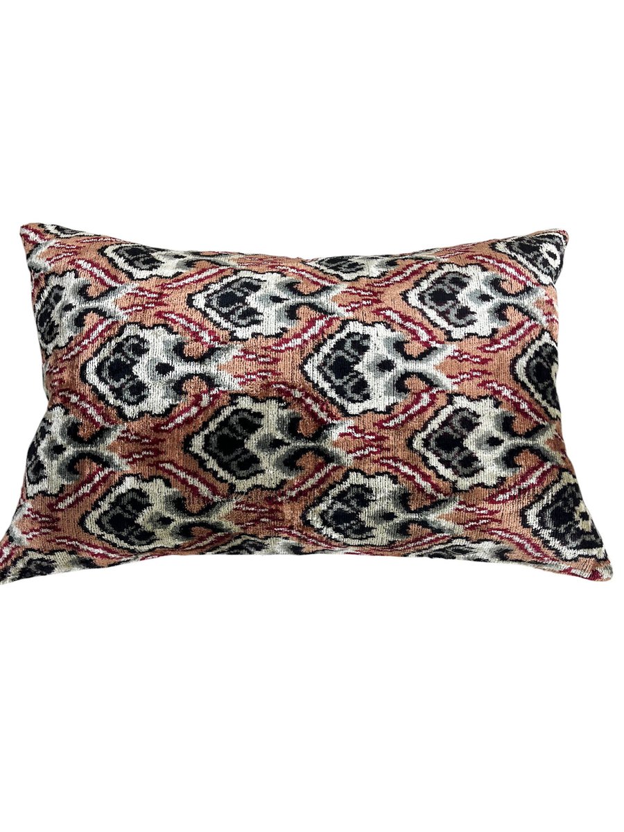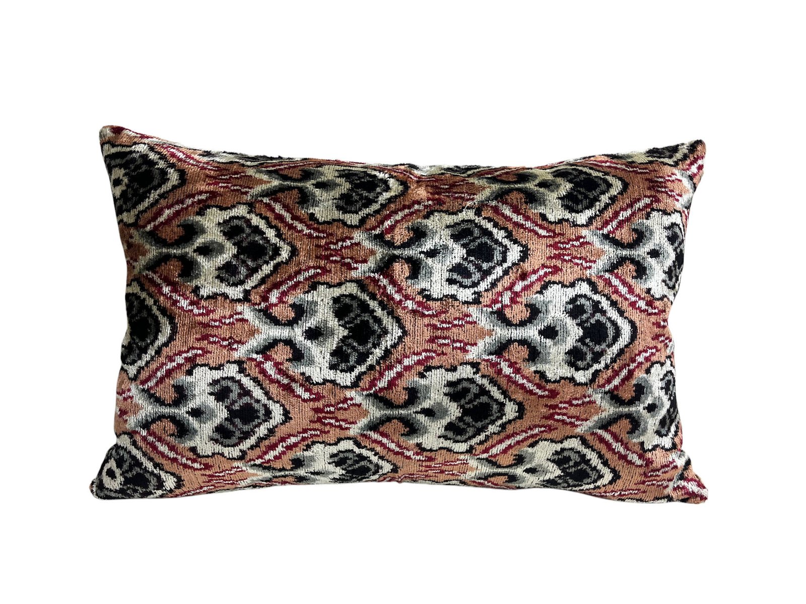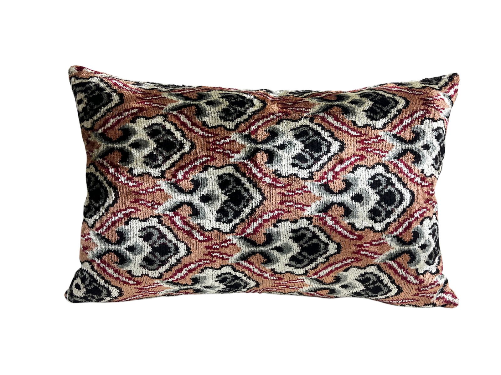 This pillow case features a luxurious silk velvet fabric with an ikat pattern, adding a touch of elegance and sophistication to any space. The unique weaving technique of ikat creates a striking, artistic design, while the softness of the silk velvet ensures both comfort and visual appeal. Perfect for accenting your living room, bedroom, or any area in need of a stylish, refined statement piece.