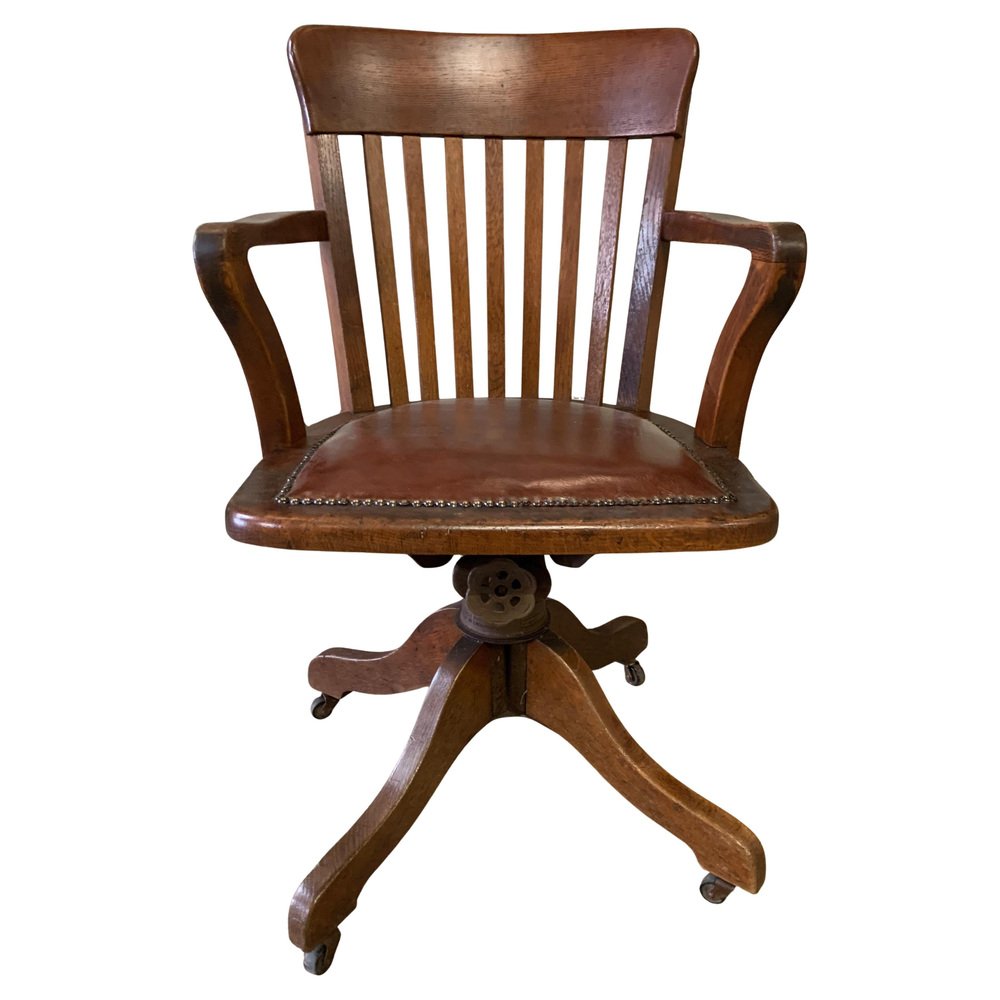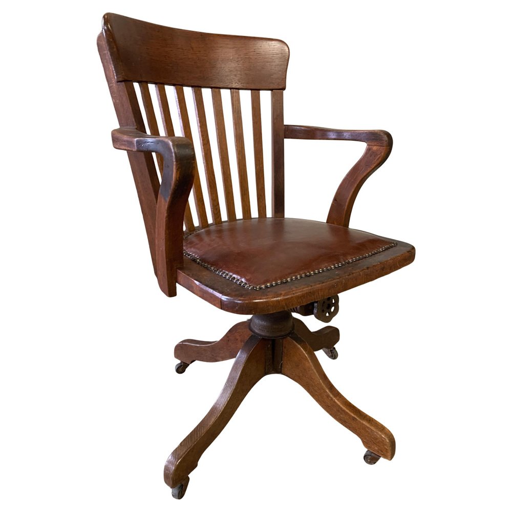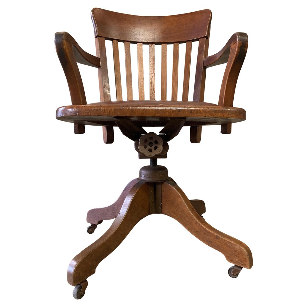 Hillcrest Eichenholz Drehbarer Schreibtischstuhl, frühes 20. Jh., 1890er
