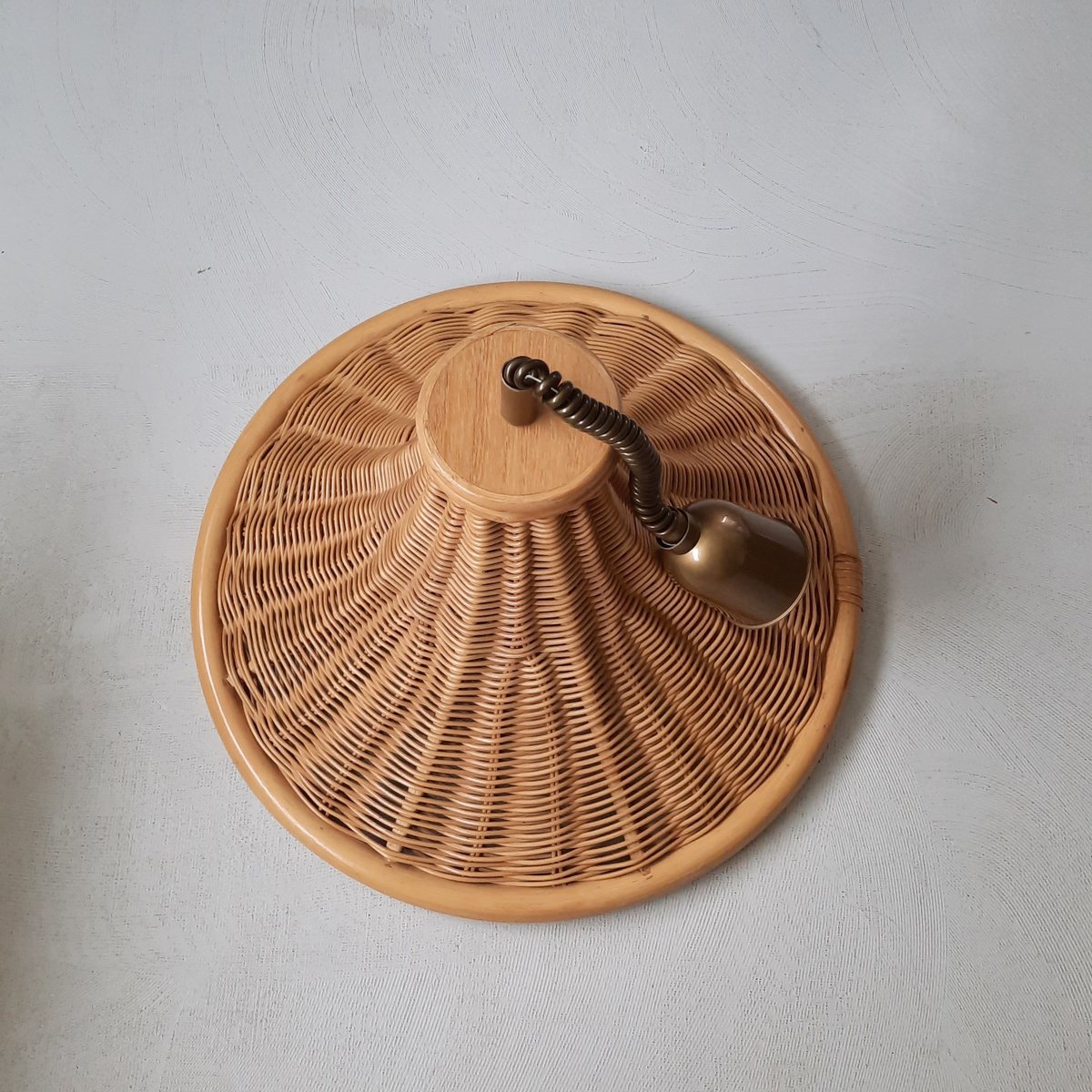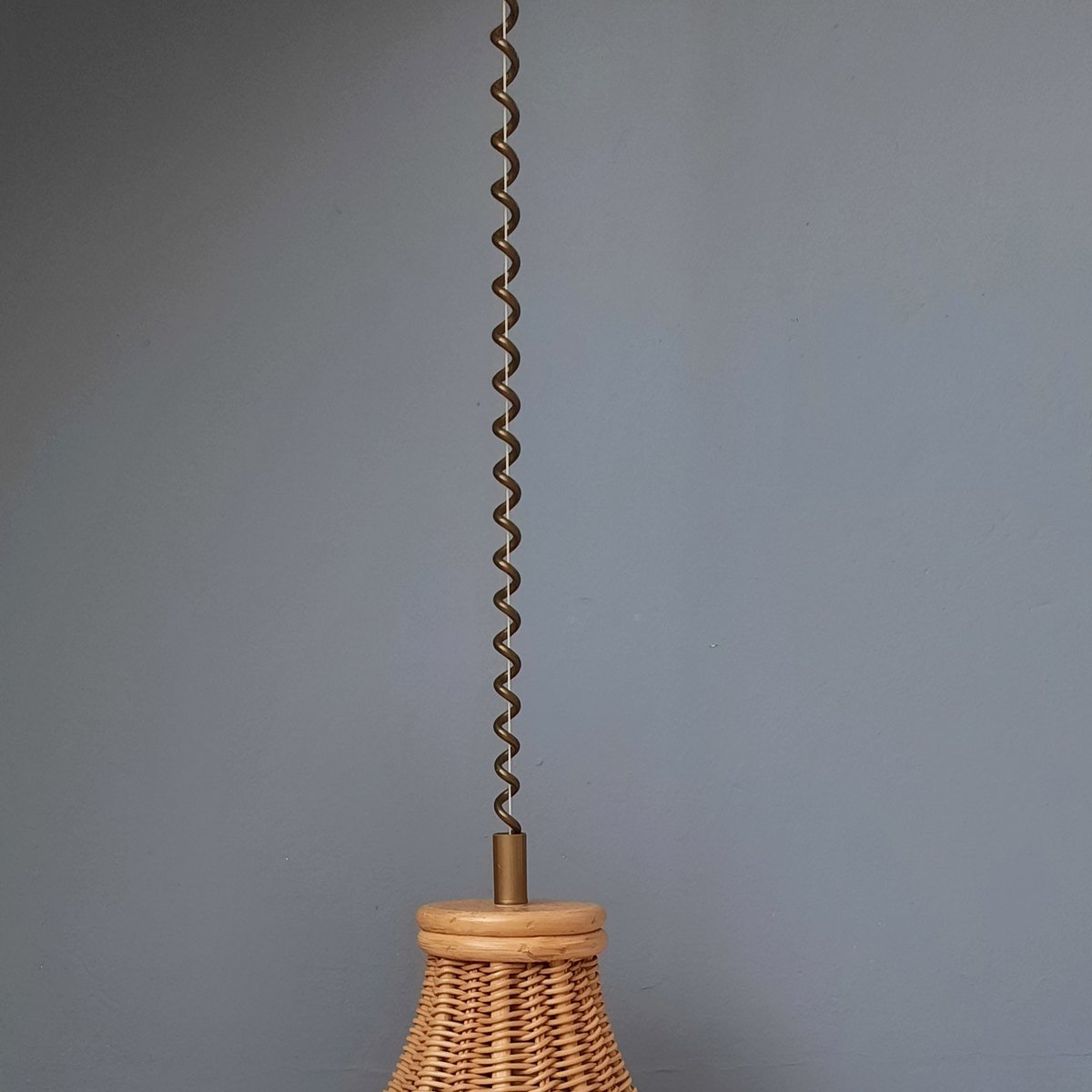 Höhenverstellbare Hängelampe aus Rattan, 1980er
