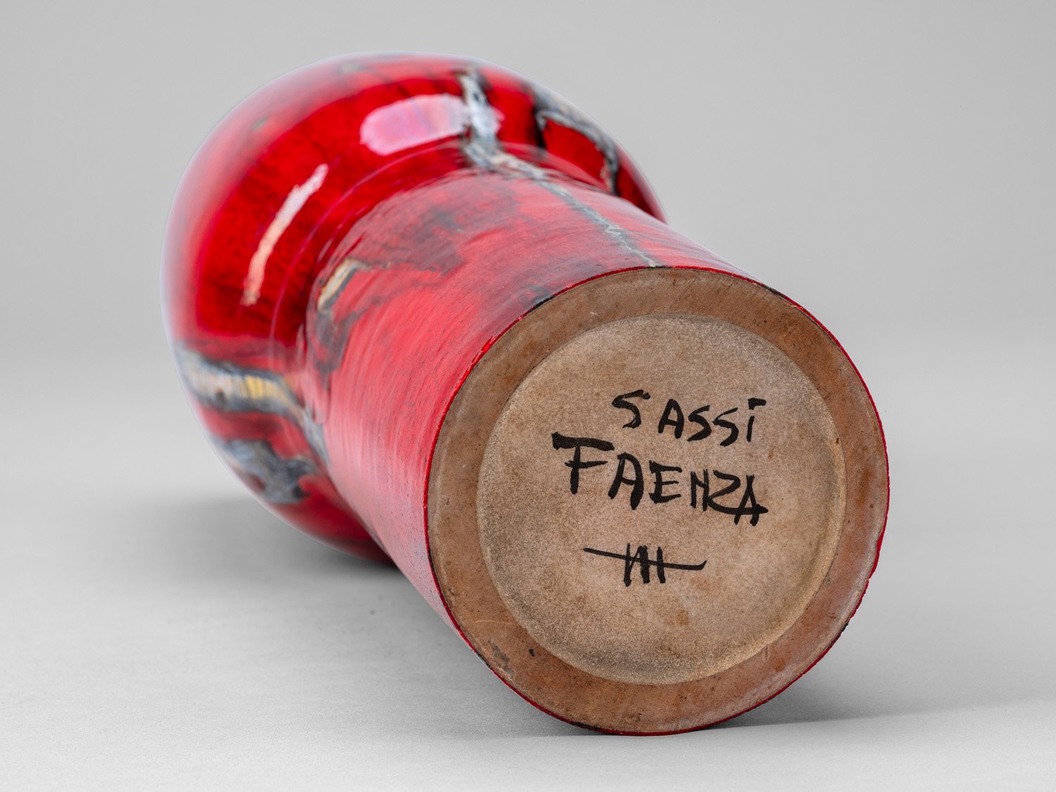 Ivo Sassi (1937 - 2020) was born in Brisighella, Italy, in 1937. In 1950 he began attending the Istituto Statale d'Arte per la Ceramica in Faenza and had sculptors Anselmo Bucci and Angelo Biancini as teachers and Nanni Valentini and Carlo Negri as colleagues. In 1954 he worked in Carlo Zauli's workshop, a relationship that ended in 1959, when he opened a personal studio in Faenza. In 1965 he created three large polychrome majolica panels for the motor ships "Angelina" and "Achille Lauro". However, it is from 1965 that his work acquires a precise physiognomy and a formal autonomy: until 1971 he develops the Era Tecnologica cycle, using mainly white majolica and, from this date, he begins the ET Genesi cycle in which he fuses geometric elements and a largely informal organicism using the colour black, gold and third-fire platinum finishes.
