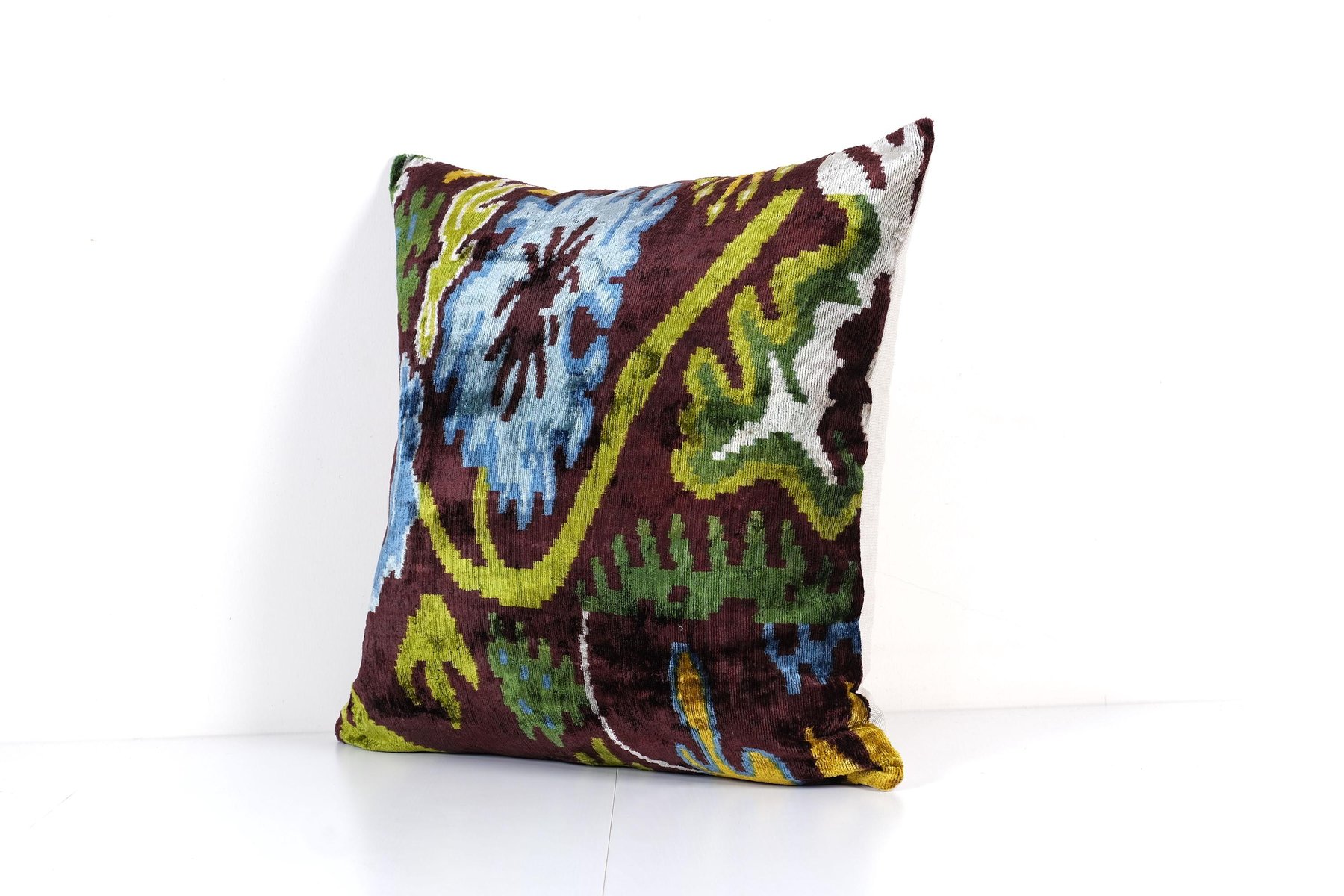 Ikat Kissenbezug aus Seidensamt mit Blumenmuster, 2010er