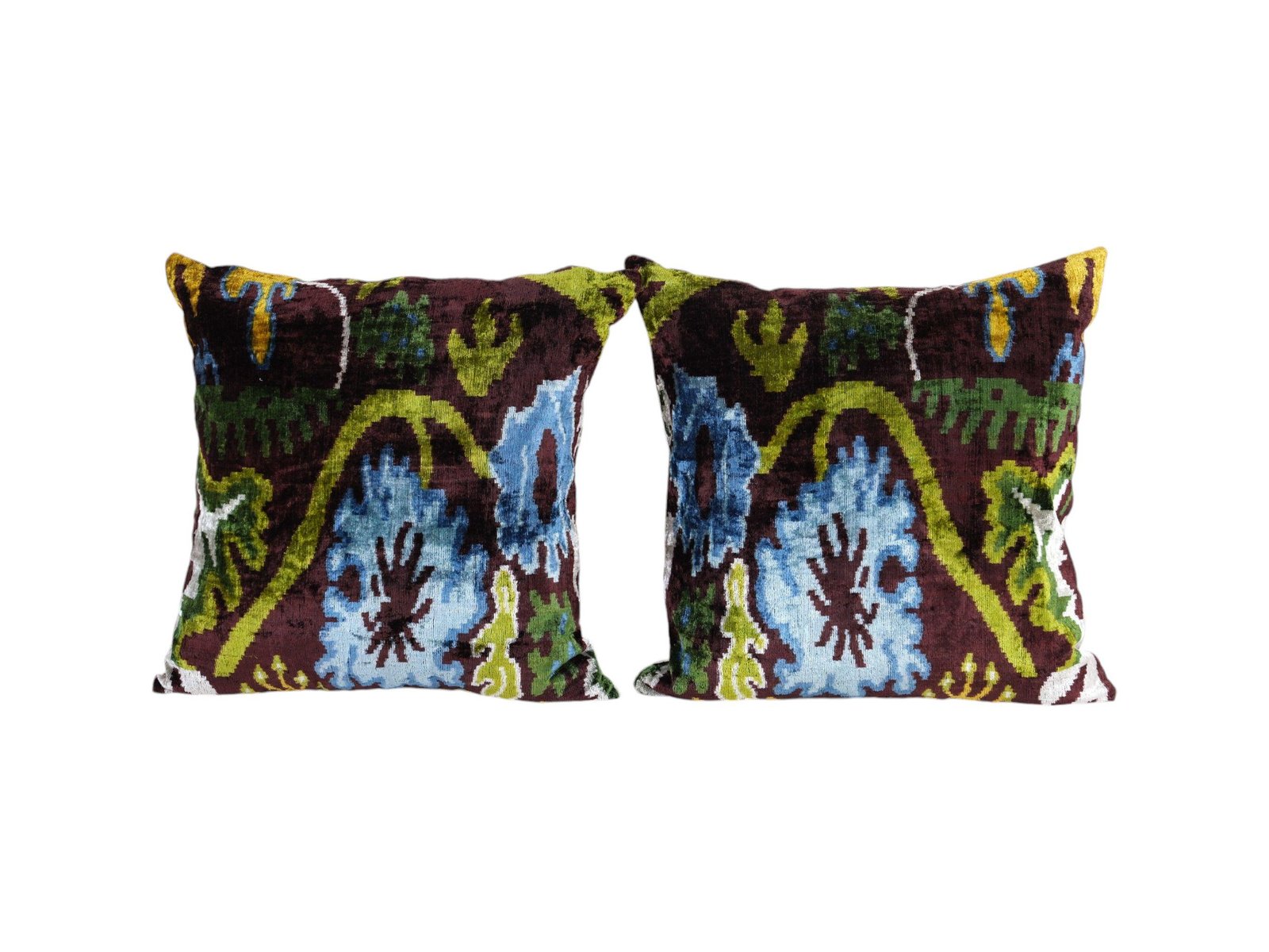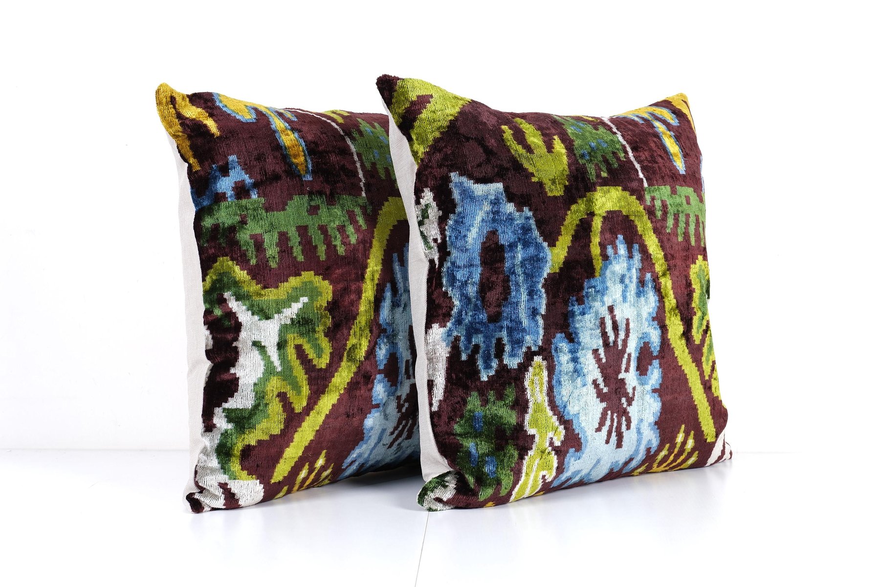 Ikat Samt Kissenbezüge aus Seide, 2010er, 2er Set