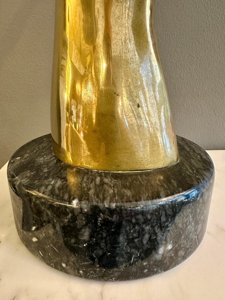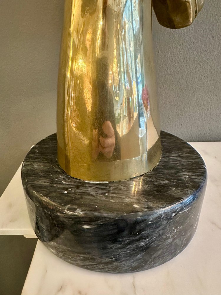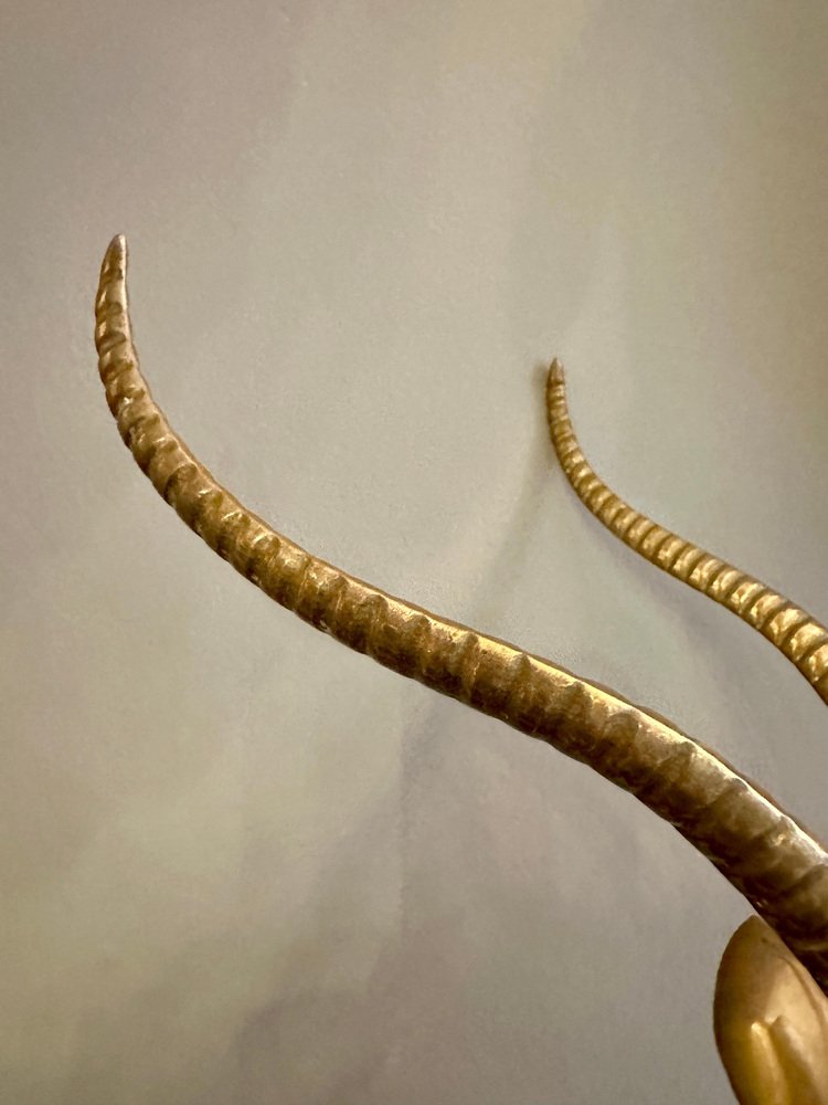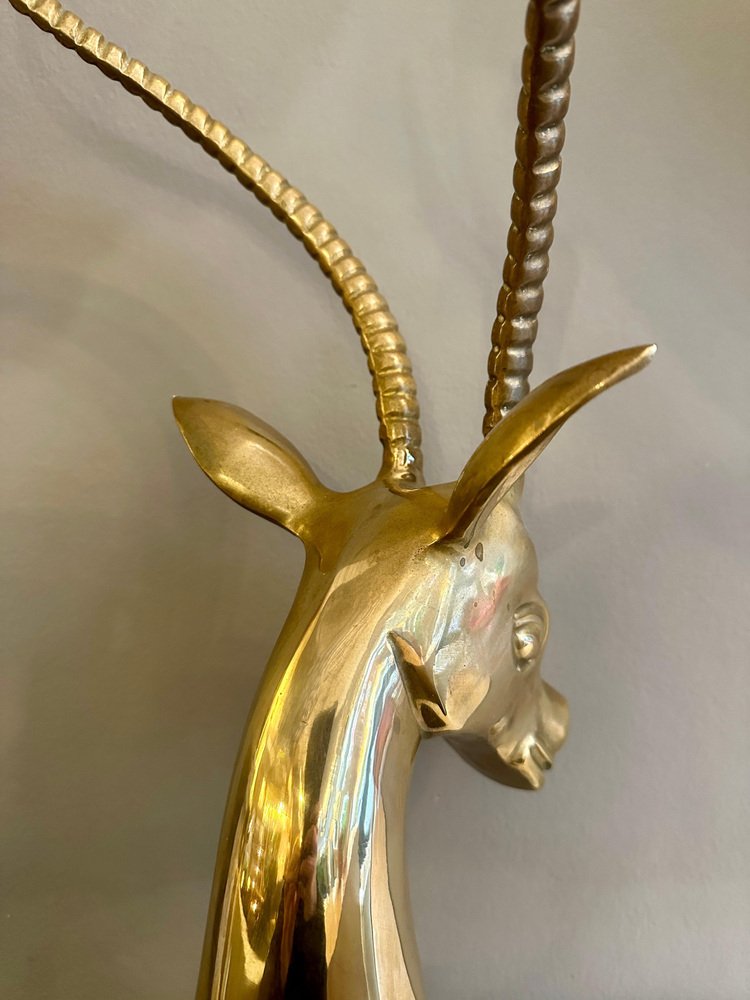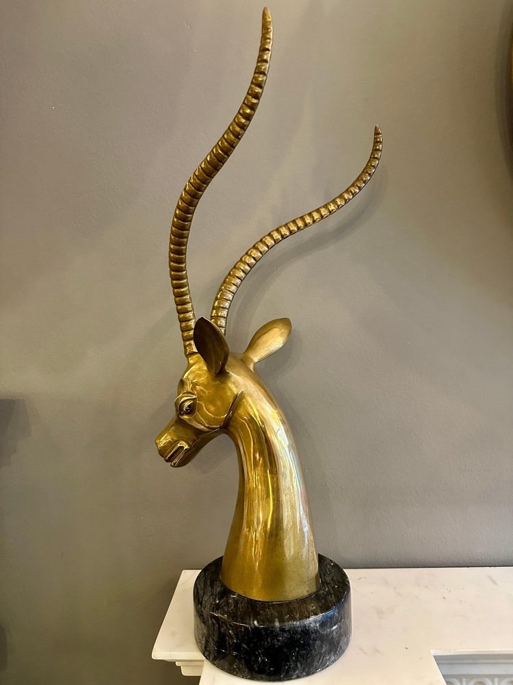 Impala Kopf aus Messing mit Hörnern auf schwarzem Marmorsockel, 1970er