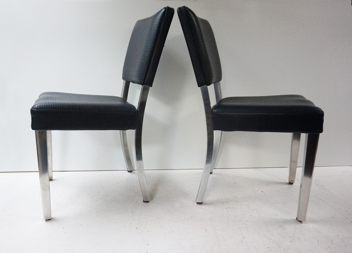 Super solid and sturdy chairs. Industrial, art deco, machine age, army style chair from around the 1950s.
