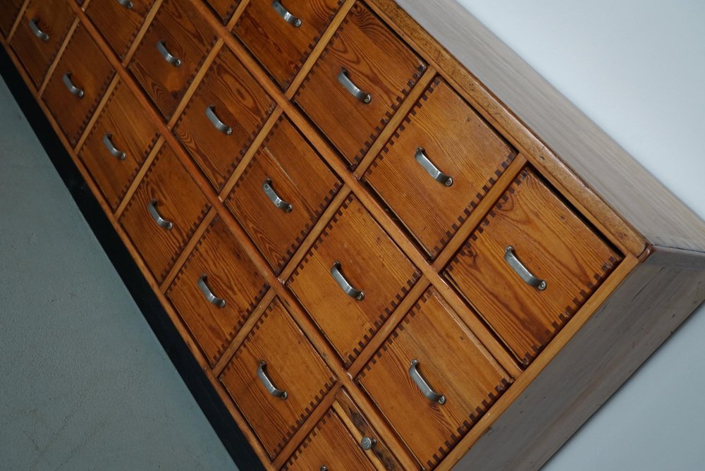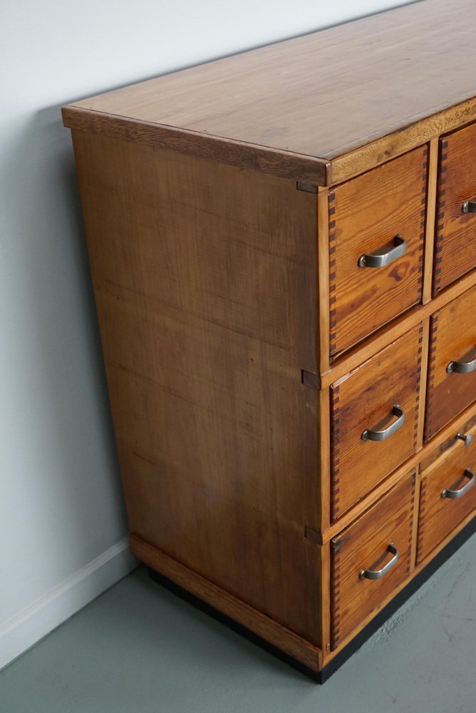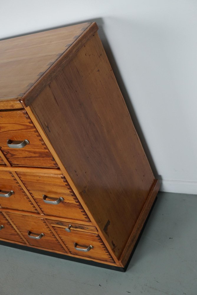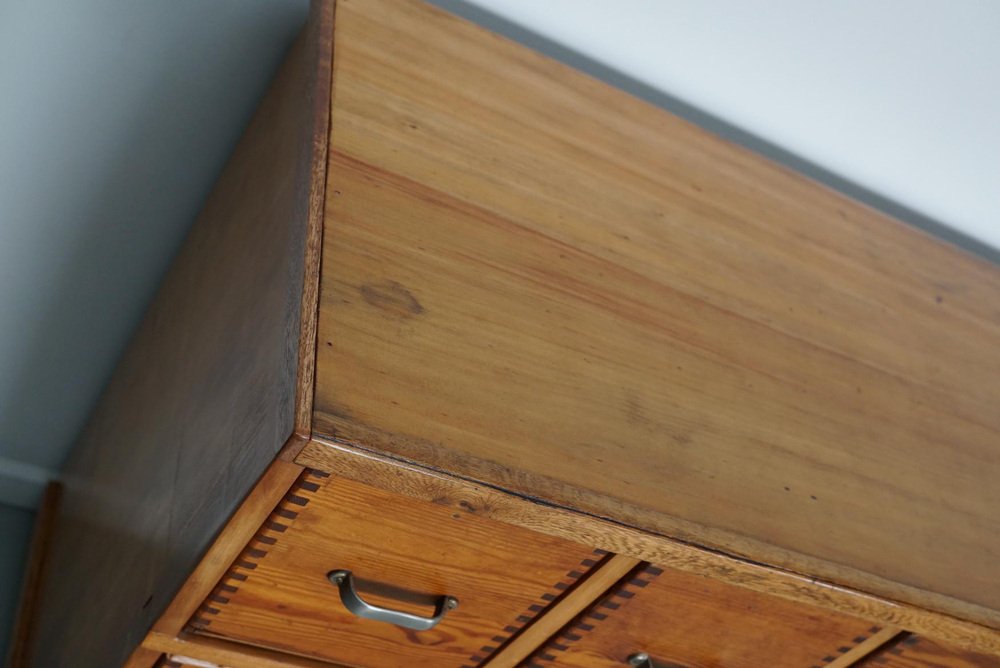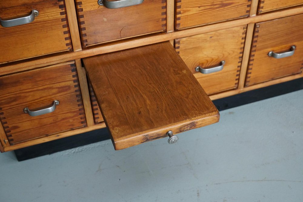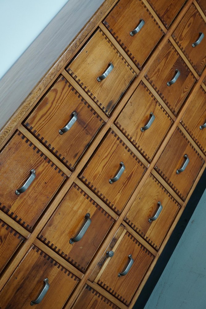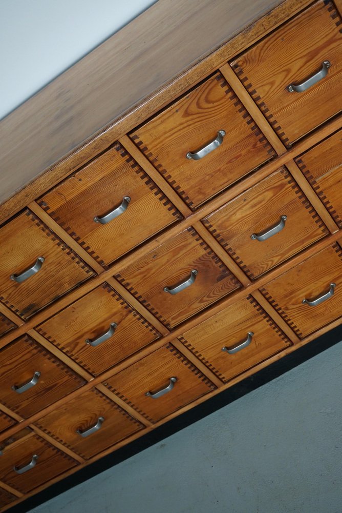 Industrieller deutscher Apothekerschrank aus Kiefernholz, 1950er