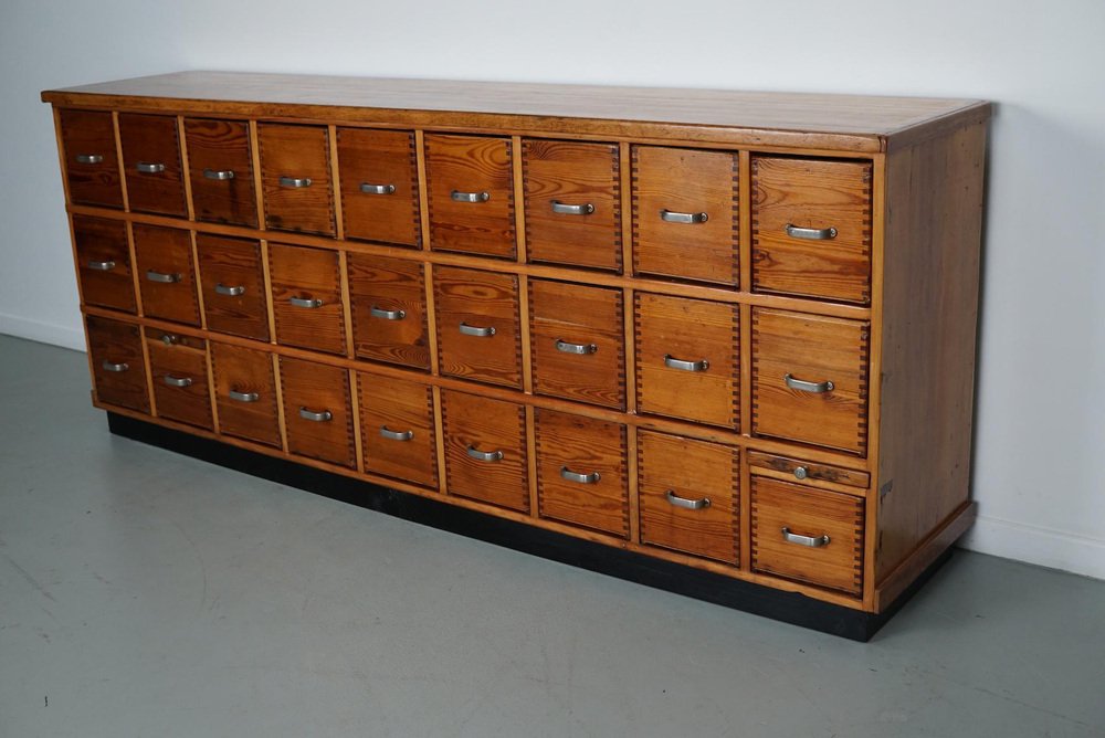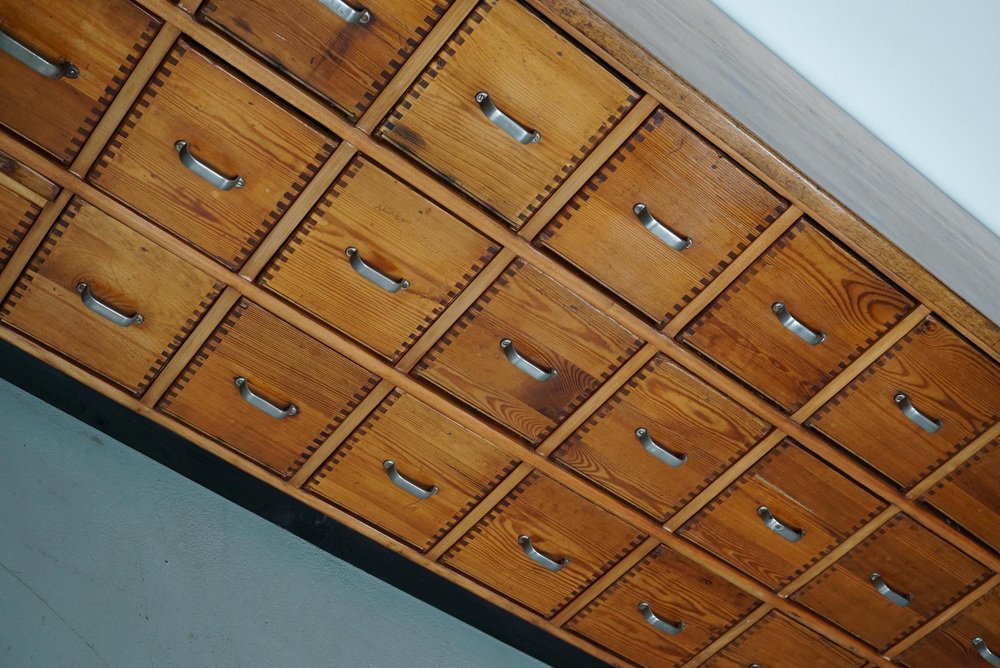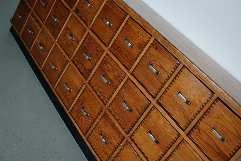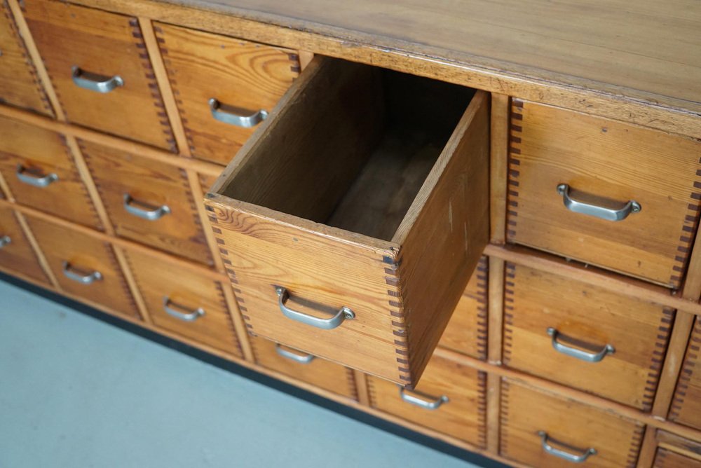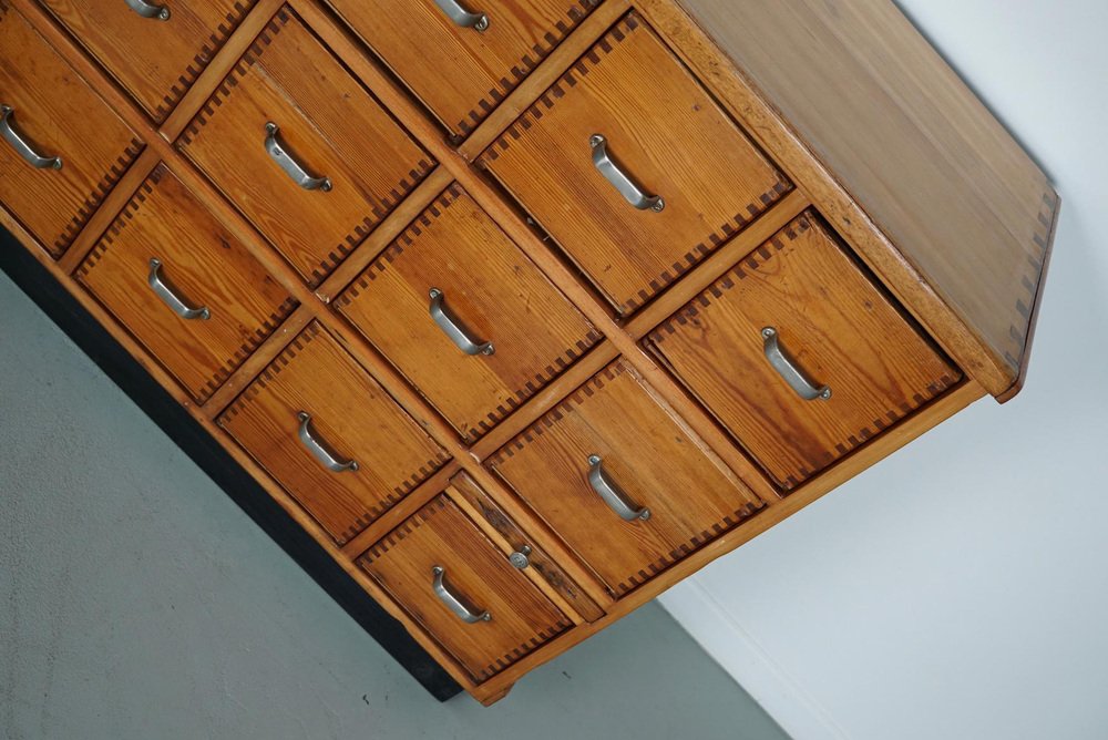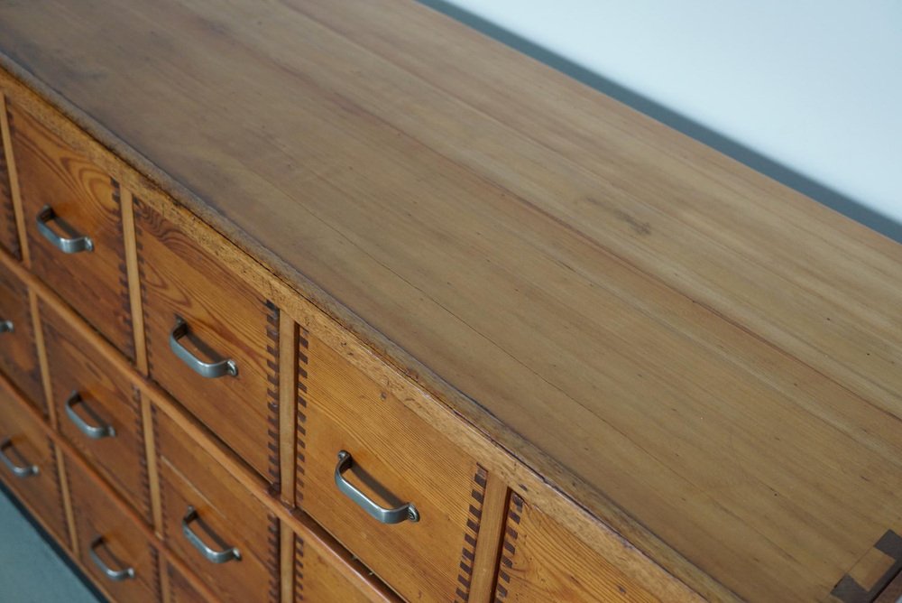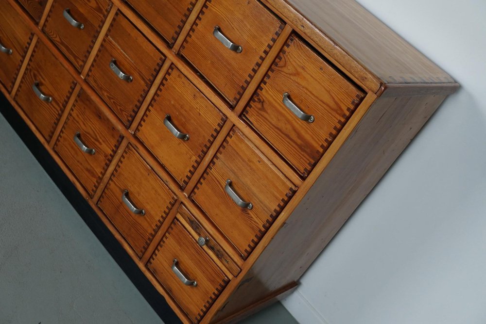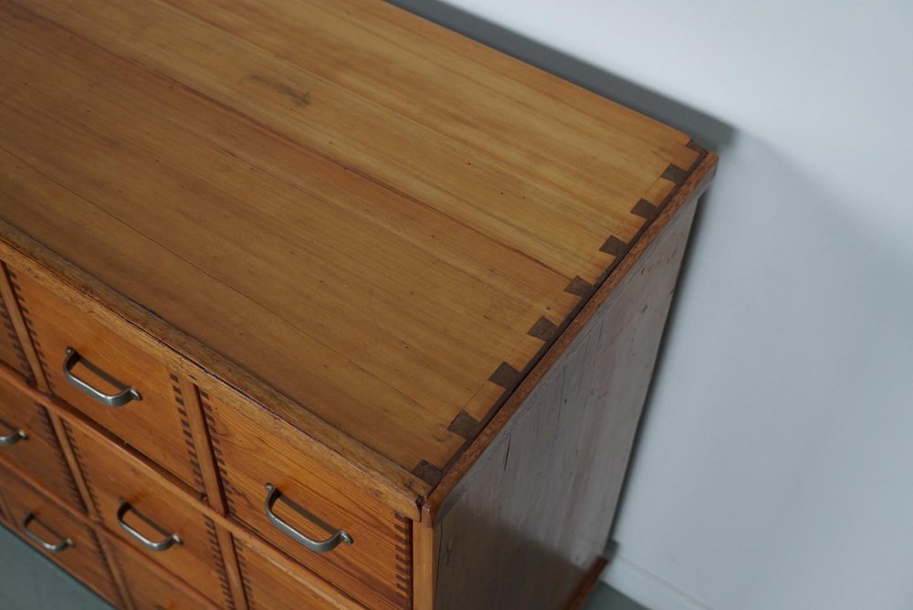 Industrieller deutscher Apothekerschrank aus Kiefernholz, 1950er