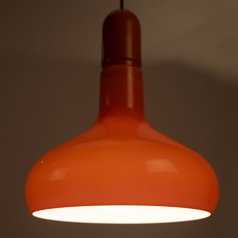 Industry Hängelampe aus orangefarbenem Metall für Staff Light, 1970er