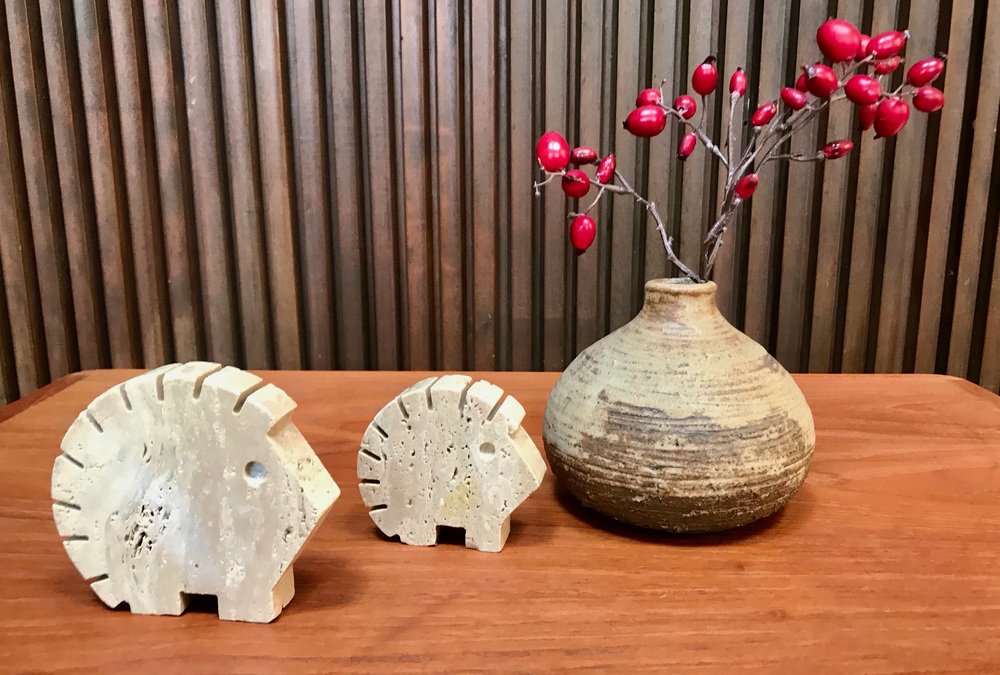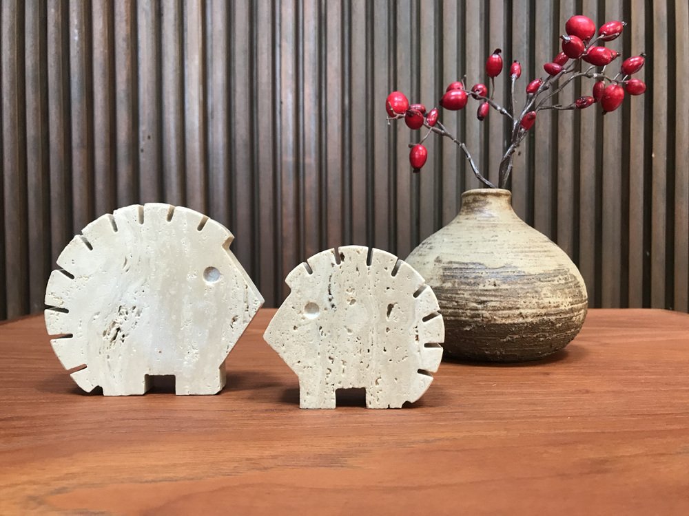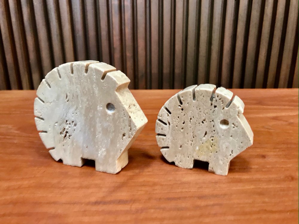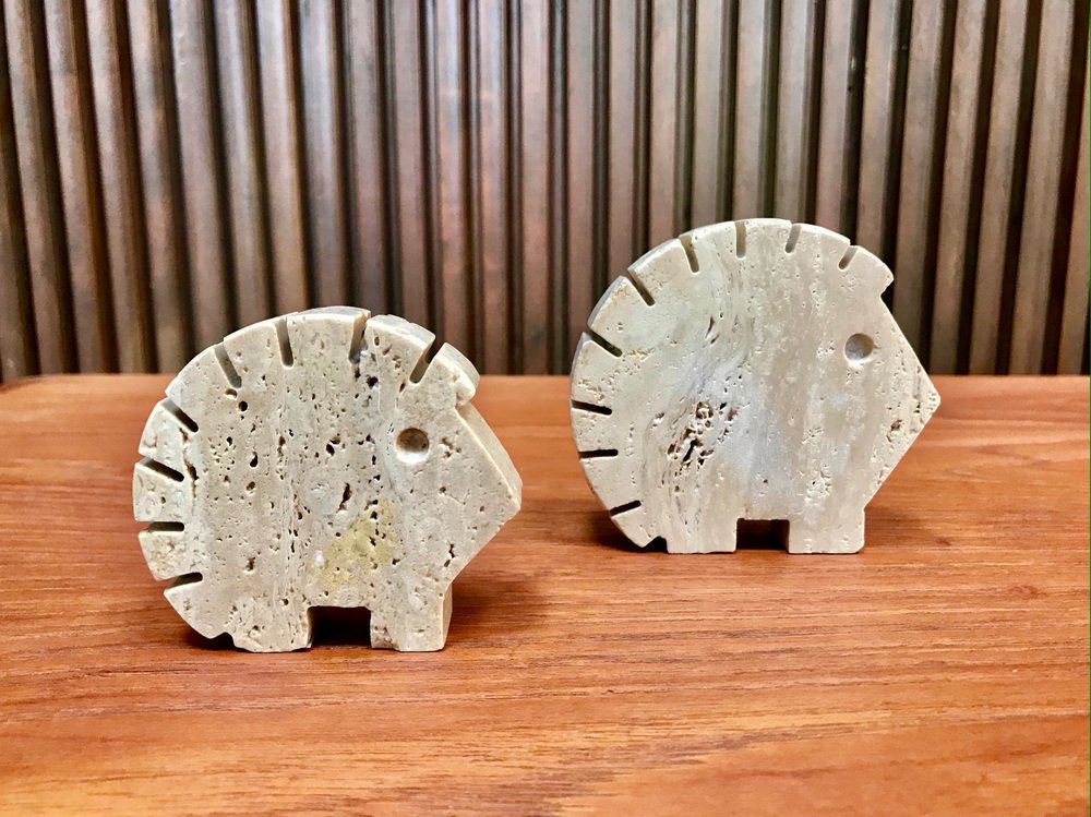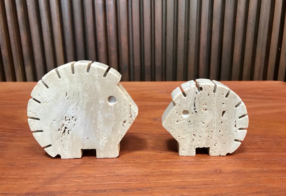 Italian Brutalist Travertine Hedgehog Figurines or Table Sculptures from Fratelli Mannelli, 1970s, Set of 2