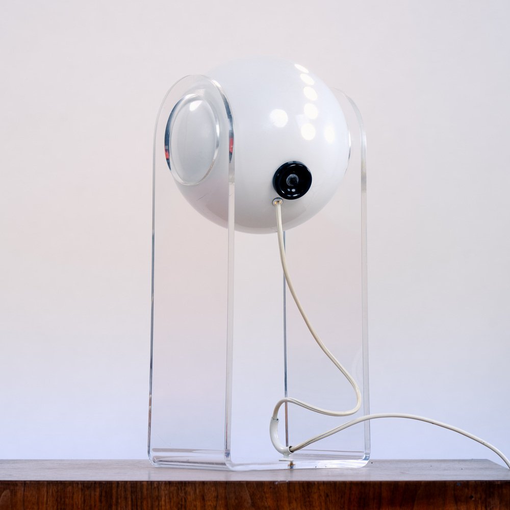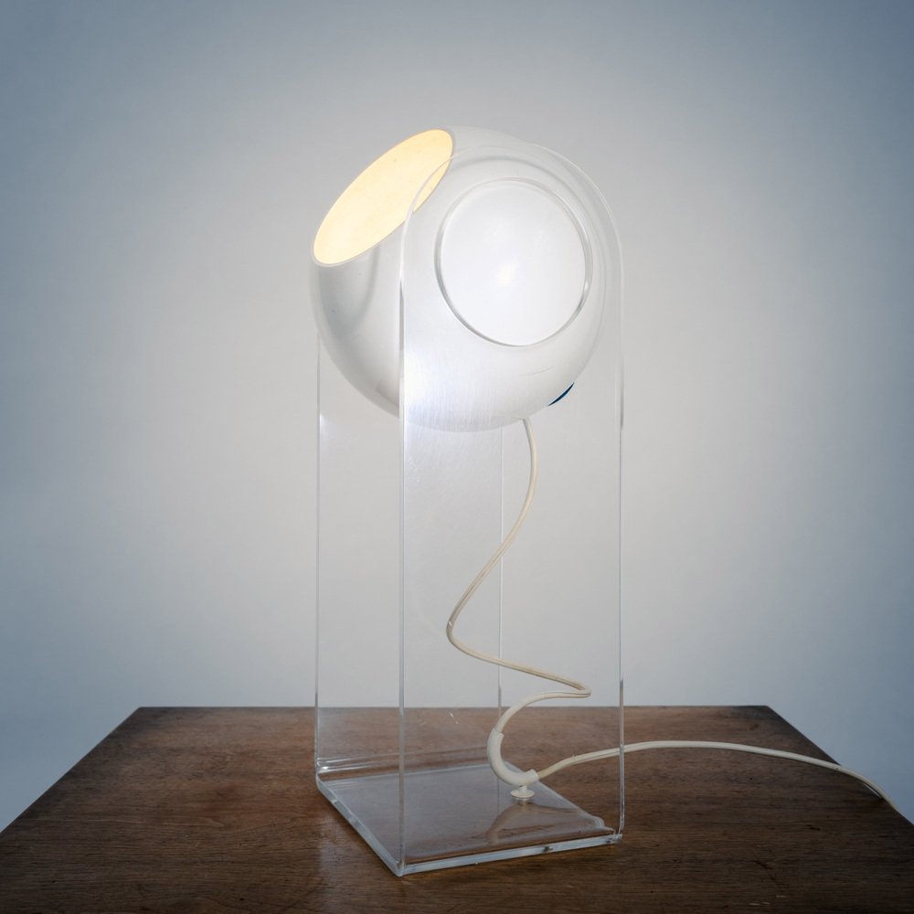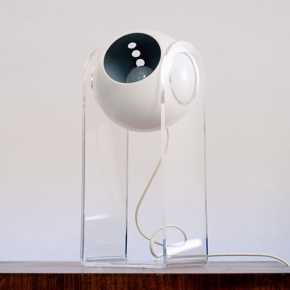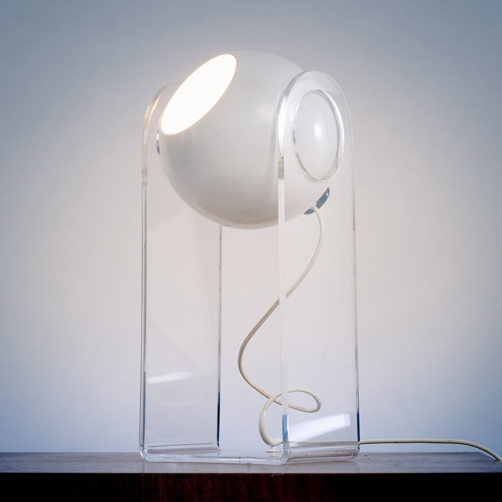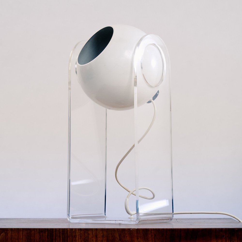 The lamp’s structure is made from clear methacrylate, a durable transparent material that complements the reflector’s design while providing stability and support. The combination of the sphere and structure creates a captivating interplay of light and shadow, enhancing the overall ambiance of the space.