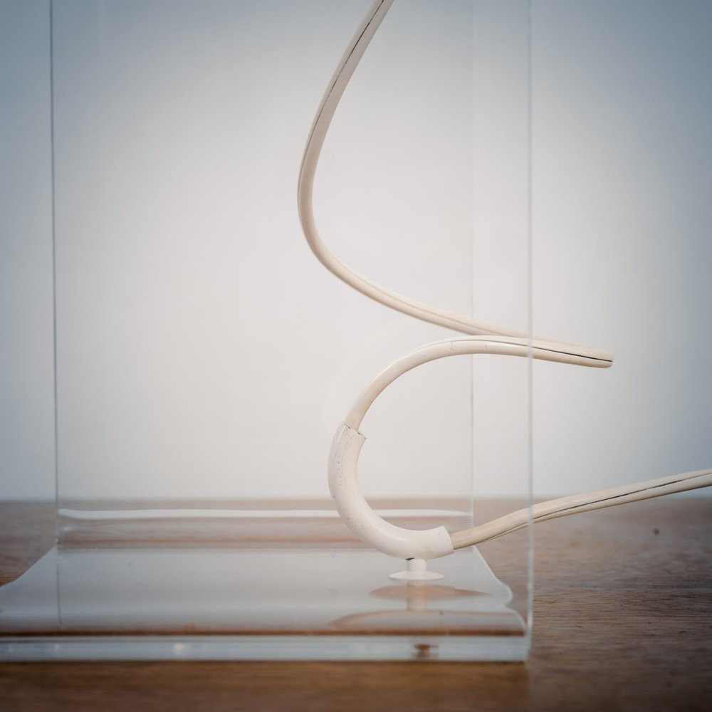 Die Struktur der Leuchte besteht aus klarem Methacrylat, einem haltbaren, transparenten Material, das das Design des Reflektors ergänzt und gleichzeitig Stabilität und Halt bietet. Die Kombination aus Kugel und Struktur erzeugt ein faszinierendes Spiel aus Licht und Schatten, das die Gesamtatmosphäre des Raumes aufwertet.