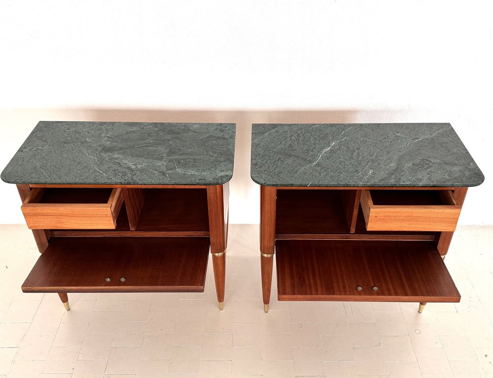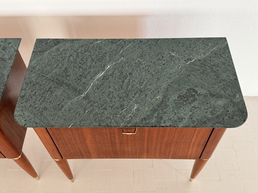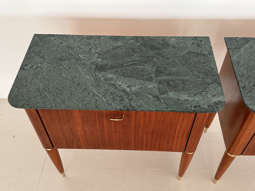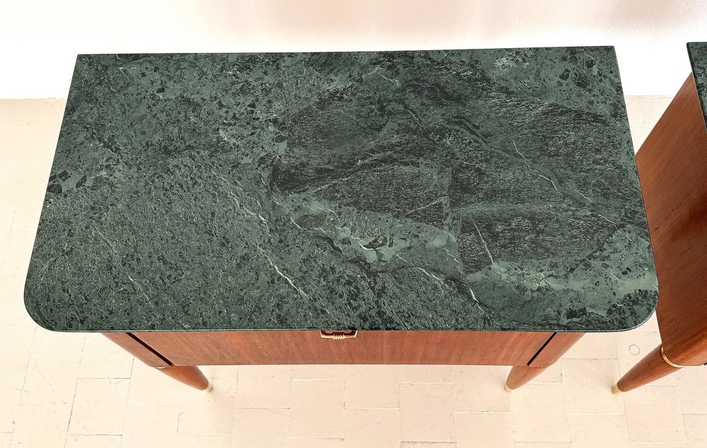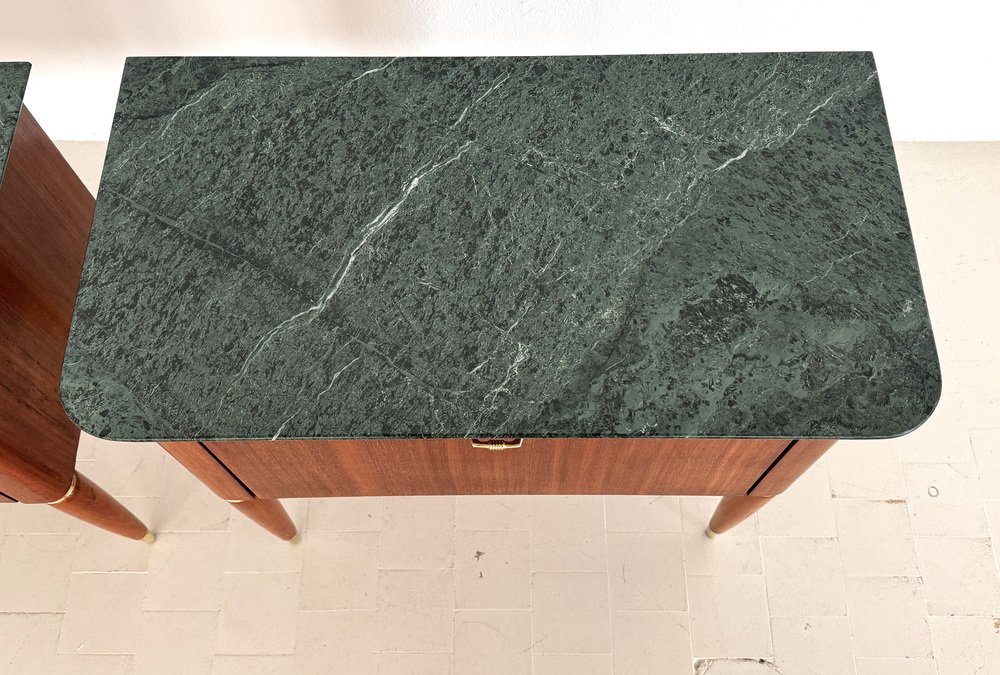 Italienische Mid-Century Nachttische mit grüner Marmorplatte von La Permanente Di Cantù, 1960er, 2er Set