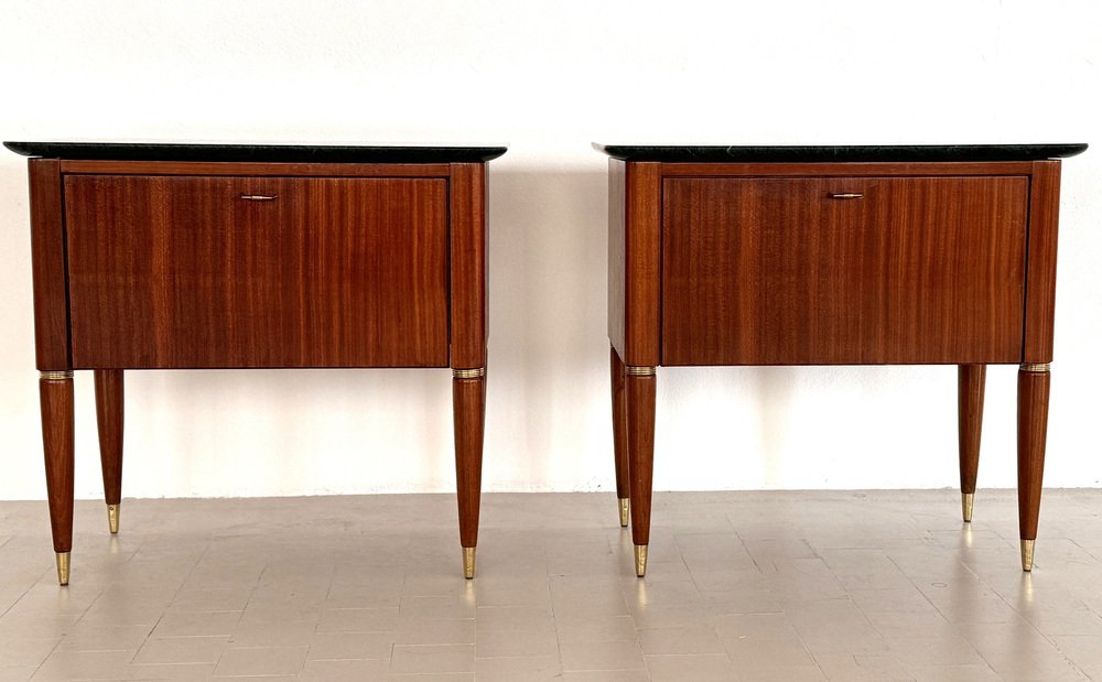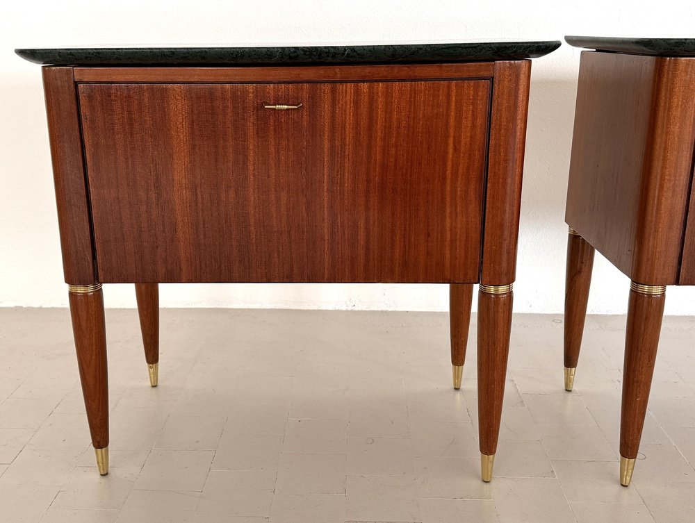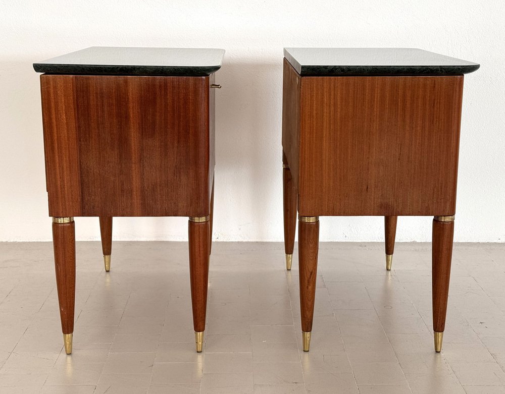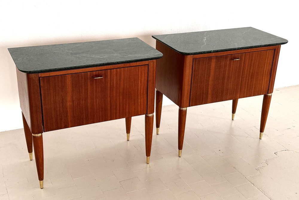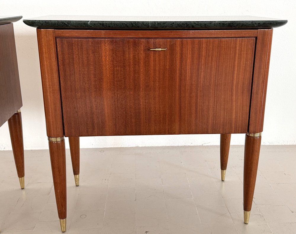 Italienische Mid-Century Nachttische mit grüner Marmorplatte von La Permanente Di Cantù, 1960er, 2er Set