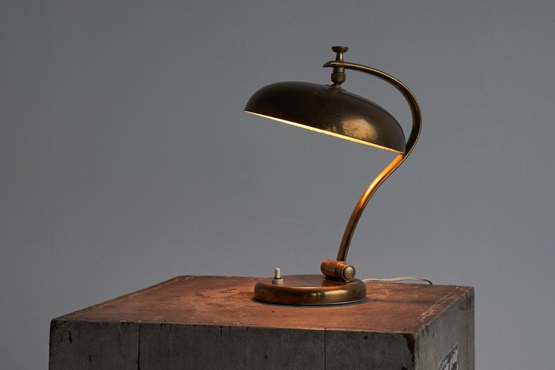 Italienische Tischlampe aus patiniertem Messing, 1950er