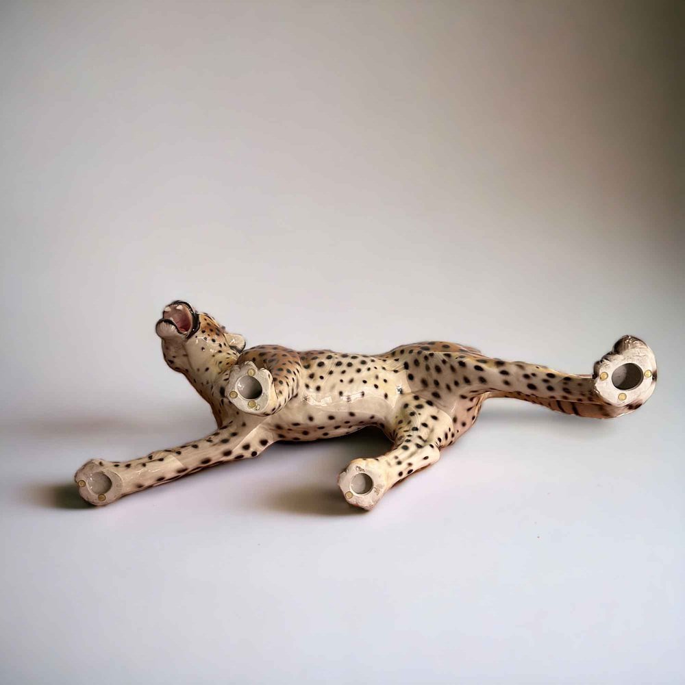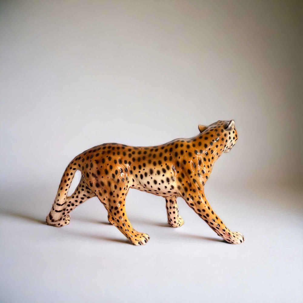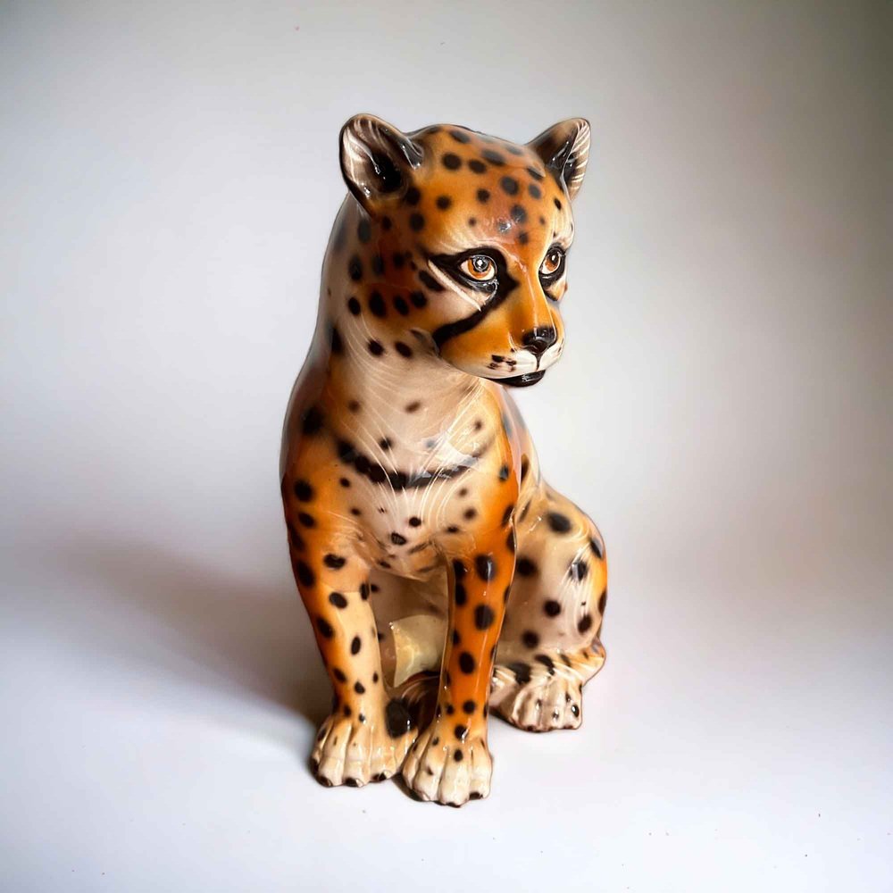 Italienische Vintage Keramik Leopard Skulpturen, 1950er, 2er Set