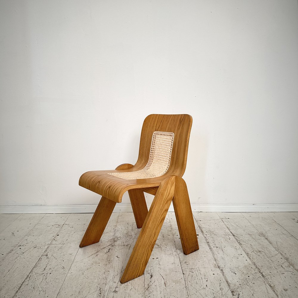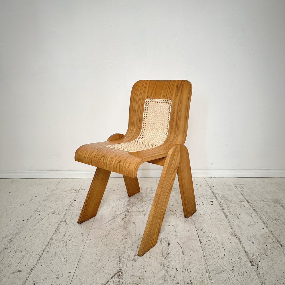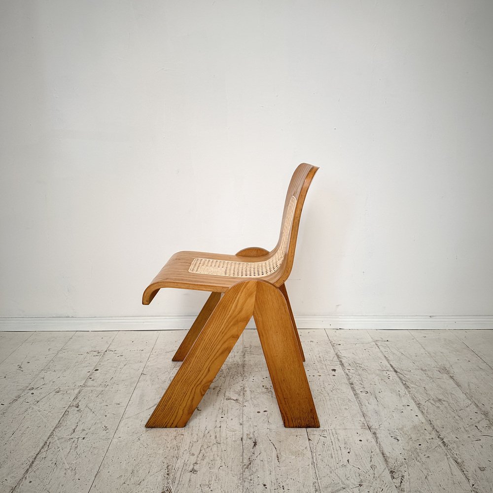Step into the epitome of mid-century Italian design with this exquisite dining chair by Gigi Sabadin for Stilwood, circa 1970. Crafted from ash wood and adorned with delicate cane detailing, this chair epitomizes the era's commitment to sleek lines and organic materials.