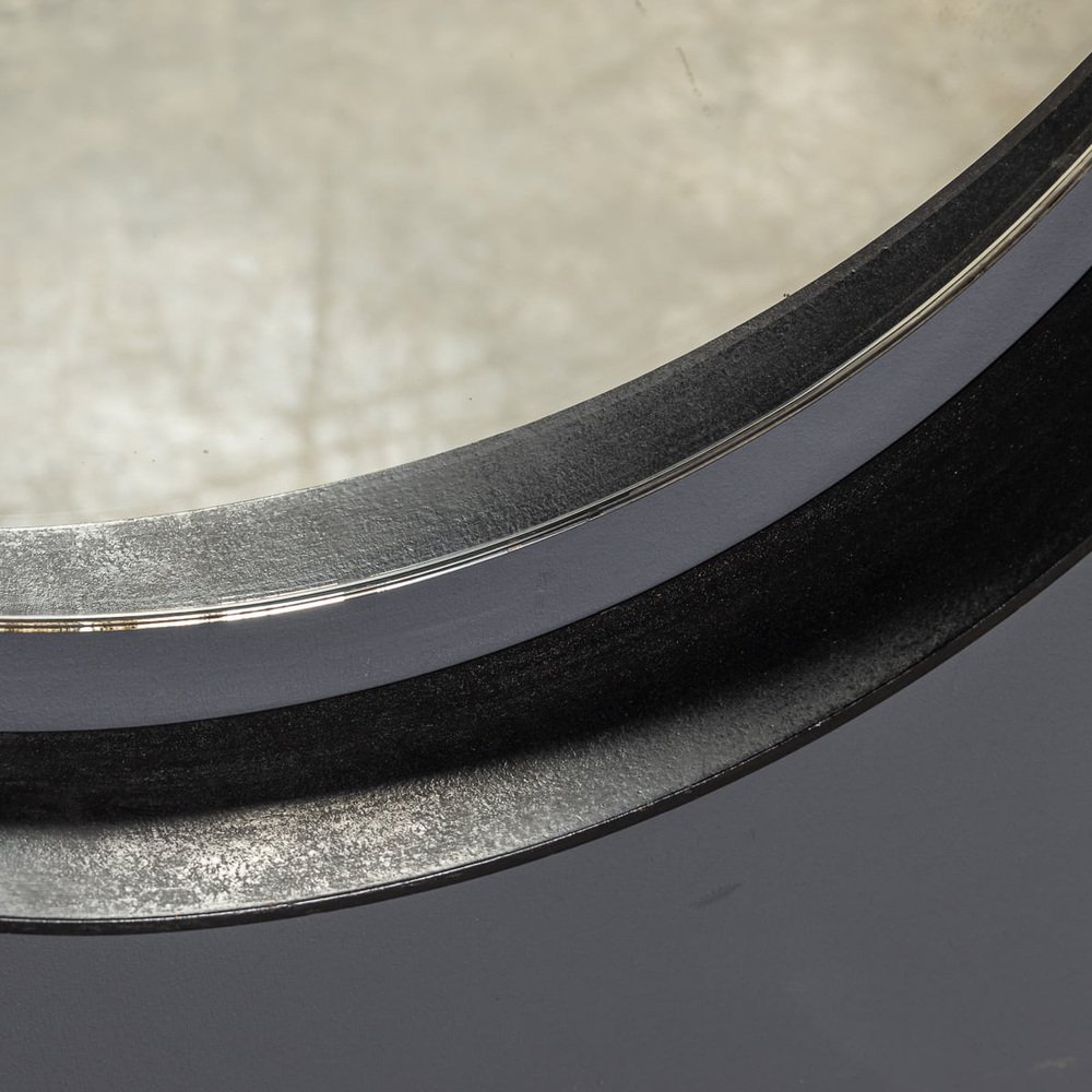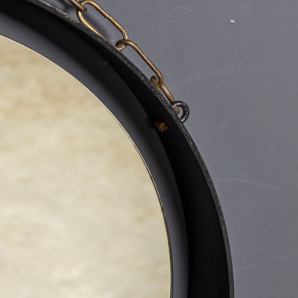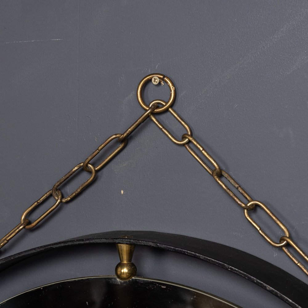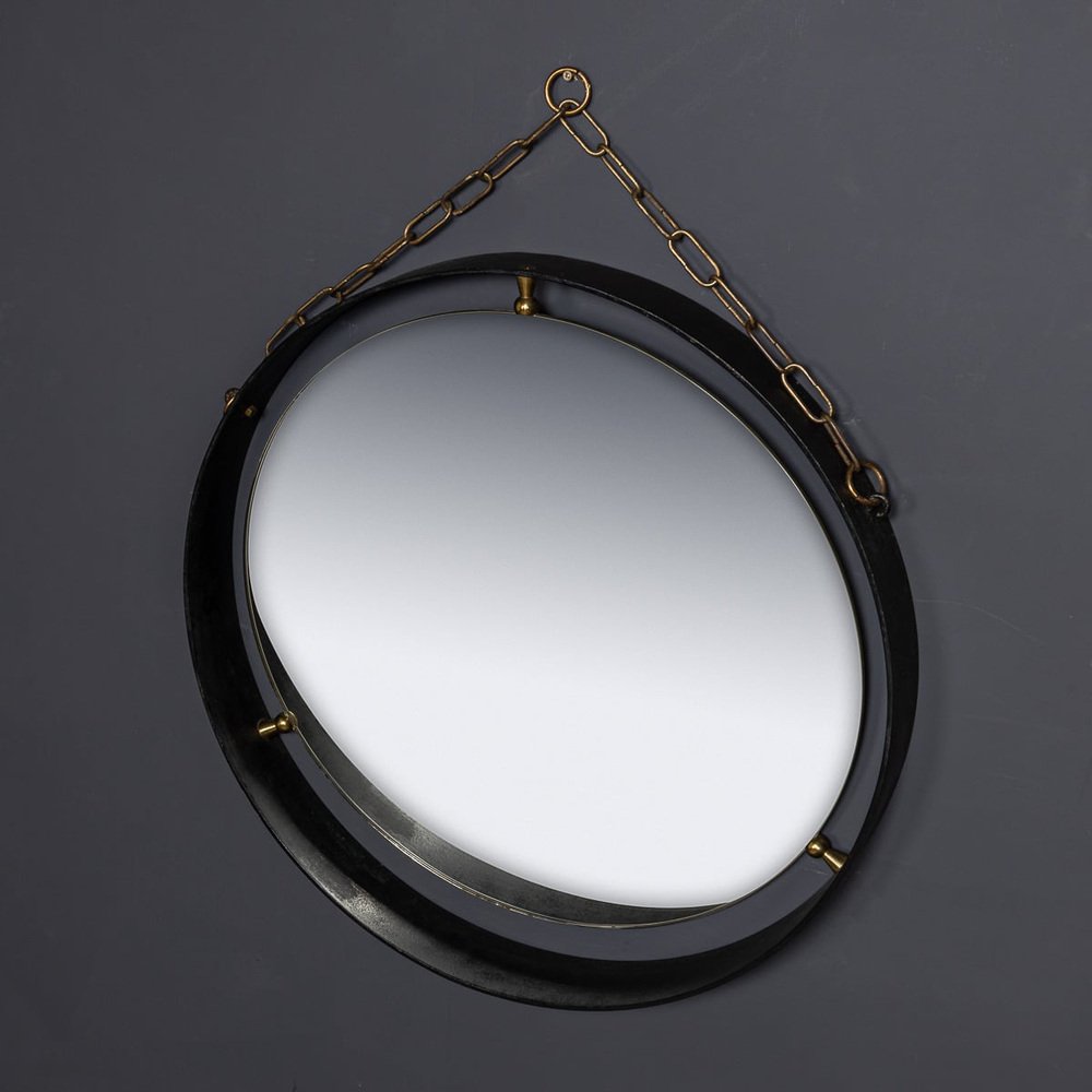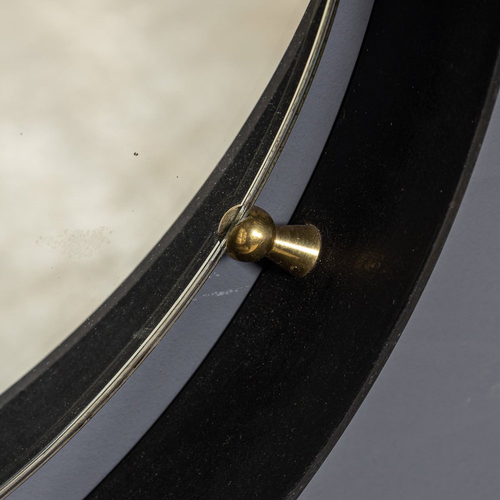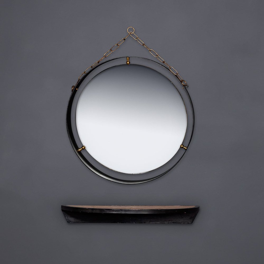 Italienischer Mid-Century Spiegel mit schwarzem Metallrahmen & Konsole aus Messing, 1950er, 2er Set