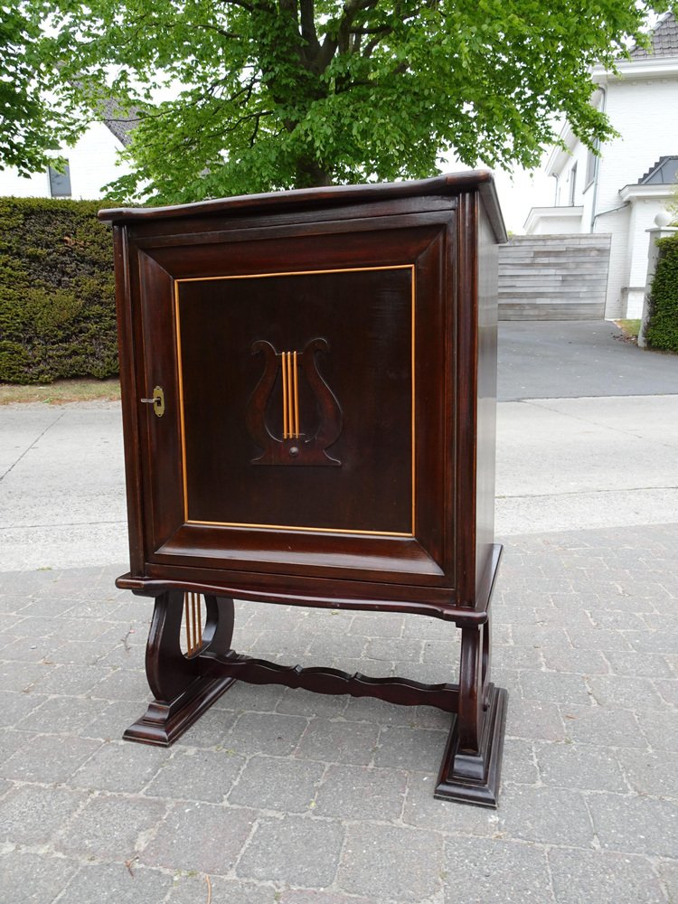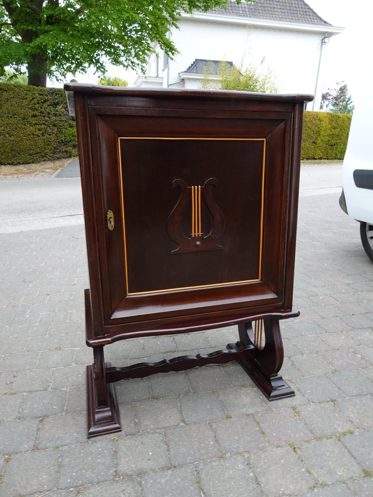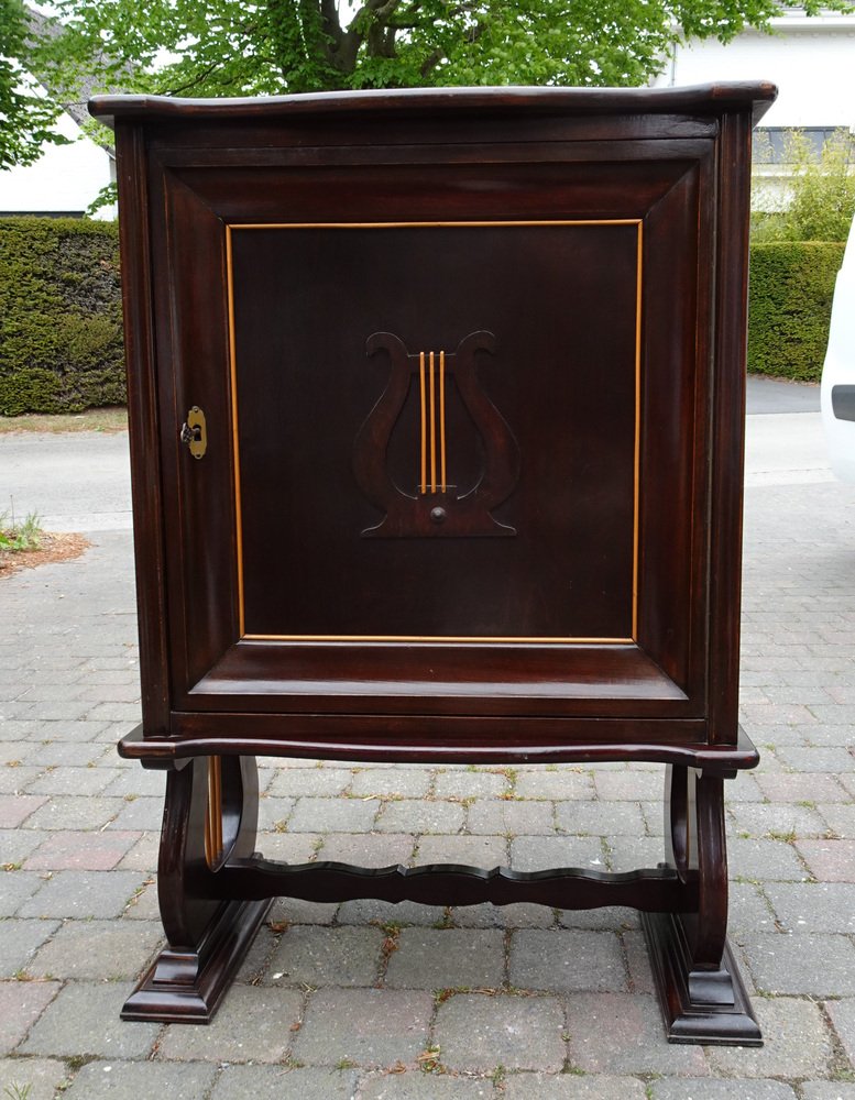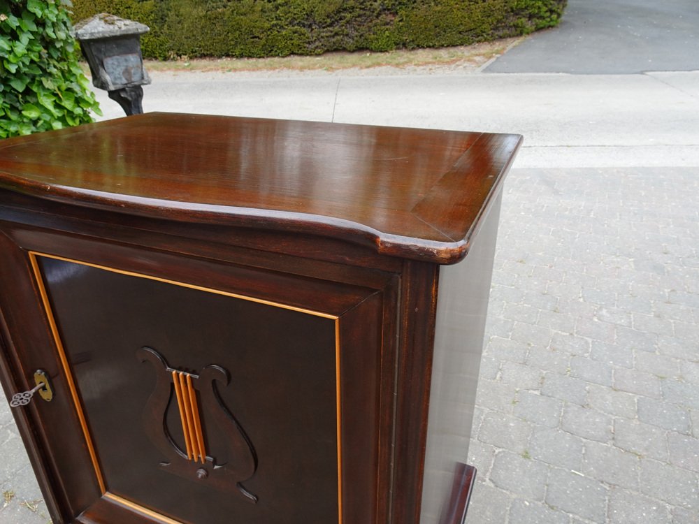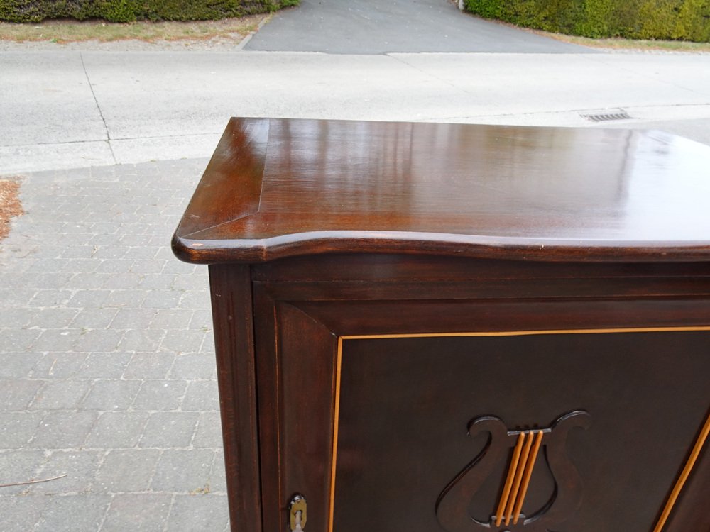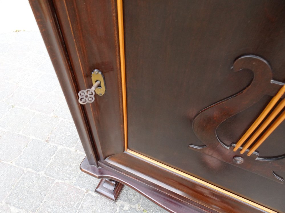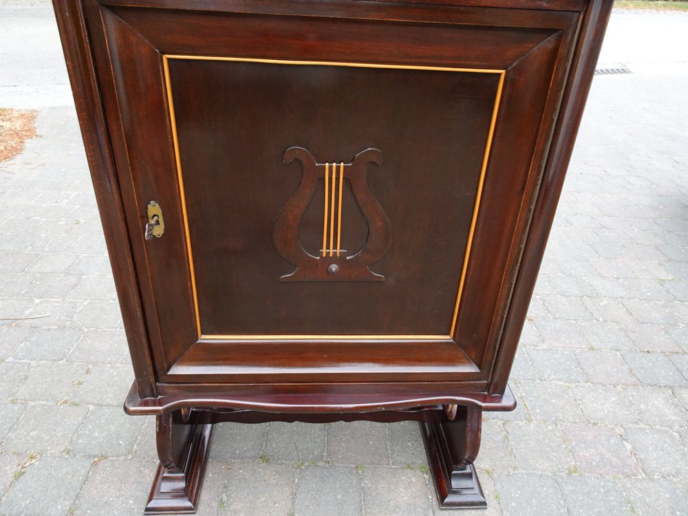 Italienischer Zweifarbiger Mahagoni Lyre Schrank im Stil von Borsani