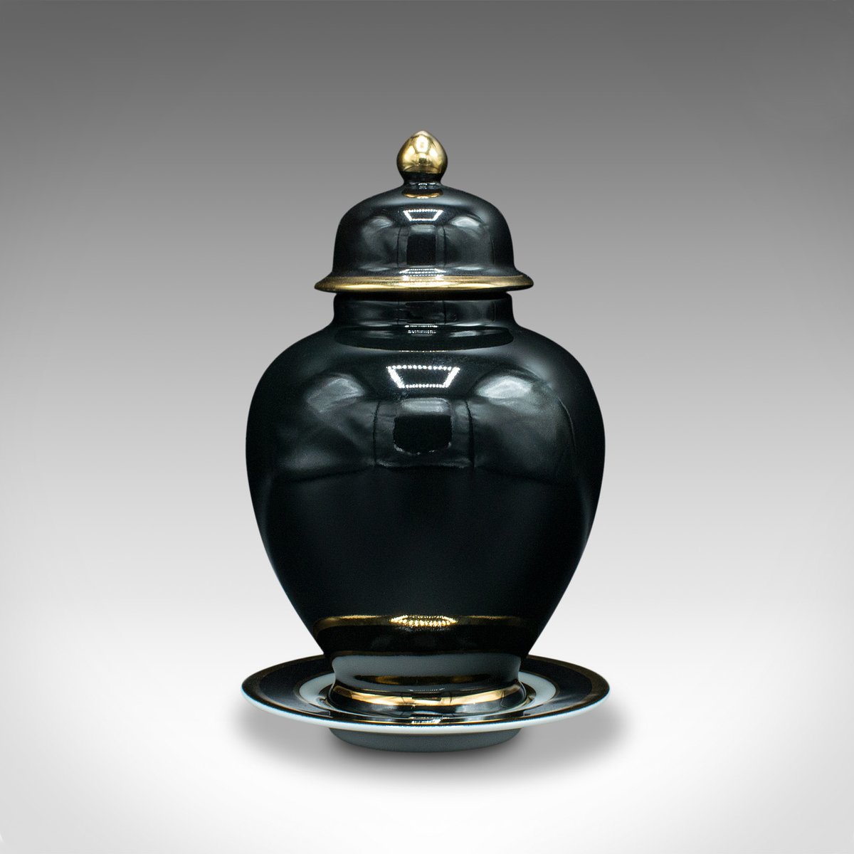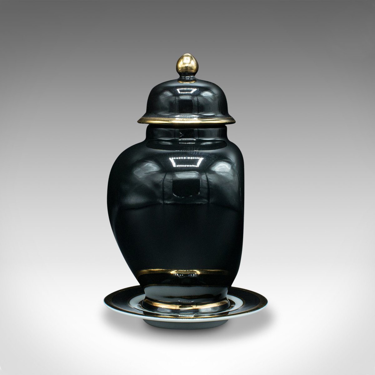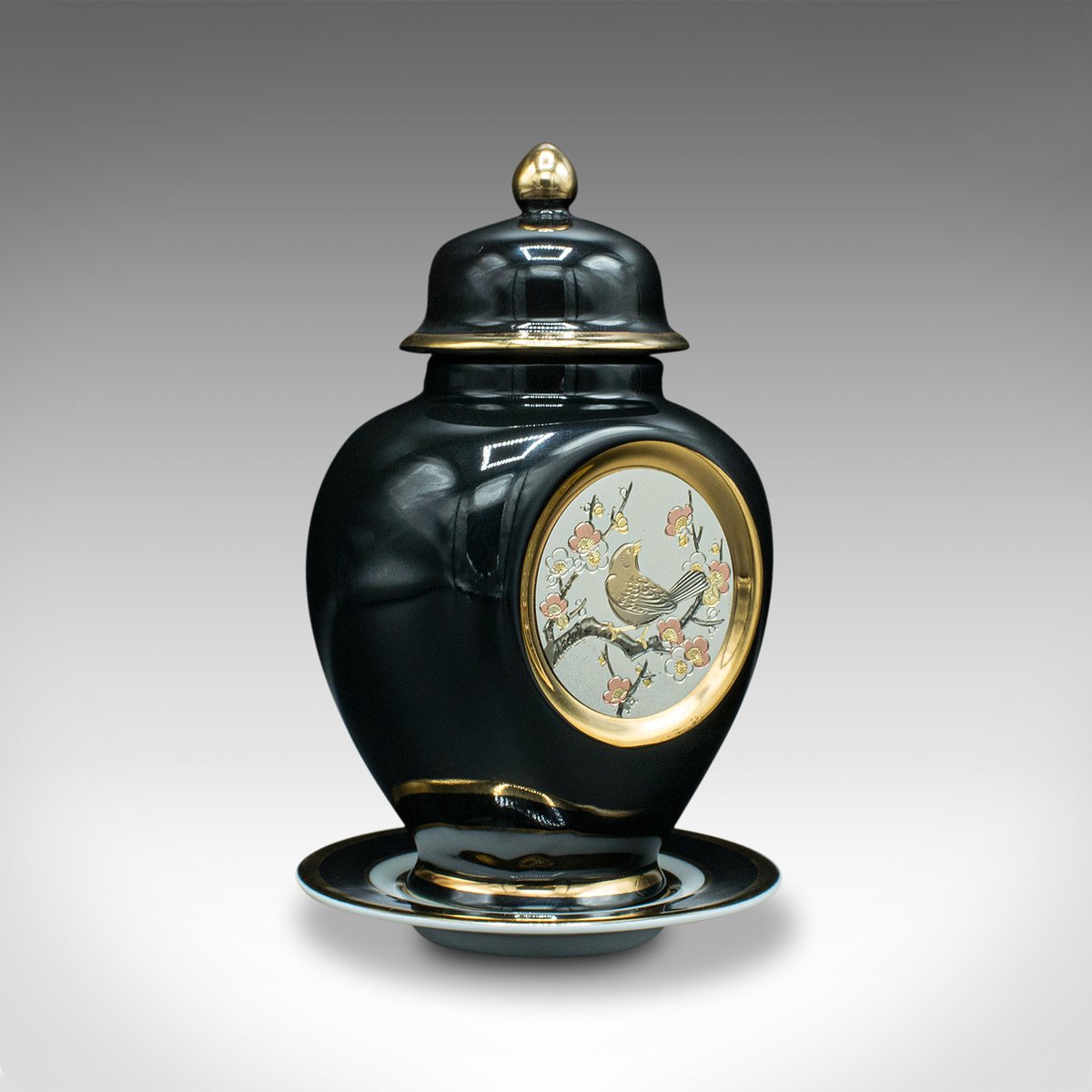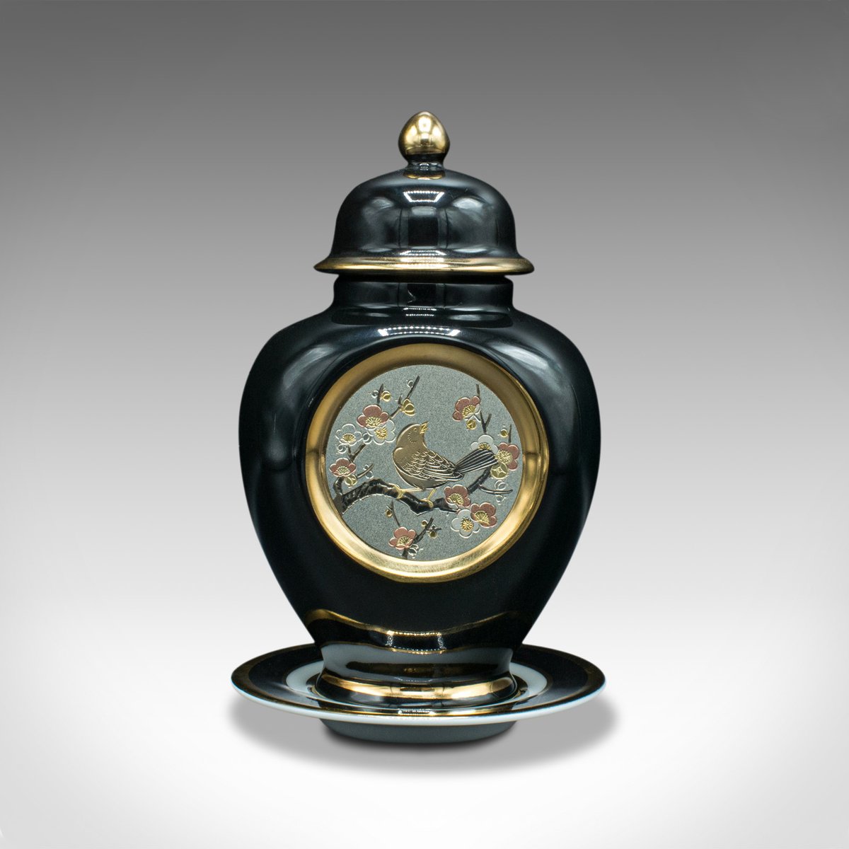 This is a small vintage decorative spice jar. A quality Japanese, ceramic and gilt finished baluster urn on coaster, dating to the late 20th century.