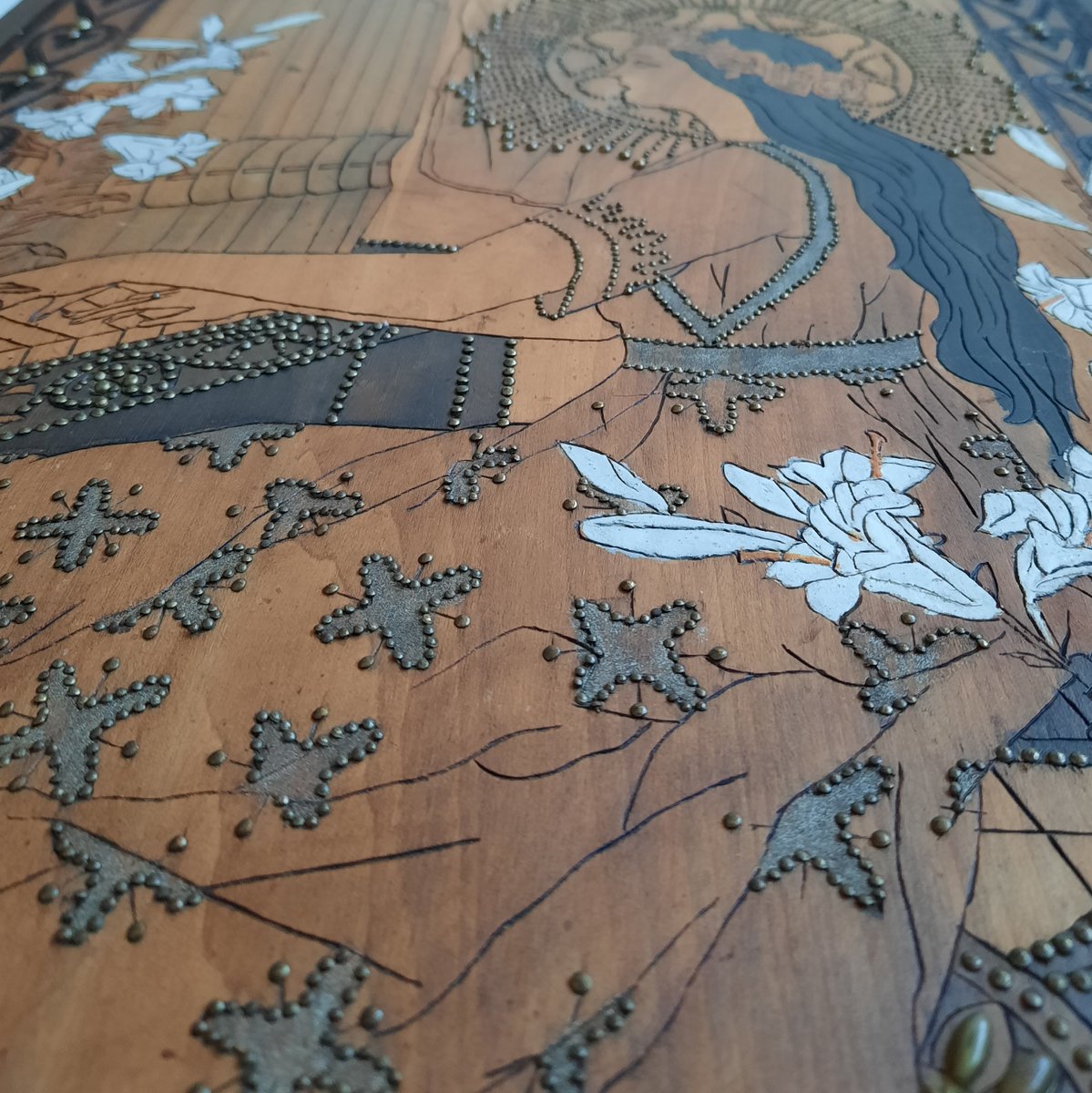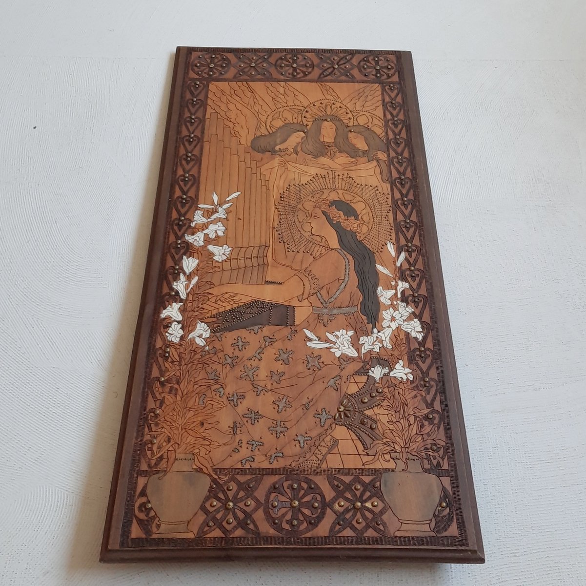 Jugendstil Wandpaneel aus Pokerwork, 1900er