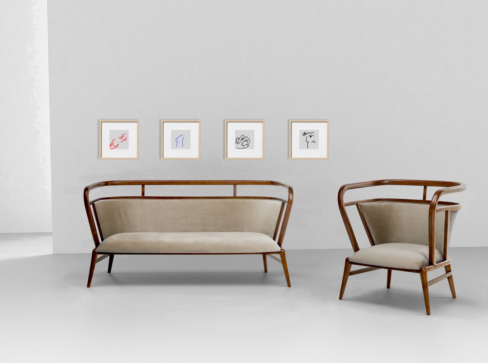 Kamelfarbener Empire Samtsessel von Javier Gomez