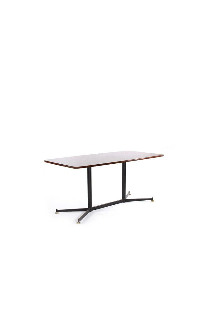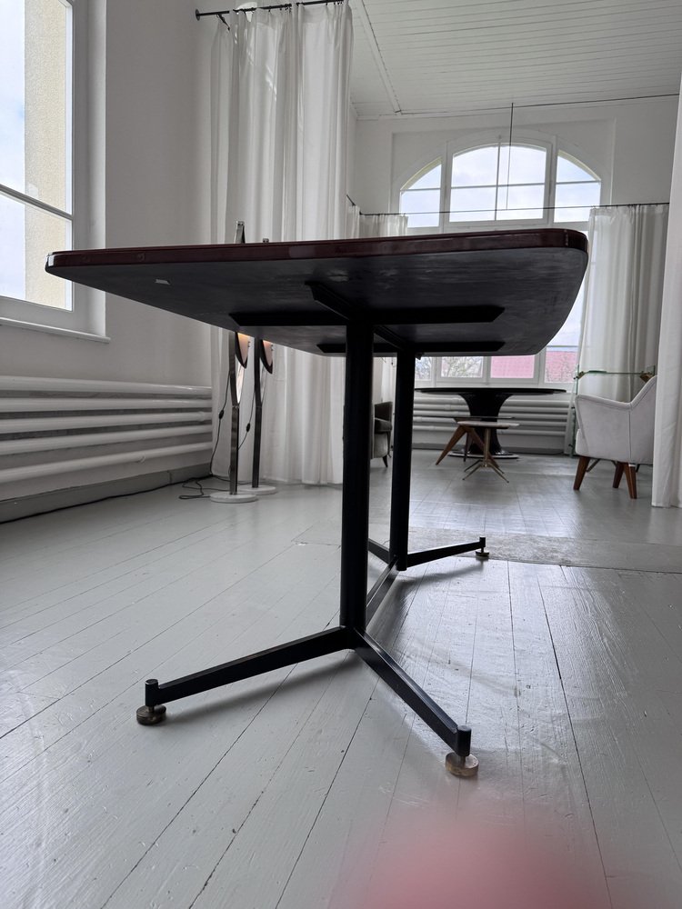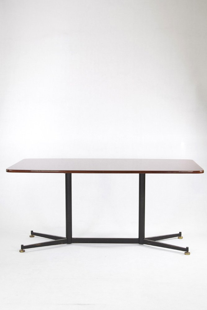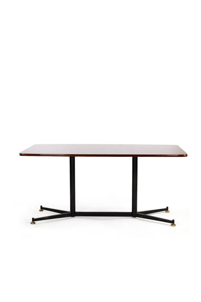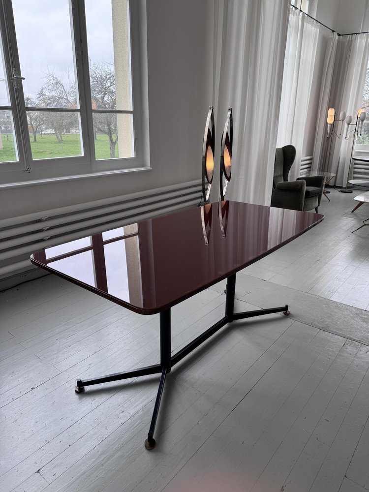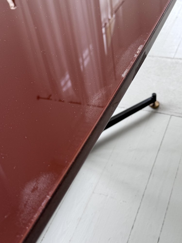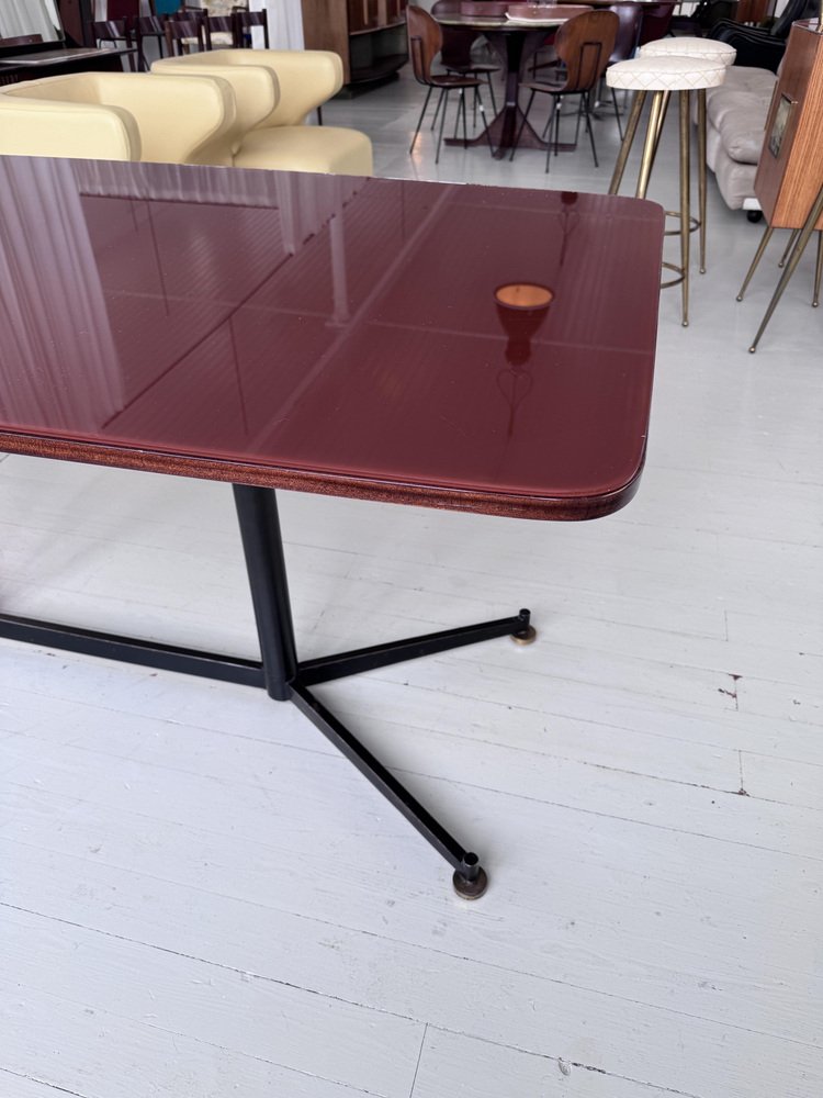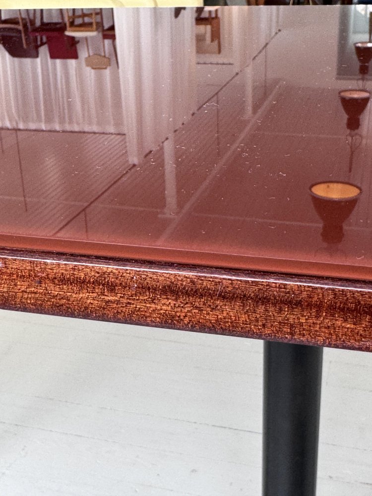 Kastanienbrauner Esstisch aus Glasplatte, 1950er