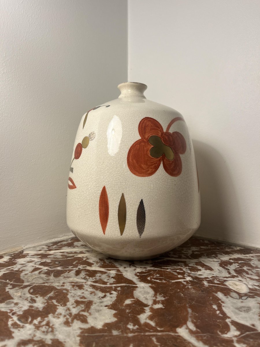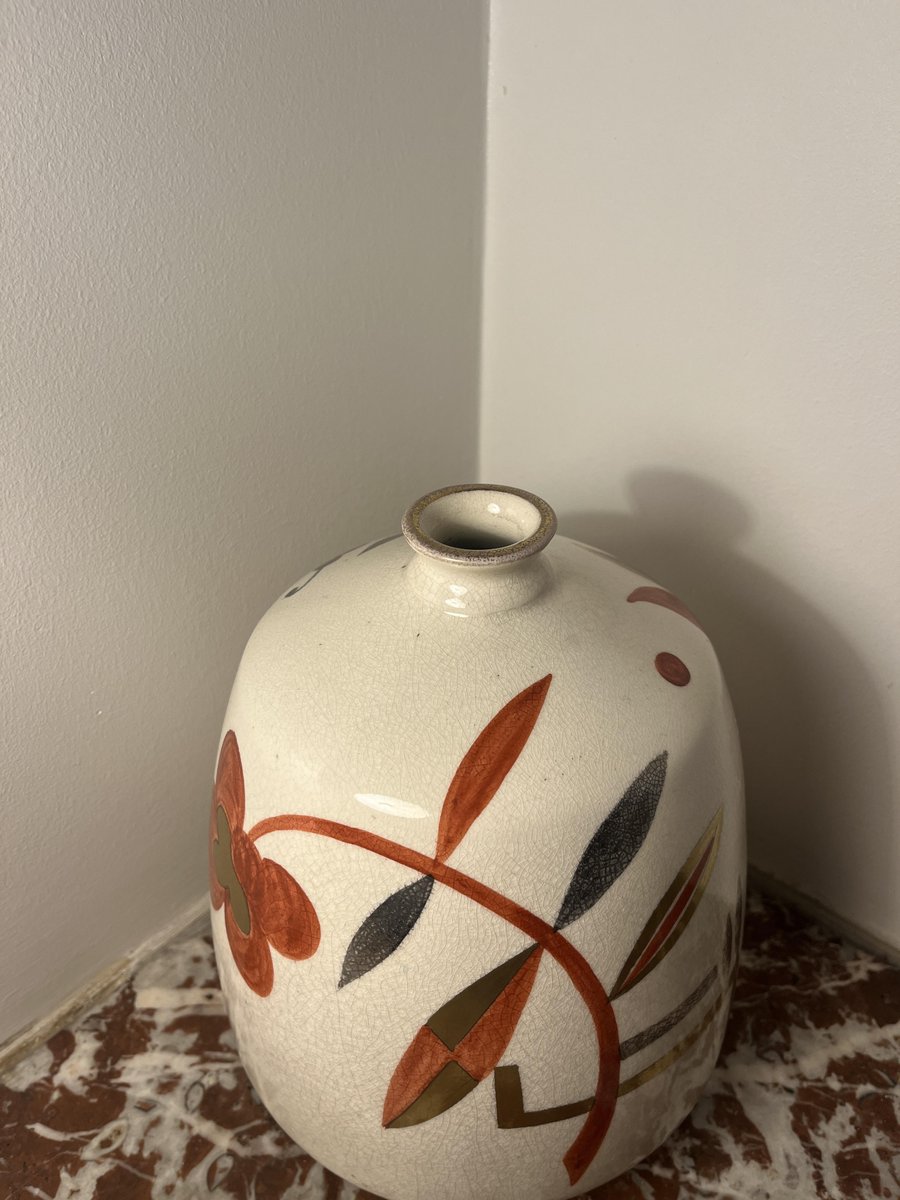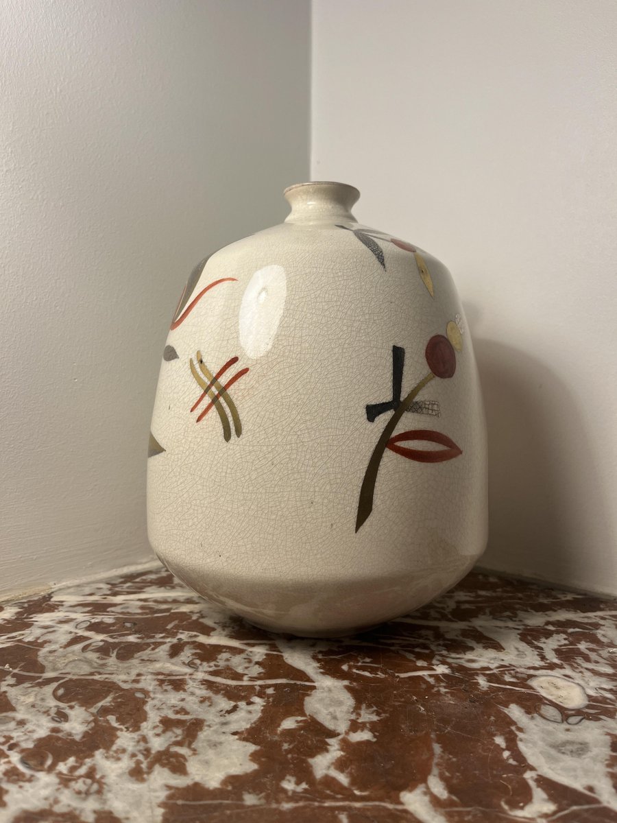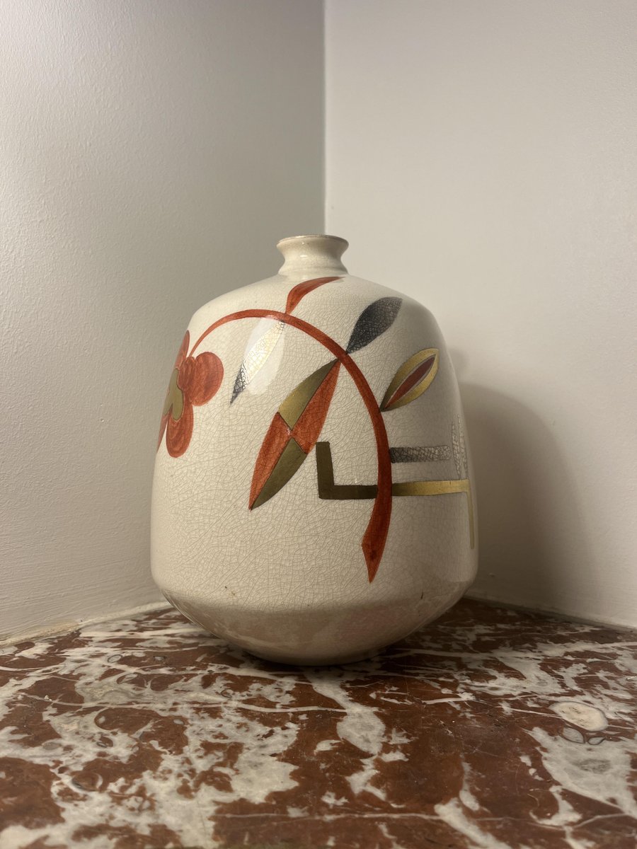 Keramikvase mit Knisterfarbener Emaille von Gustave Asch, 1890er
