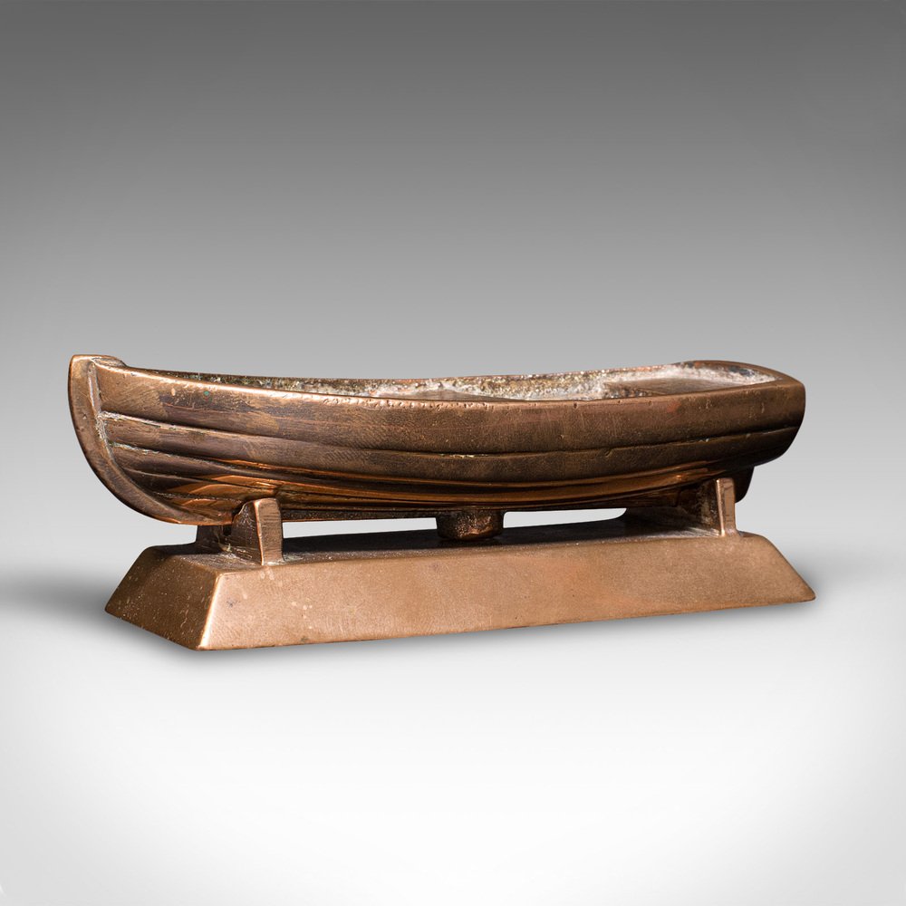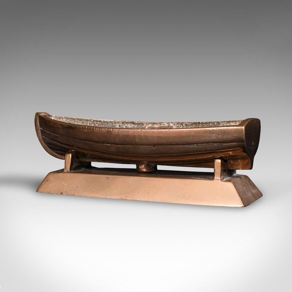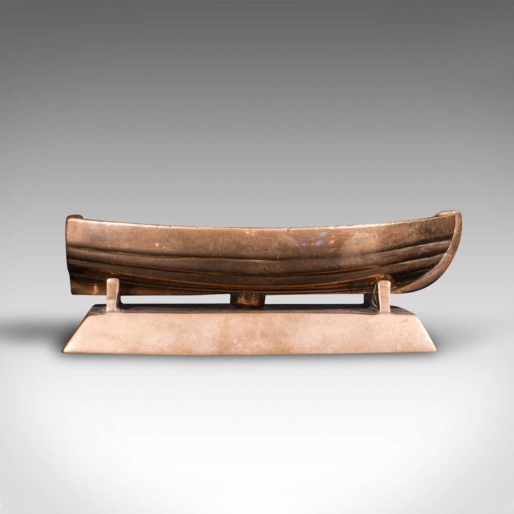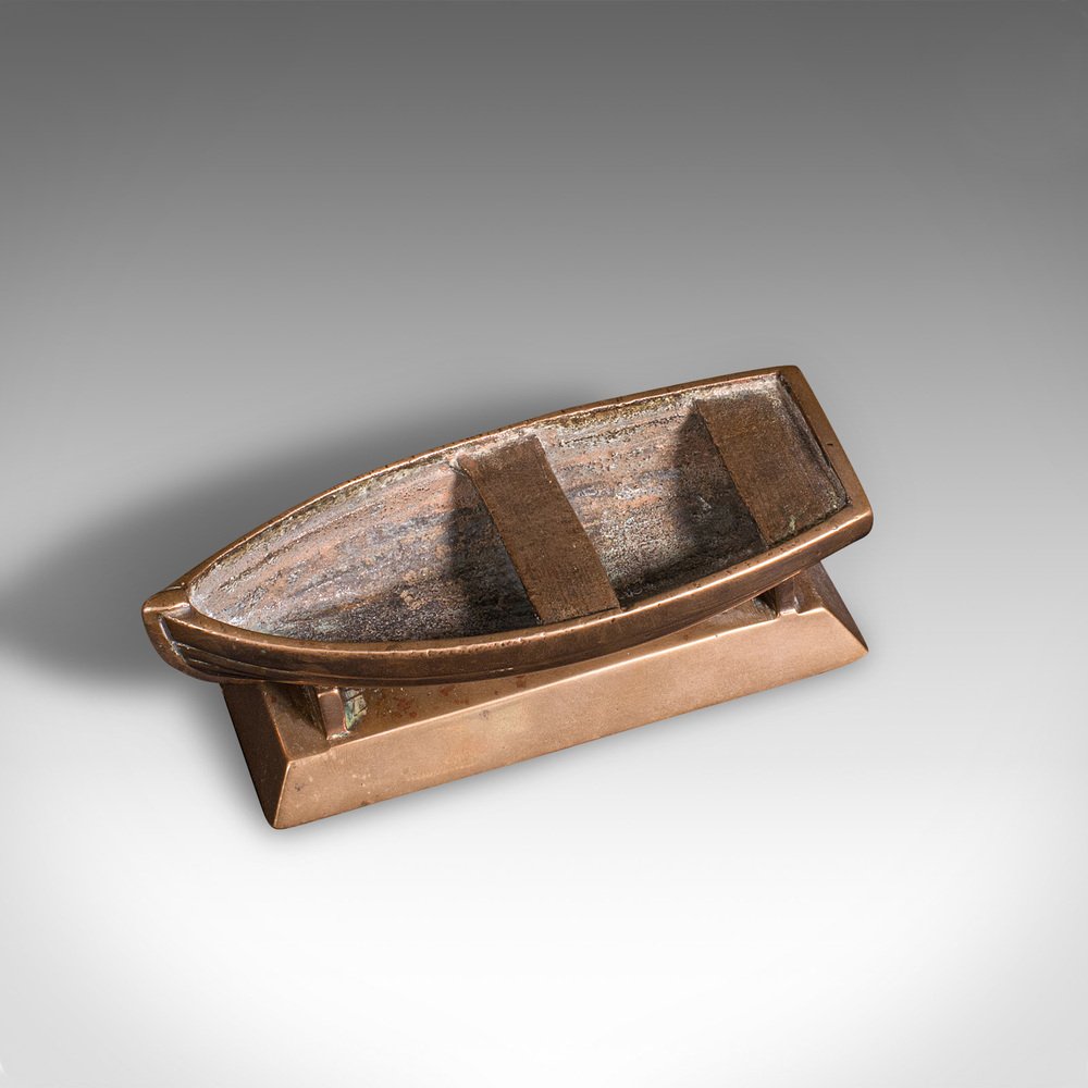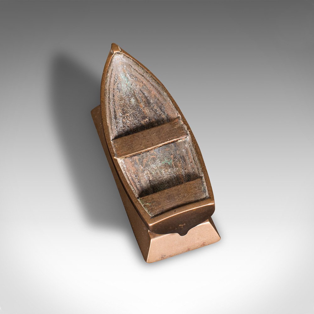 This is a small vintage model boat. A Continental, bronze desk ornament or decorative coin tray, dating to the Mid 20th Century, circa 1950.