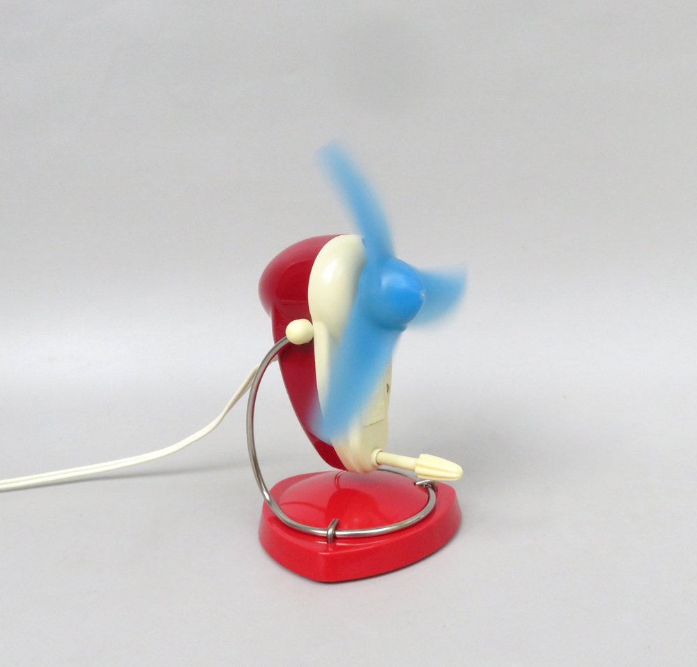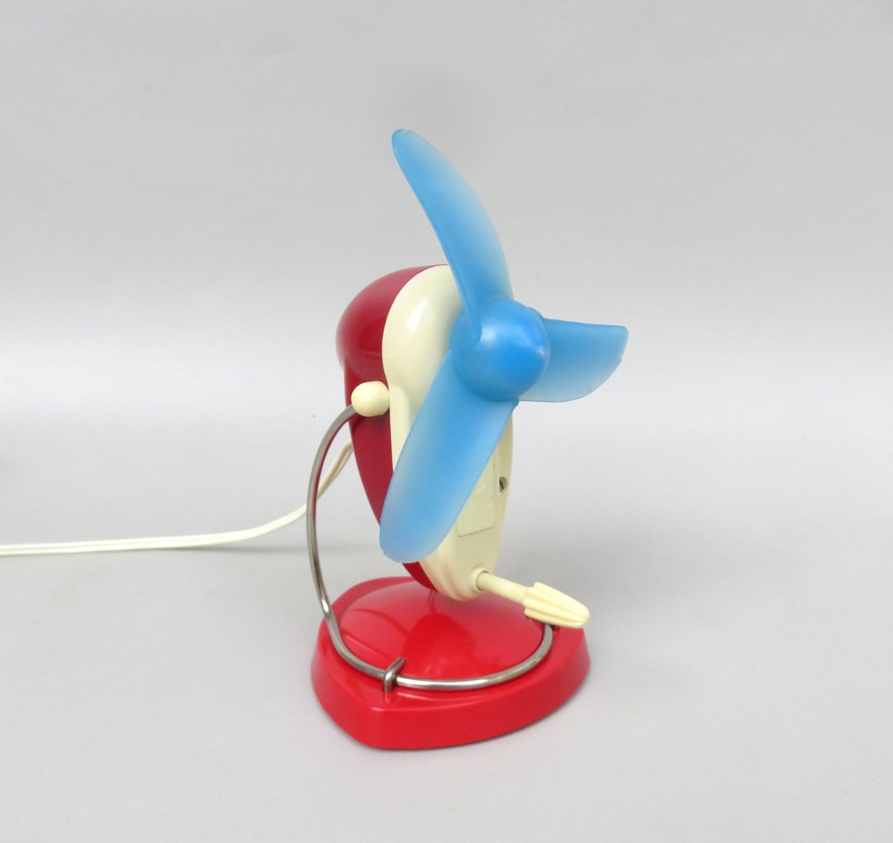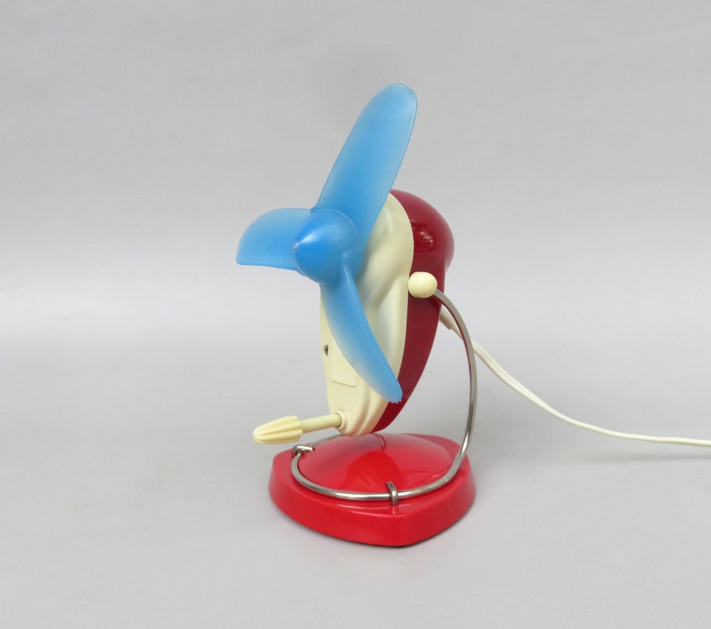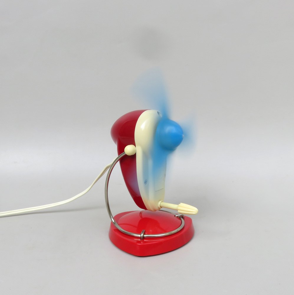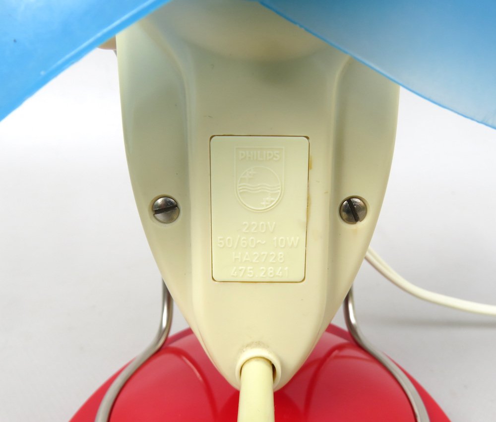 Ein farbenfroher, in der Farbkombination rot, beige mit blau seltener kleiner Ventilator von Philips, Modell HA 2728, aus den 60er Jahren.