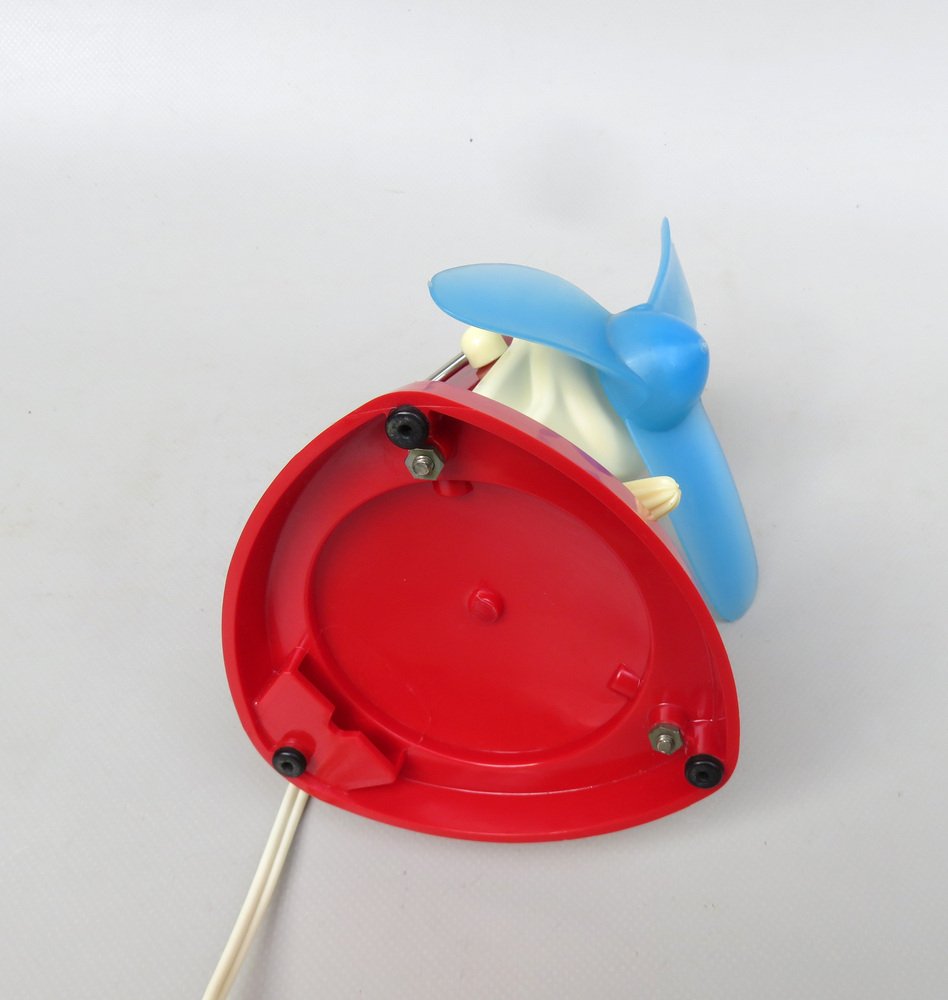 The body and base are made of bakelite, the wings made of soft plastic, the body is kept by a chrome -plated metal bracket.