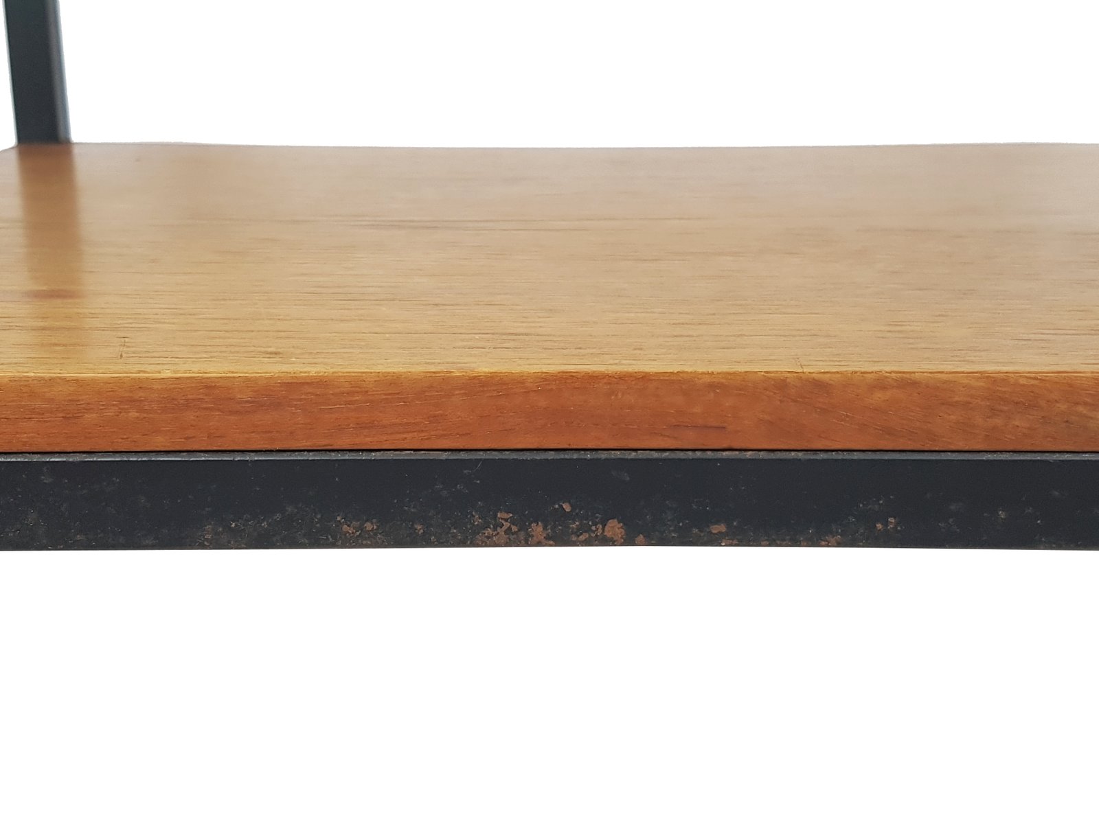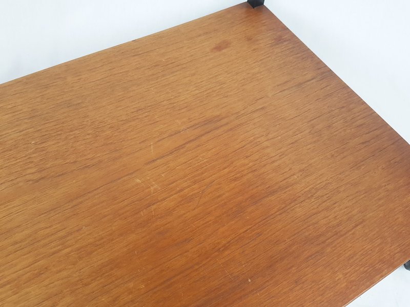 Kleiner Mid-Century Modern Serviertisch aus schwarzem Metall & Teak auf Rollen, 1950er