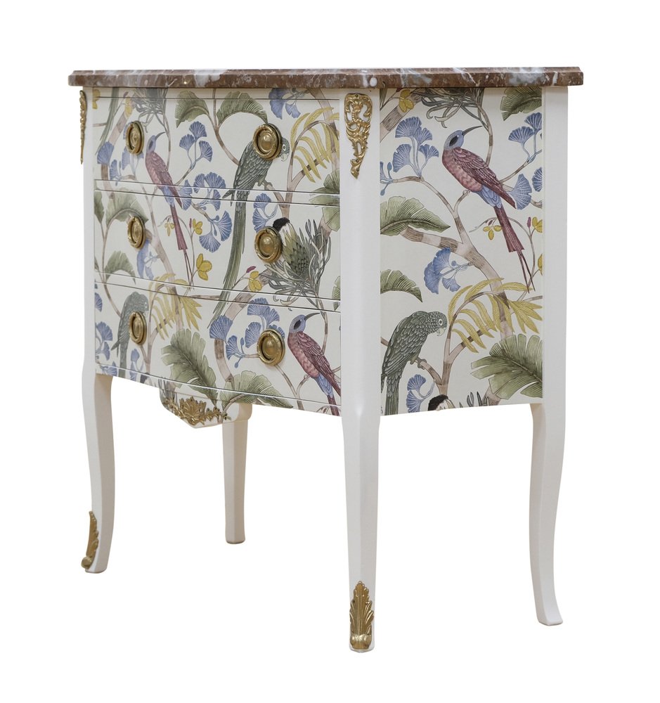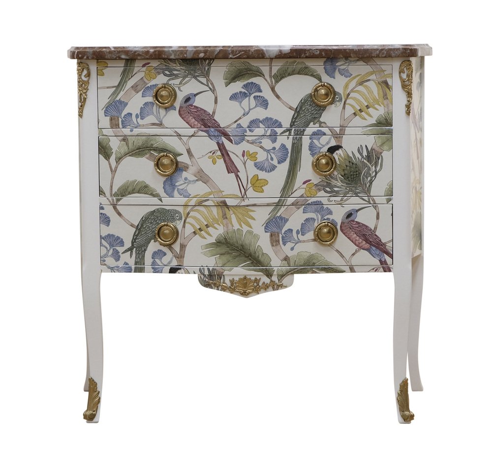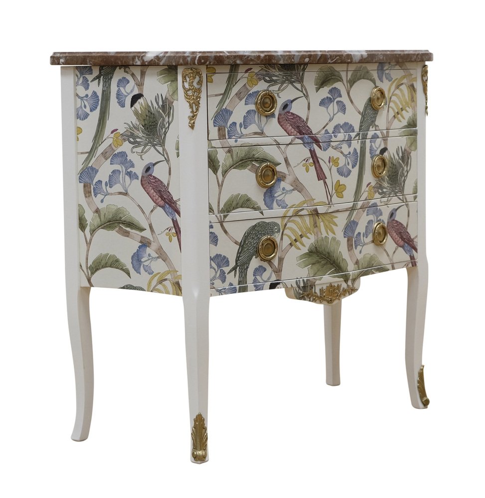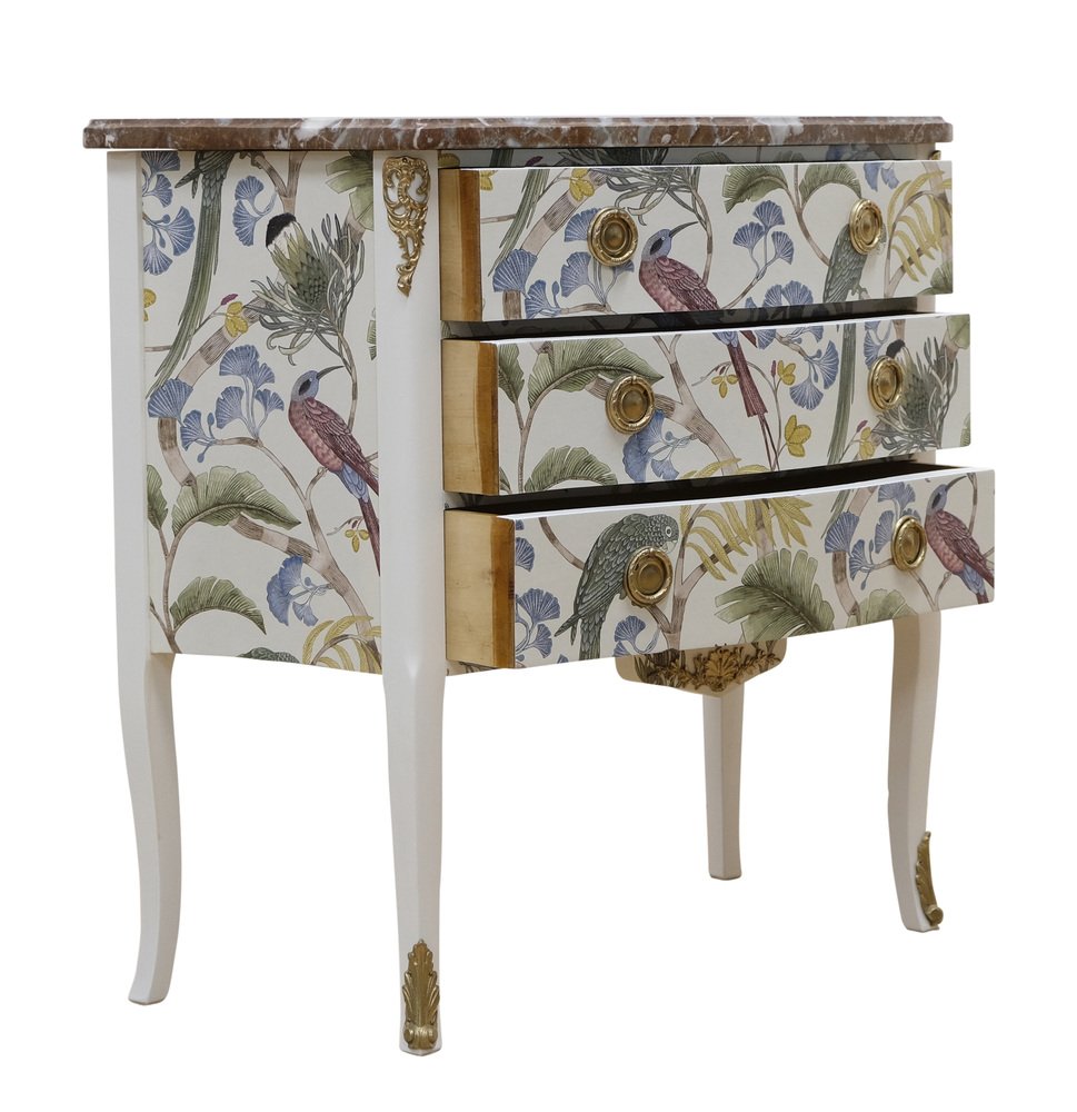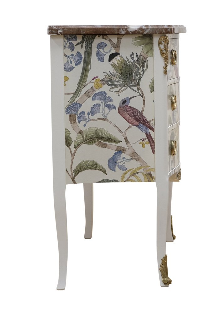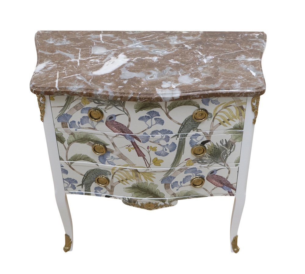 Kommode im Louis XV Stil mit natürlicher Marmorplatte, 1950er