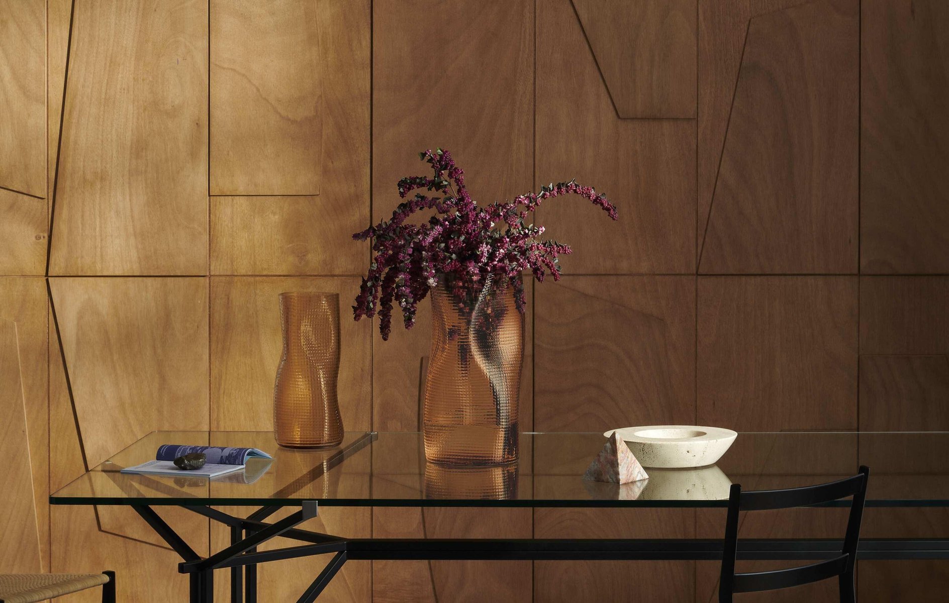 Cassina Coral Vases Inspired by coral and its typical twisted branches, the organic shapes of the Coral design vase seem shaped by the currents of the sea. Inspired by coral and its characteristic twisted shapes, the organic form of the Coral vase looks like it has been molded by the sea’s currents. The vase is in hand-blown venetian glass with a textured net finish reminiscent of a coral’s irregular and rough surface. It is available in two heights, 41 and 34 cm, in amethyst, green and pale pink. Materials Clown Venetian glass with a net texture. Inspired by coral and its characteristic twisted shapes, the organic form of the Coral vase looks like it has been molded by the sea’s currents. The vase is in hand-blown venetian glass with a textured net finish reminiscent of a coral’s irregular and rough surface.
