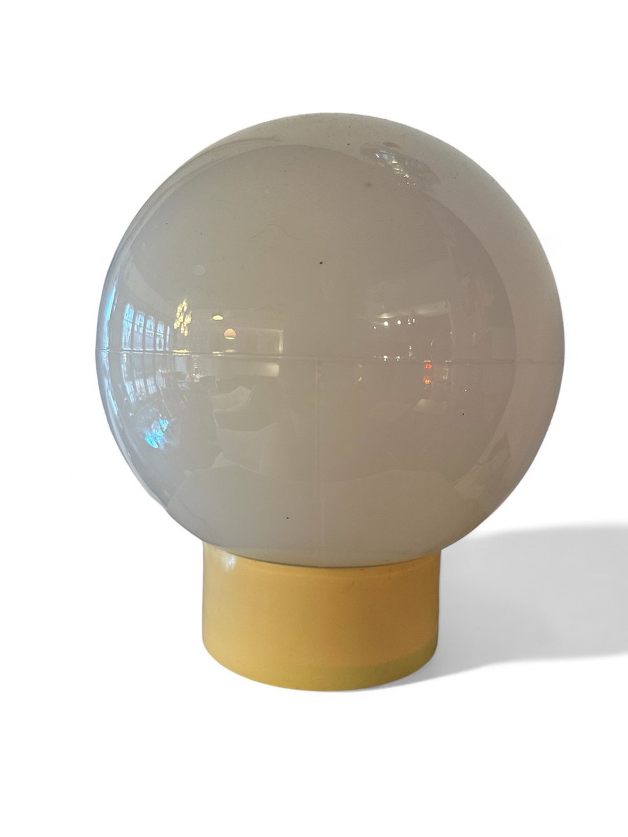 An original Spherical Mid century modern Opaline glass lamp on an ABS plastic plinth with original wiring.