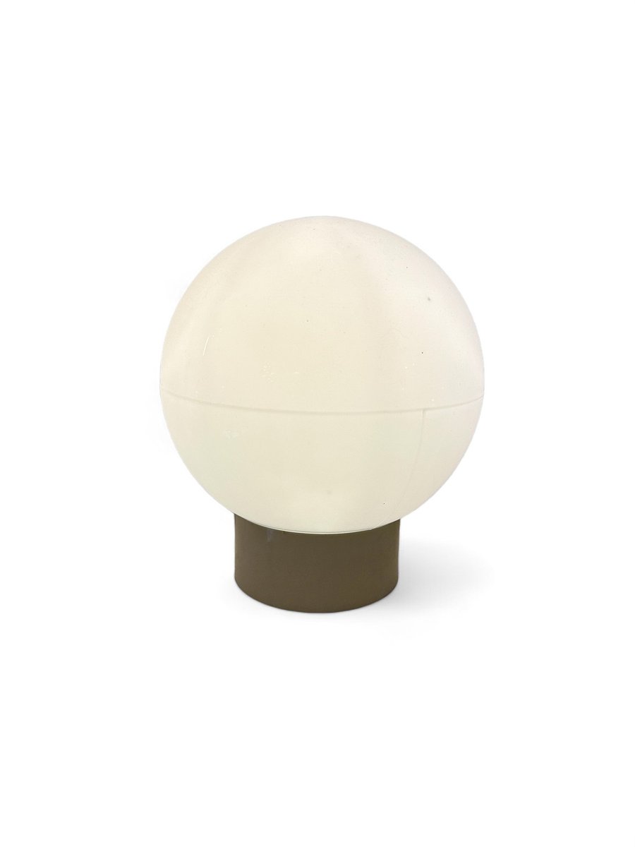 Eine originale kugelförmige Opalglaslampe aus der Mitte des Jahrhunderts auf einem ABS-Kunststoffsockel mit originaler Verkabelung.