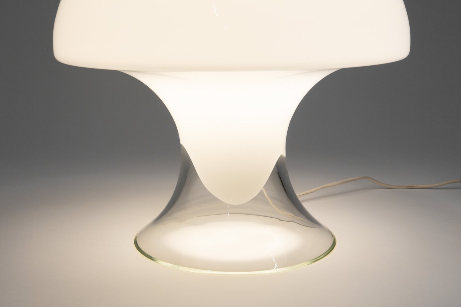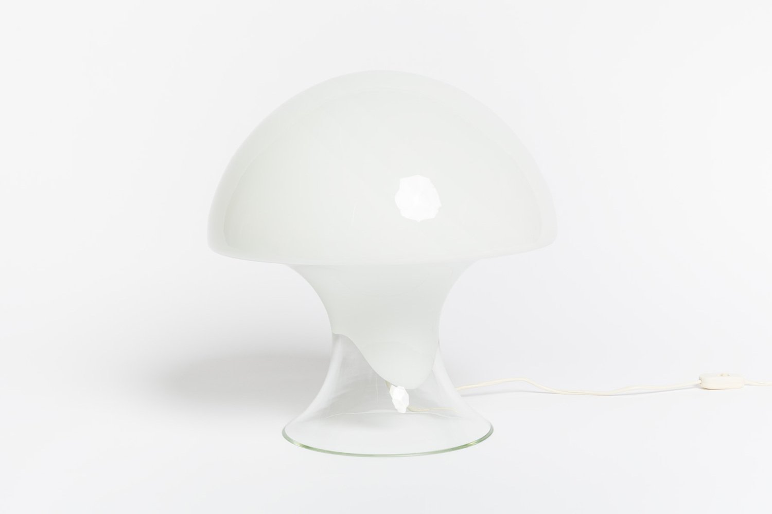 1967 zeigte Vistosi erstmals die inzwischen ikonischen Giogali Leuchten mit gläsernen Verbindungen, entworfen von dem italienischen Architekten, Bildhauer und Designer Angelo Mangiarotti (1921-2012). Diese revolutionären und unglaublich erfolgreichen Kronleuchter und Lampen bestehen aus Glasringen in einer Vielzahl von Anordnungen. Ab den 1970ern und 80ern war Vistosi außerdem mit Magistrettis Alega Lampe (1970), De Lucchis Vega Tischlampe (1982) und verschiedenen Designs von Albert Leclerc und Ettore Sottsass erfolgreich.