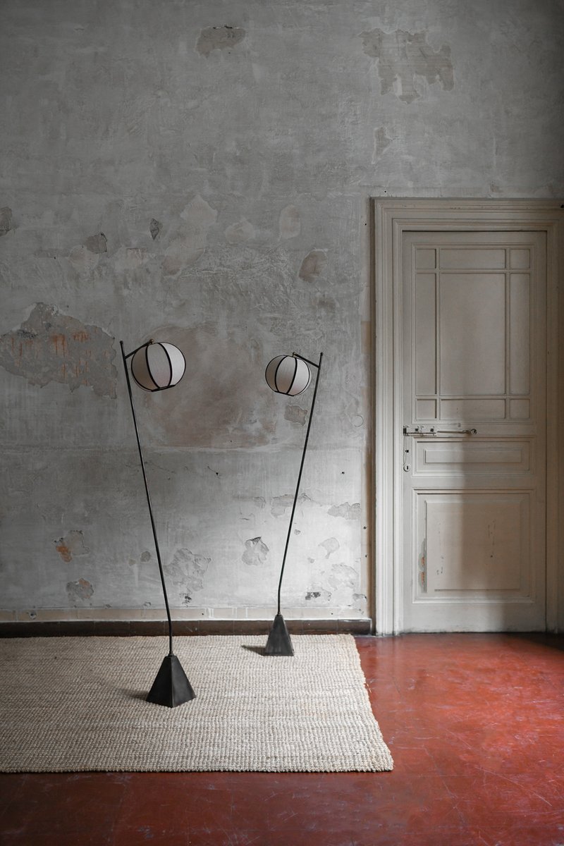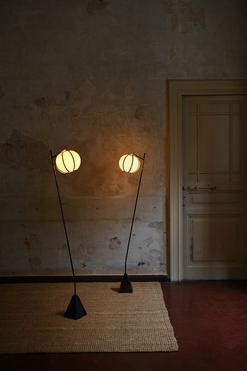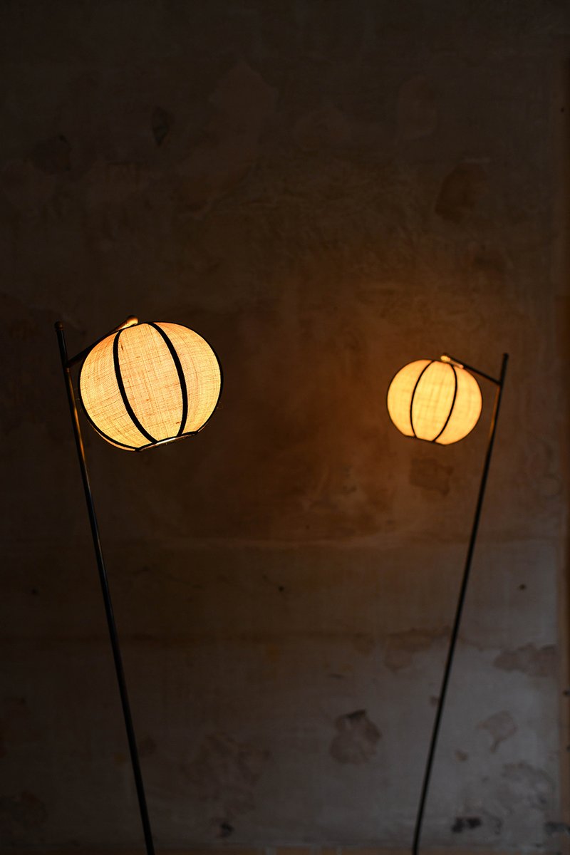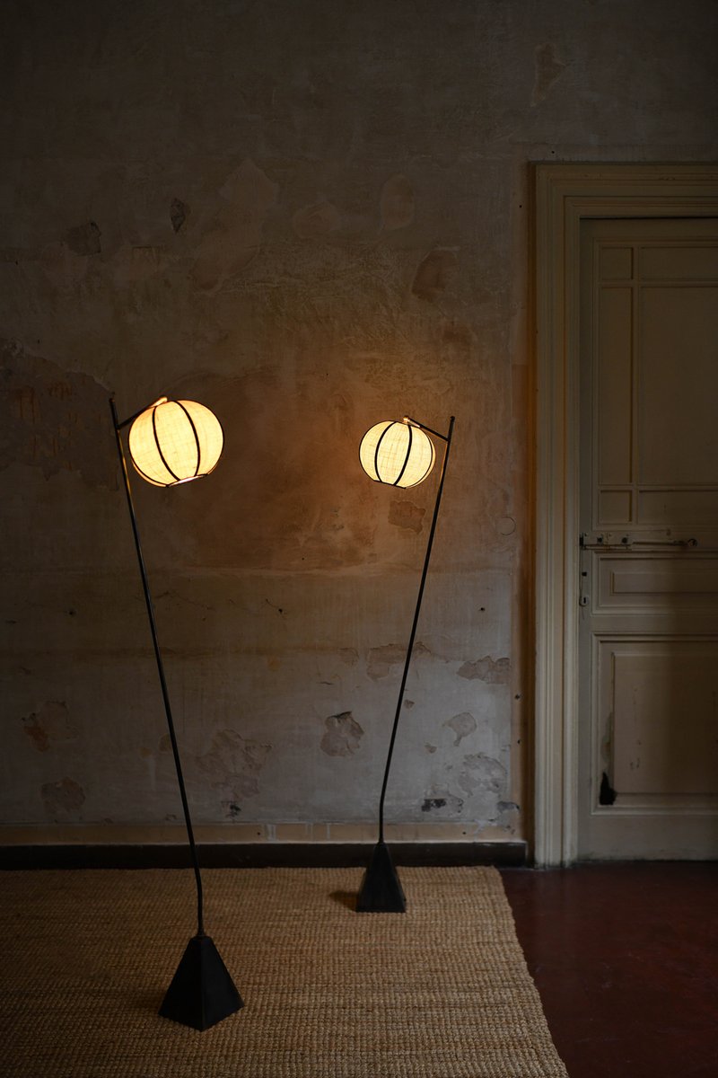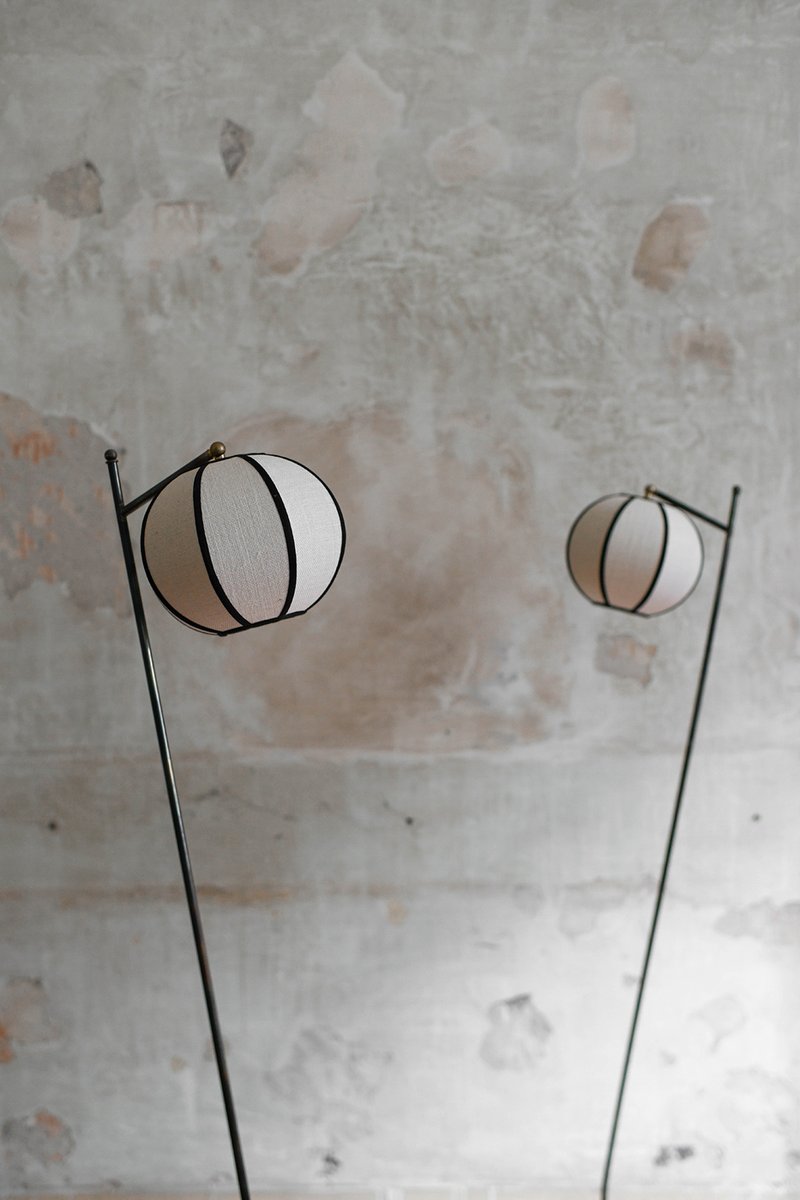 Lanterna Stehlampen mit Eisengestell & Kugelförmigem Stoff Lampenschirm, 2 . Set