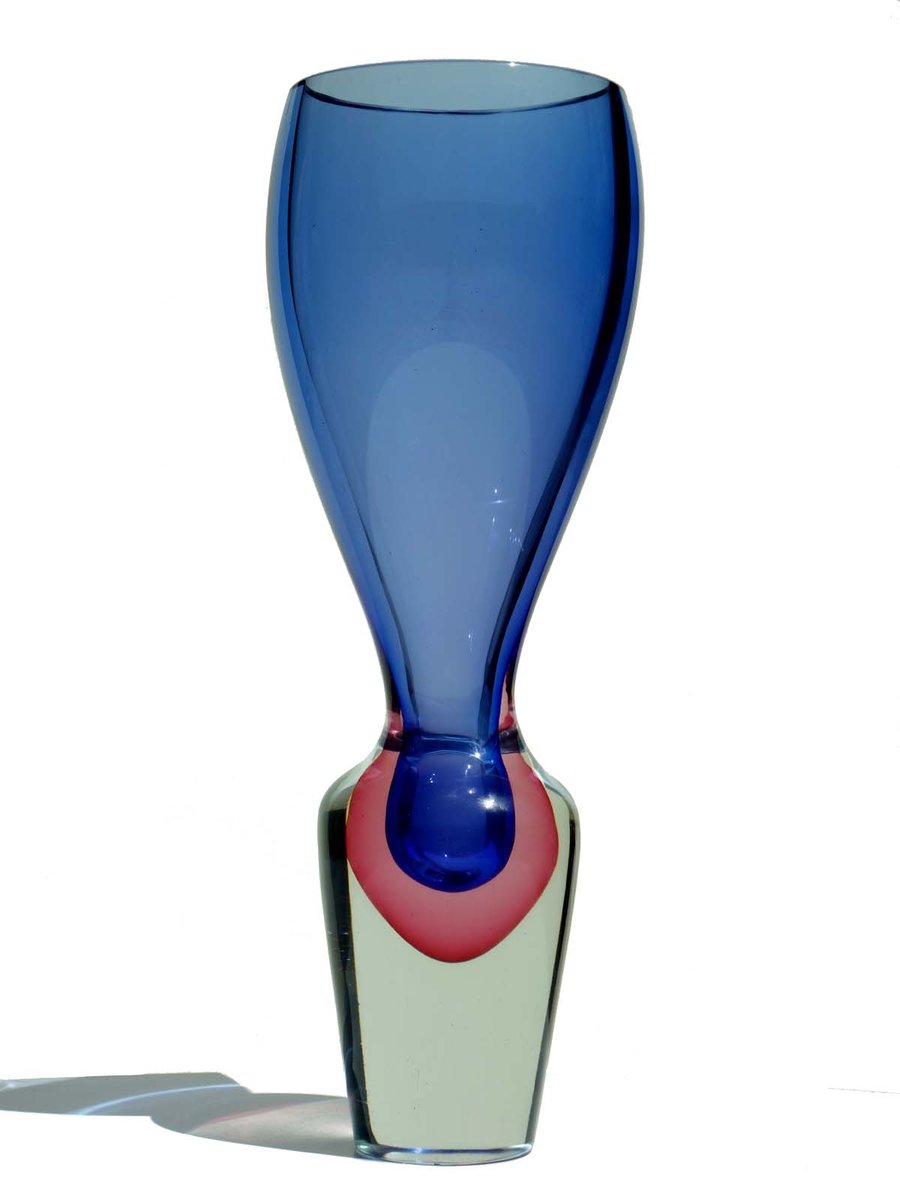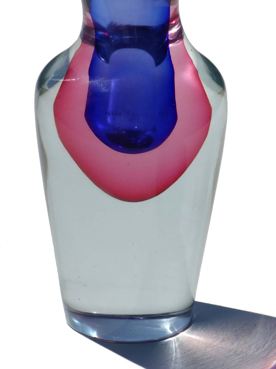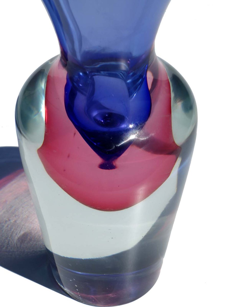 Lila Blau Rosa Murano Glas Vase von Flavio Poli Seguso Sommerso, 1960er