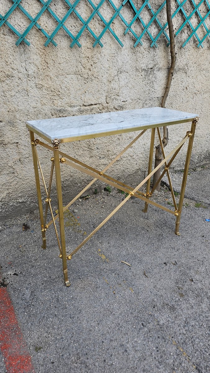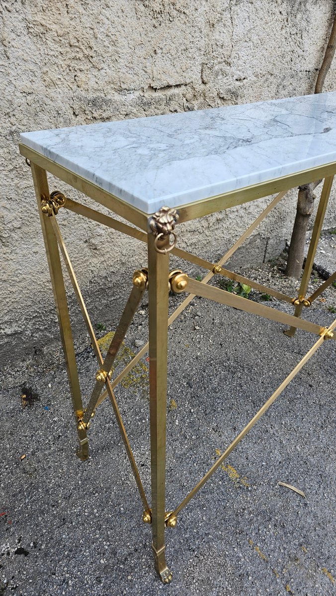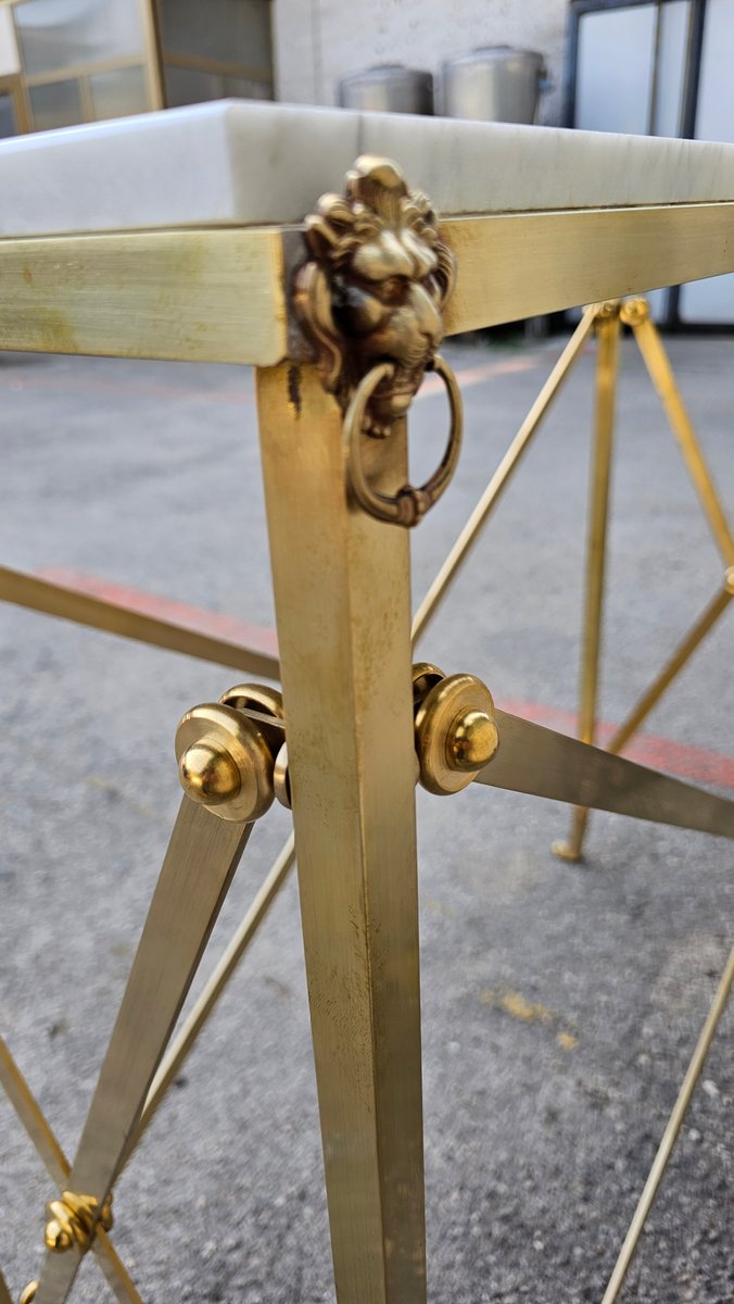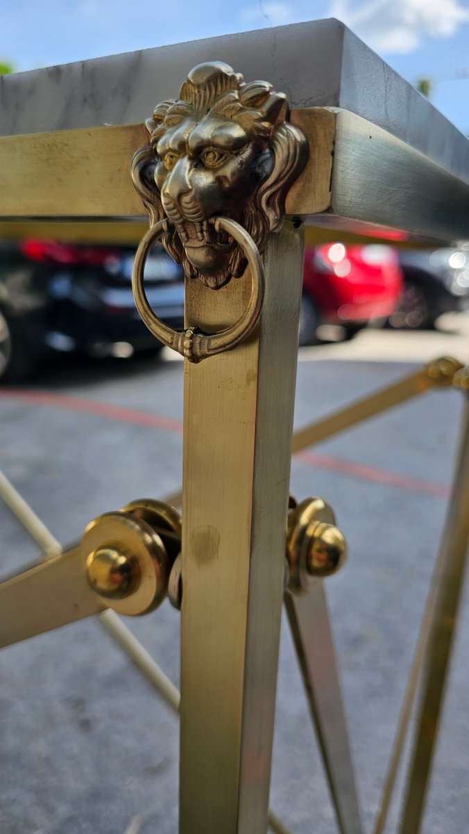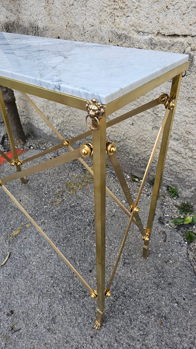 Lionhead Konsolentisch aus weißem Marmor und Messing