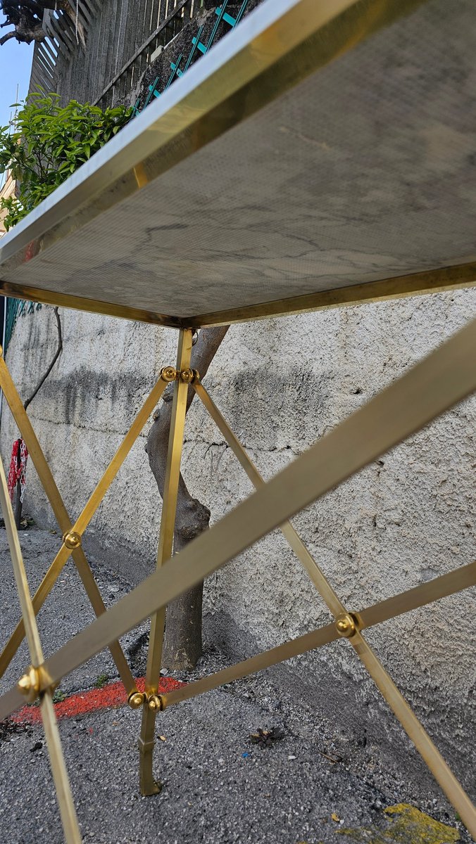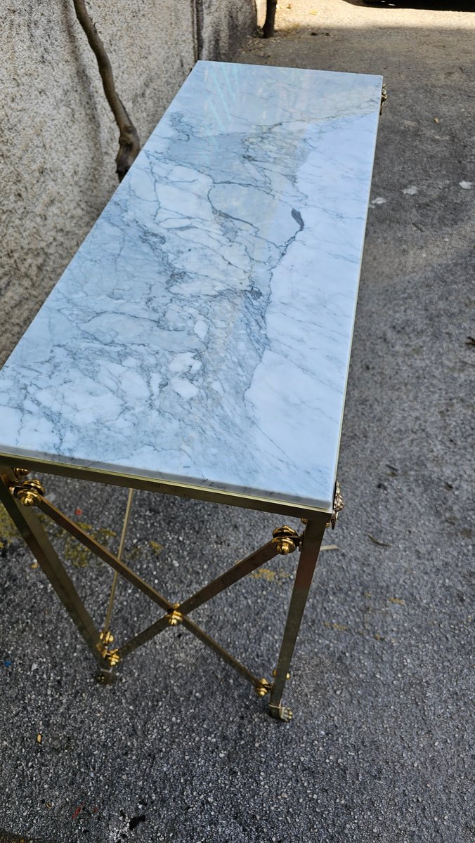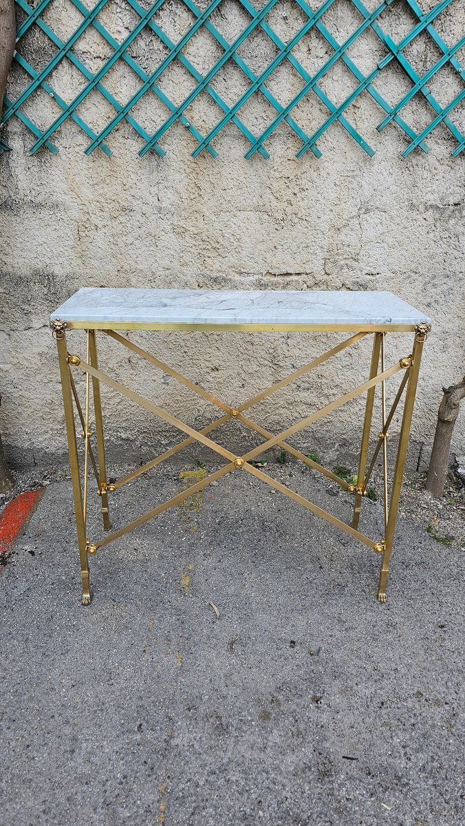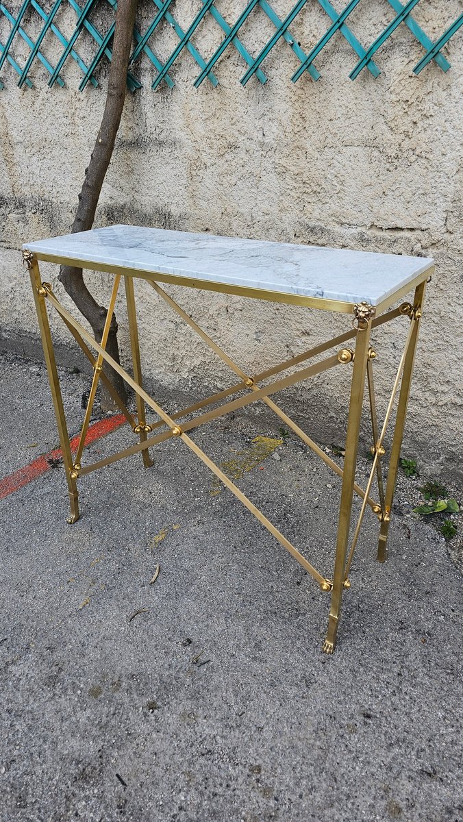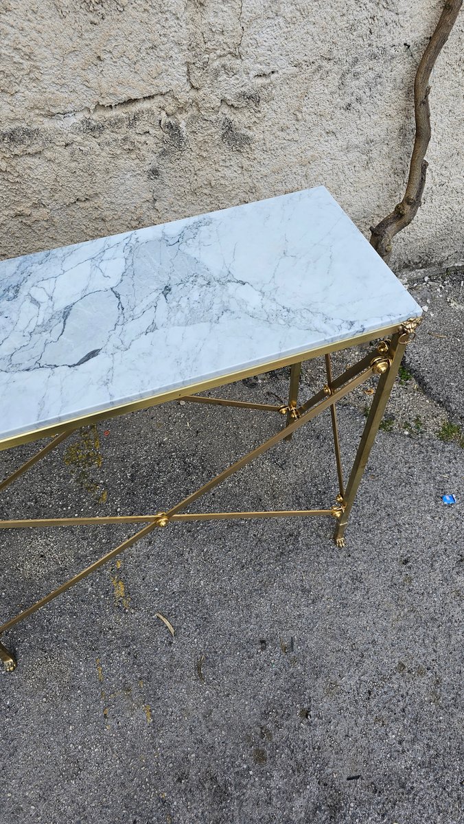 Lionhead Konsolentisch aus weißem Marmor und Messing