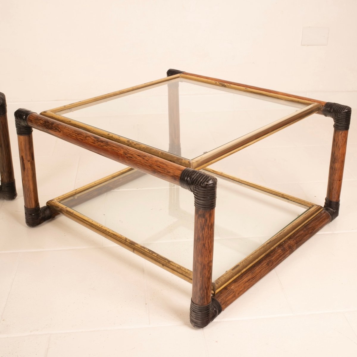 Sie verfügen über 2 Glasböden mit Messingkanten.
