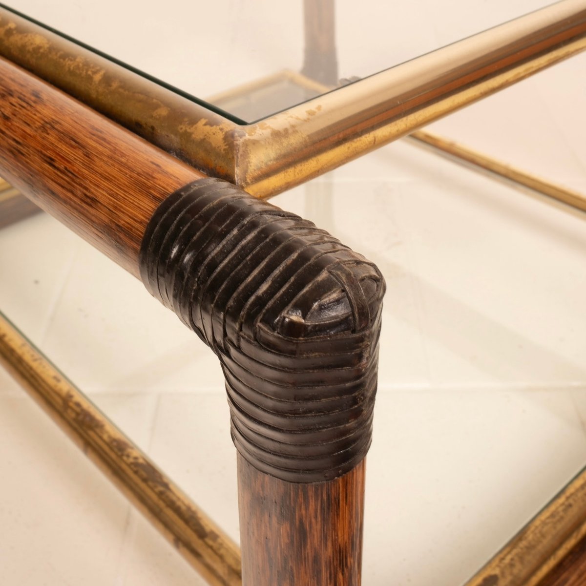 Unverwechselbares Design: Details an den Ecken aus gewebtem Leder, Messingprofile