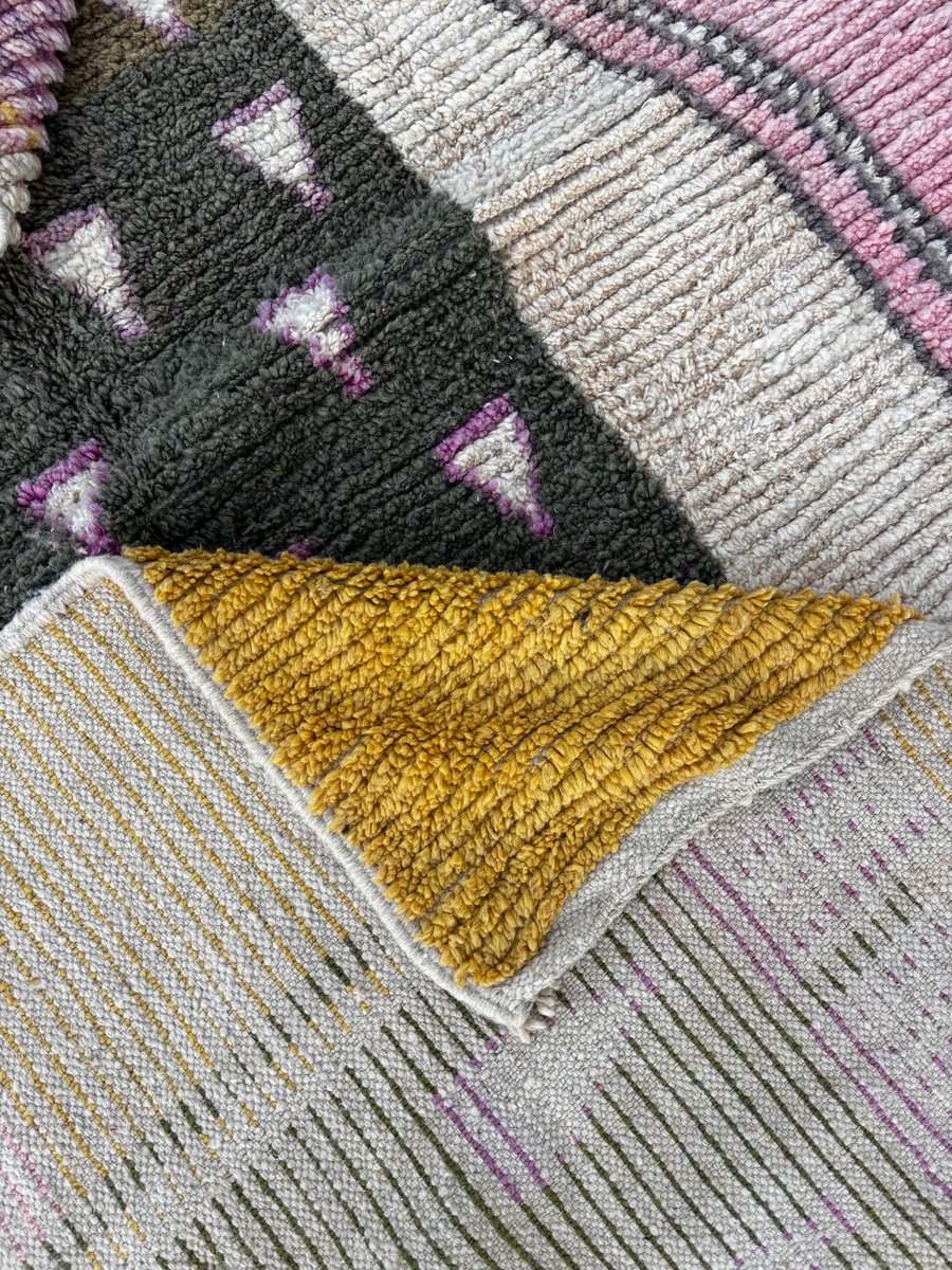 This Boujad rug integrates seamlessly into modern, bohemian, artistic, or eclectic interiors. Its soft color palette works particularly well with neutral spaces, natural materials, and minimalist furnishings, while still bringing warmth, texture, and personality. It is frequently selected by interior designers for projects seeking a refined yet expressive piece.
