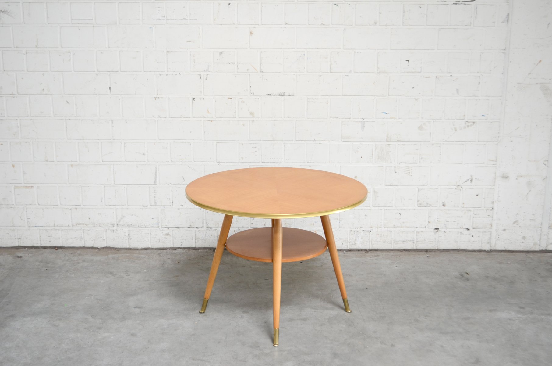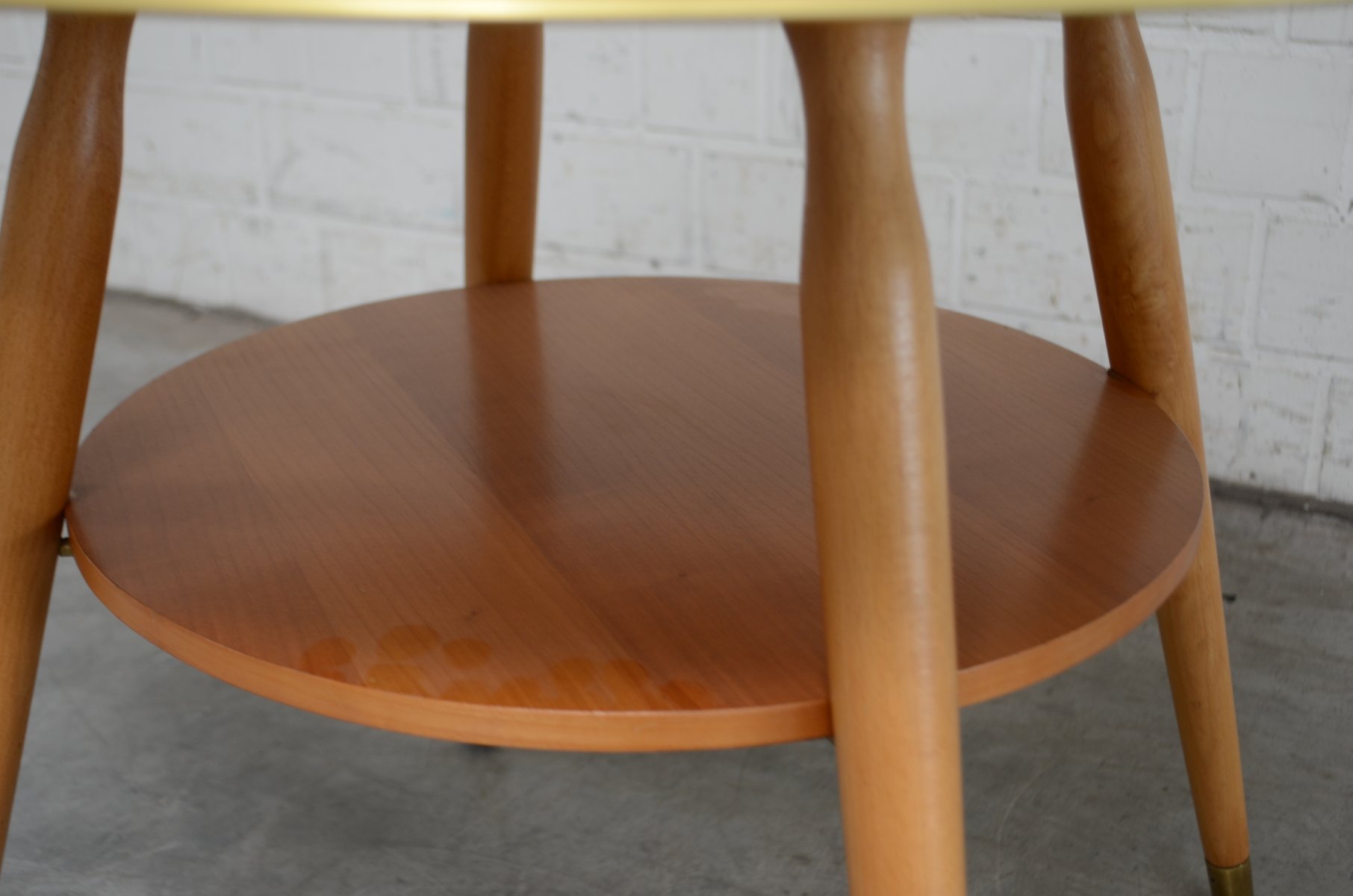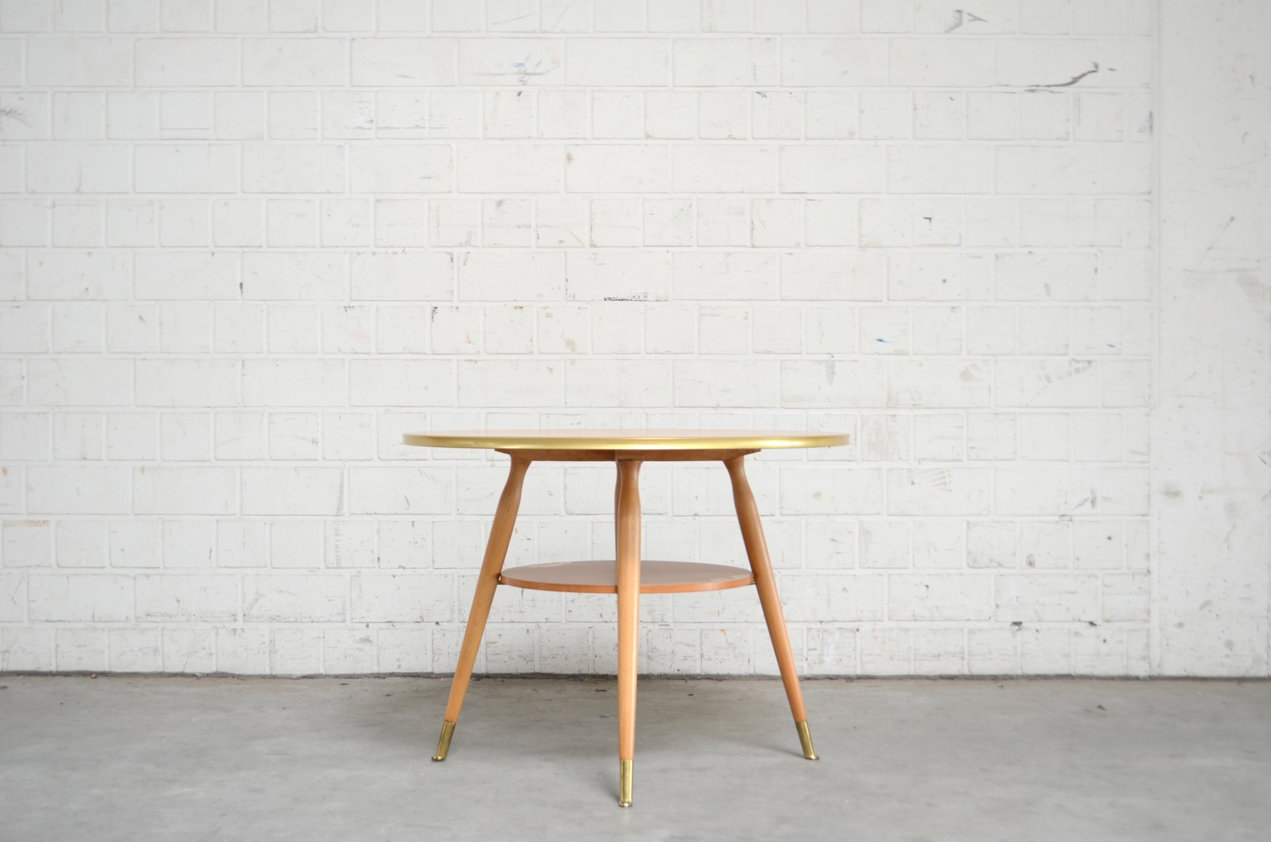 Mid-Century Beistelltisch in Messing & Kirschholz