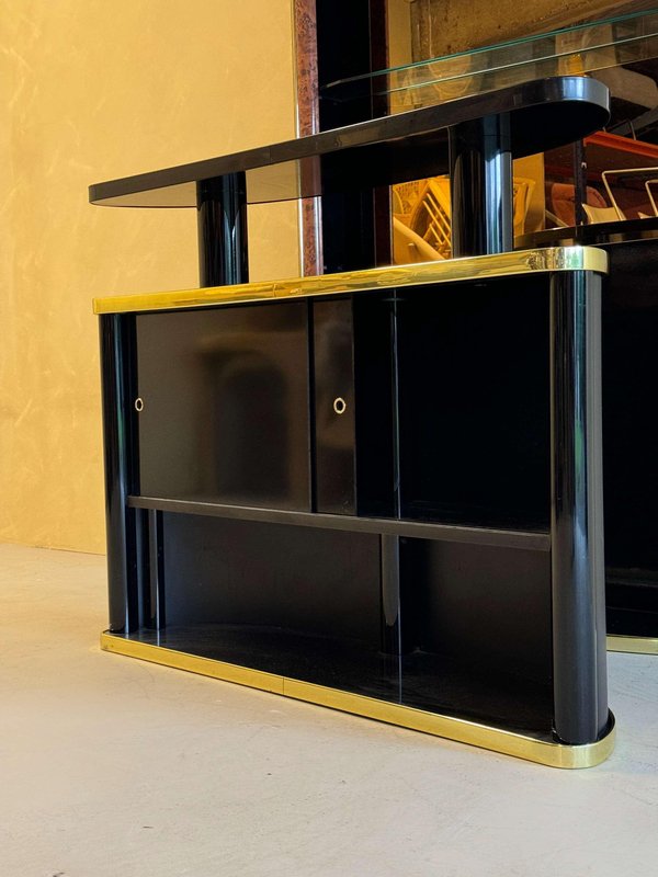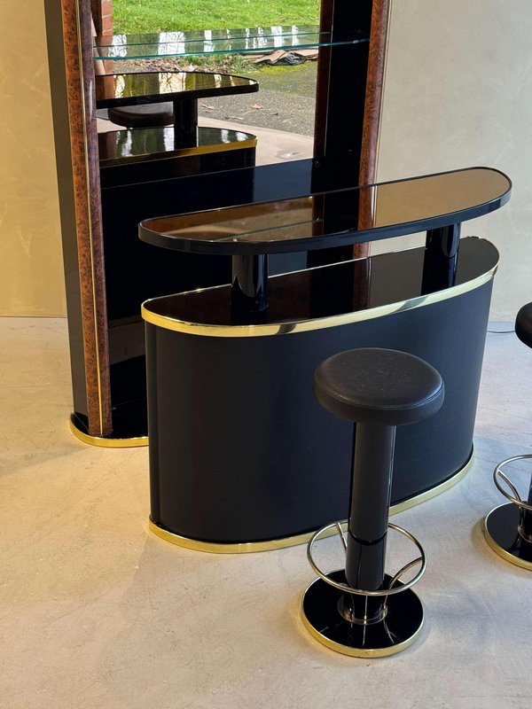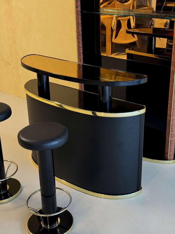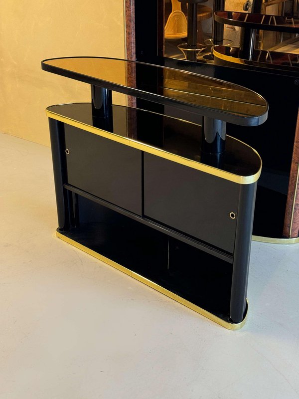 Mid-Century Cocktailbar aus schwarz lackiertem Wurzelholz