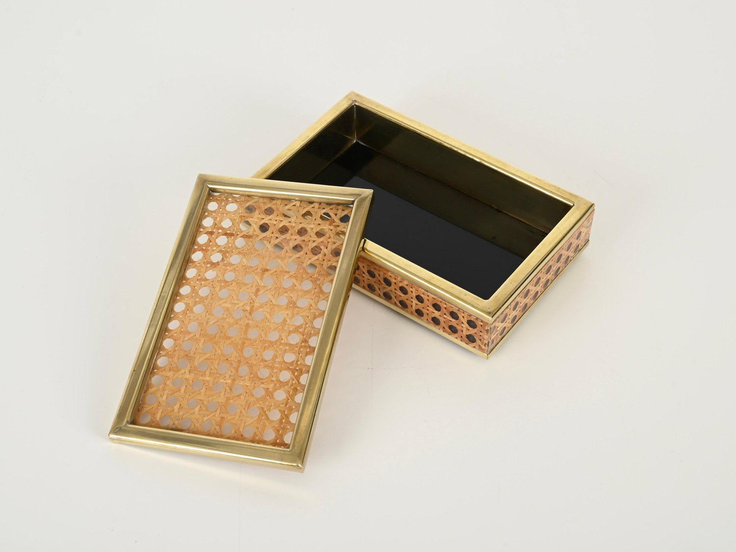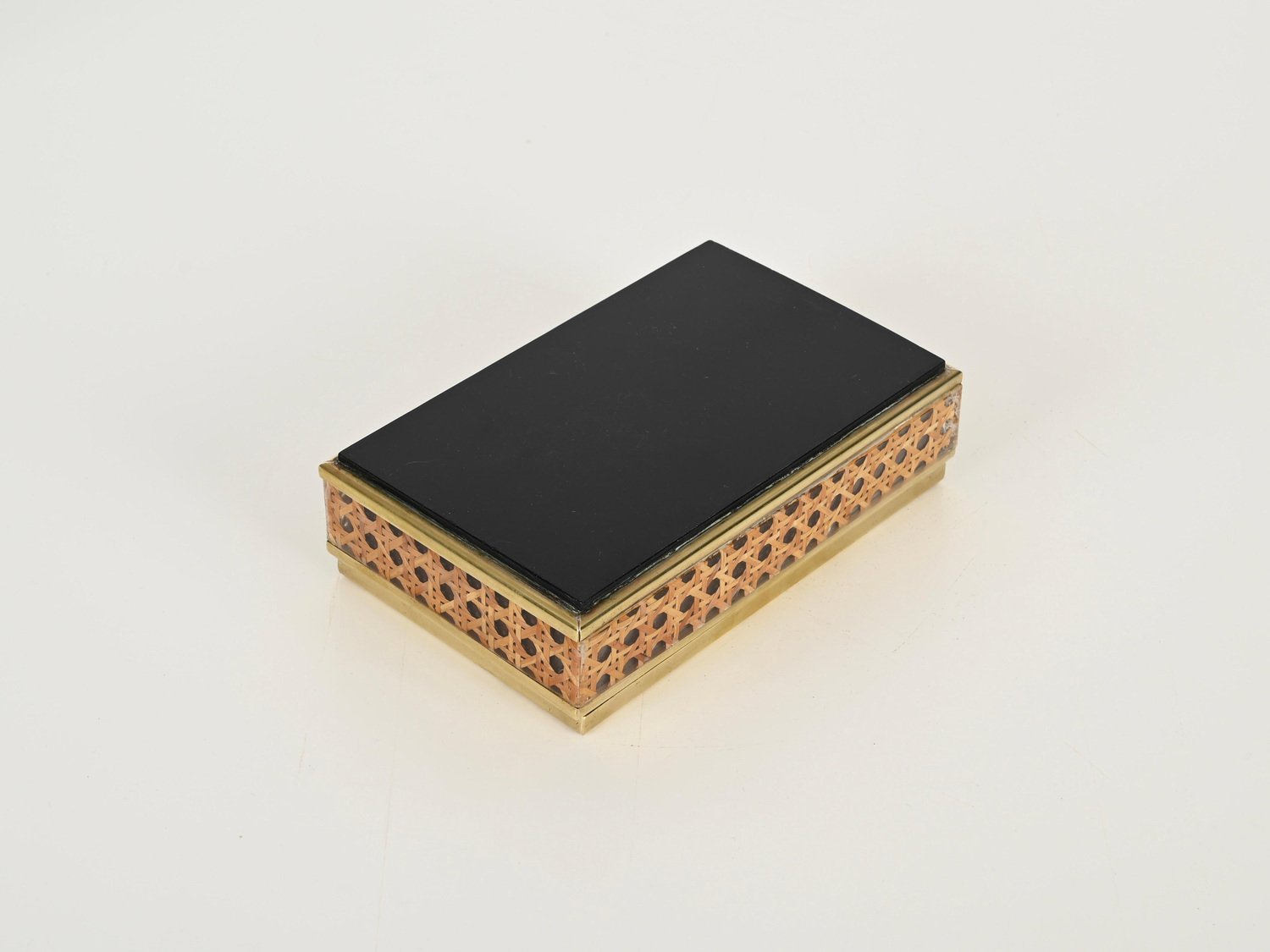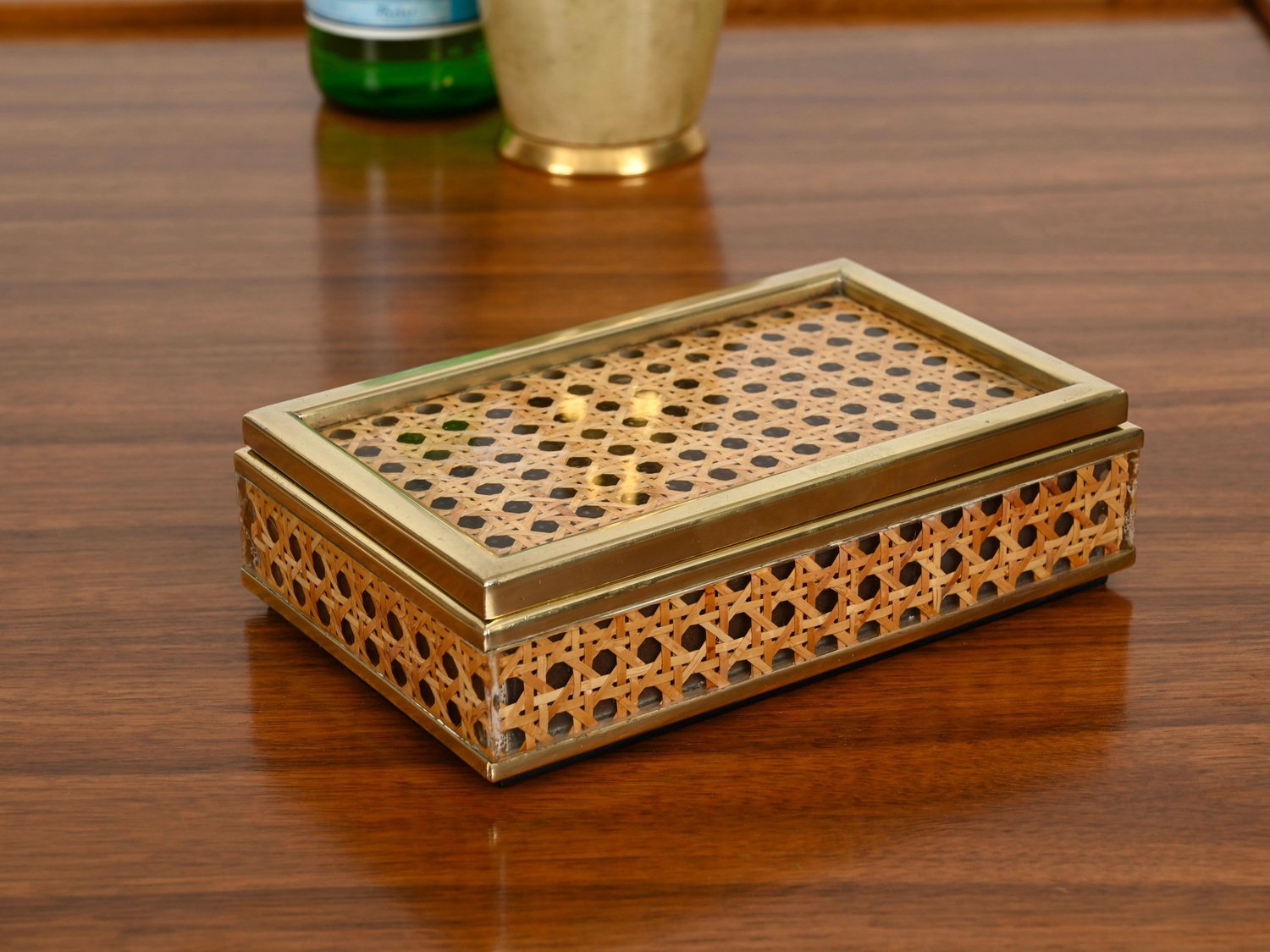 Mid-Century Dekorative Dose aus Messing, Acrylglas & Wiener Stroh von Christian Dior, Italien, 1970er
