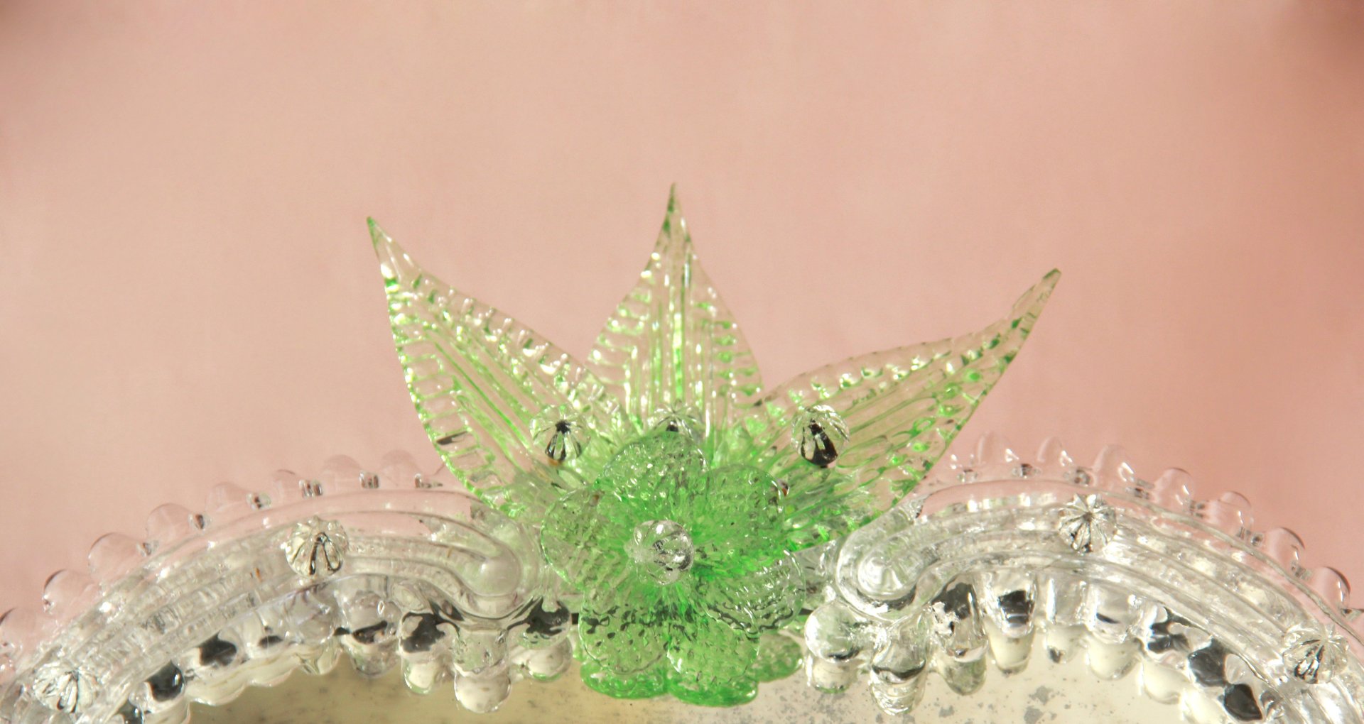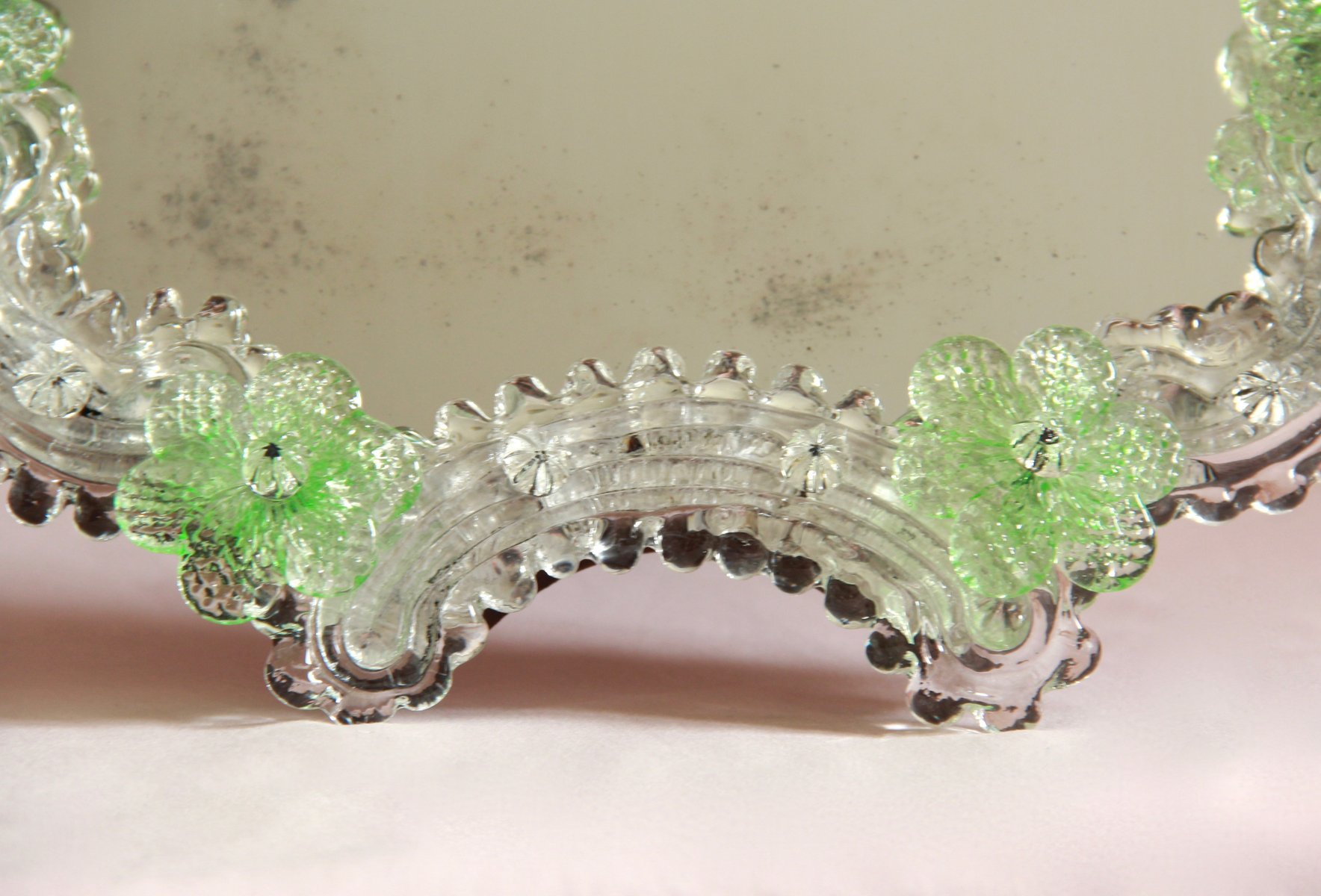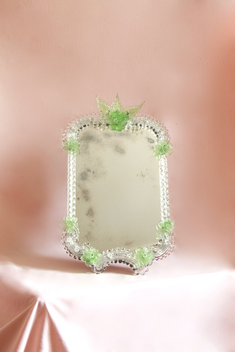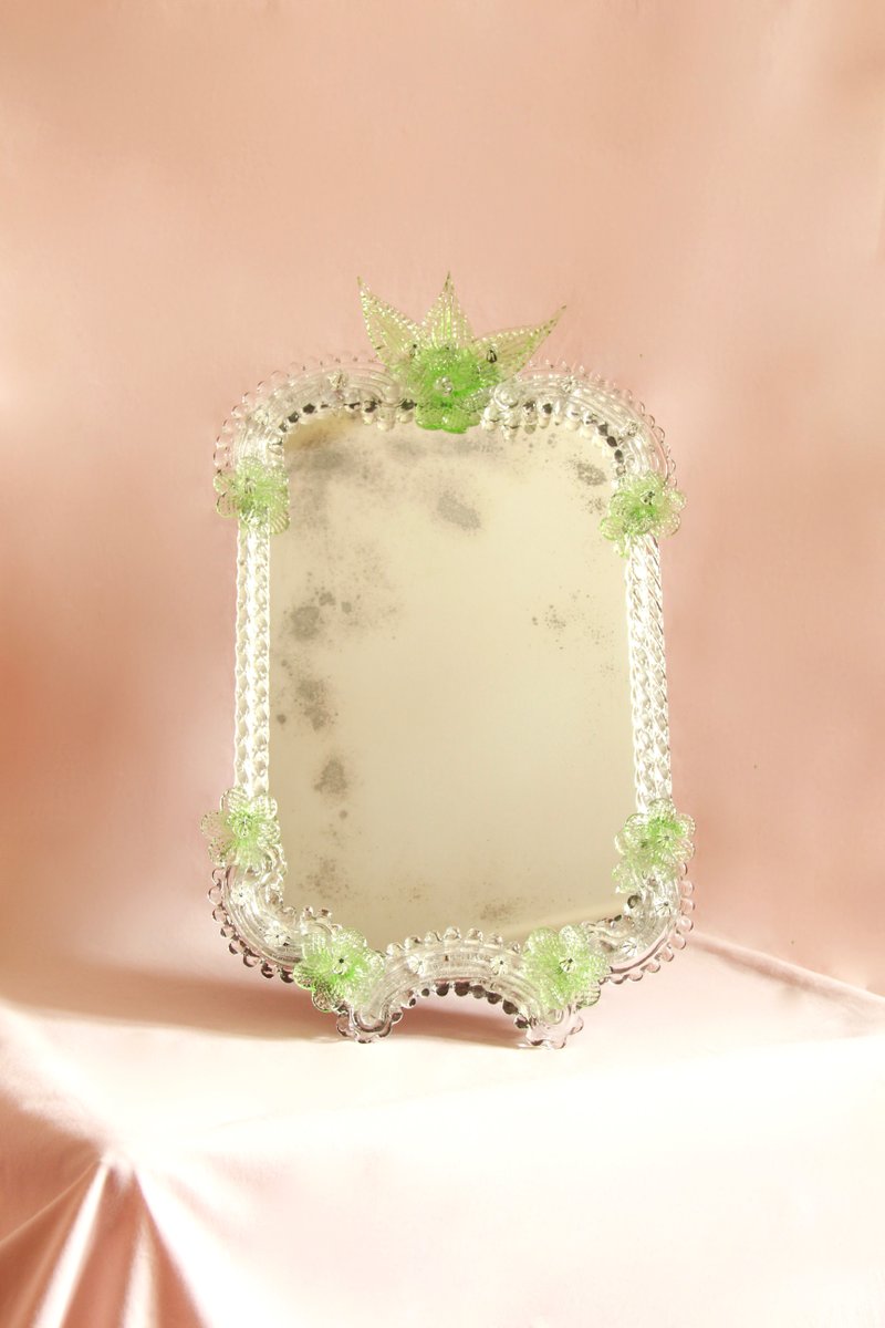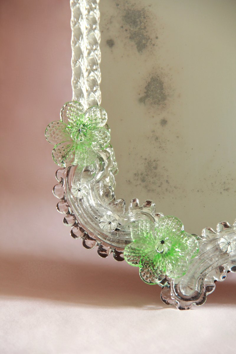 Mid-Century Efurgia Spiegel aus Muranoglas mit Grünen Blumen, Italien, 1950er