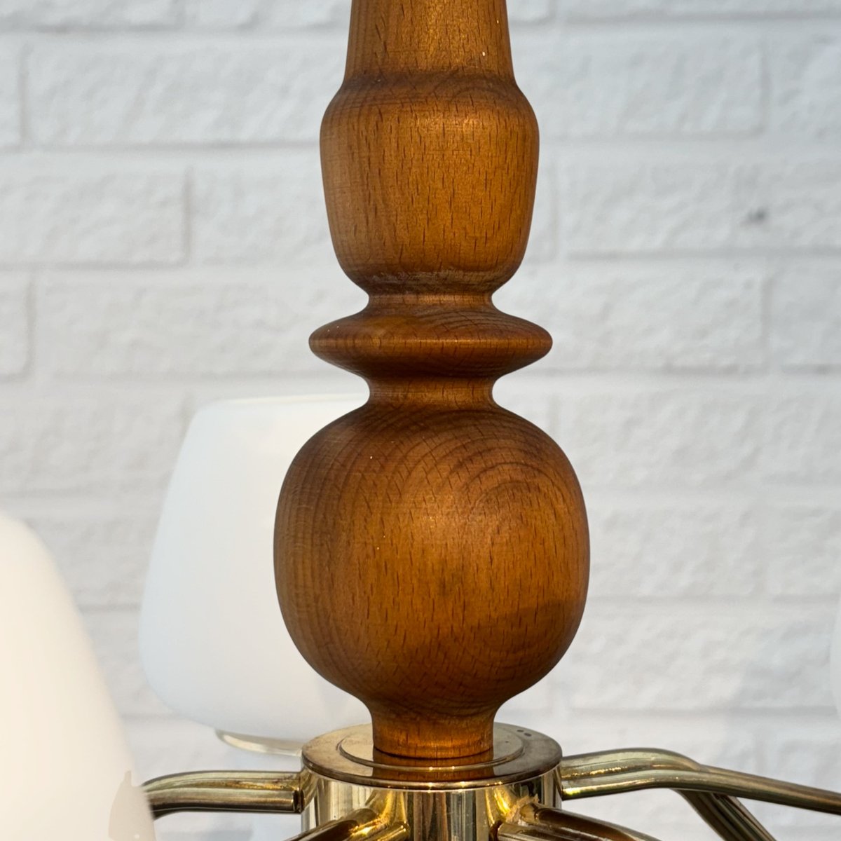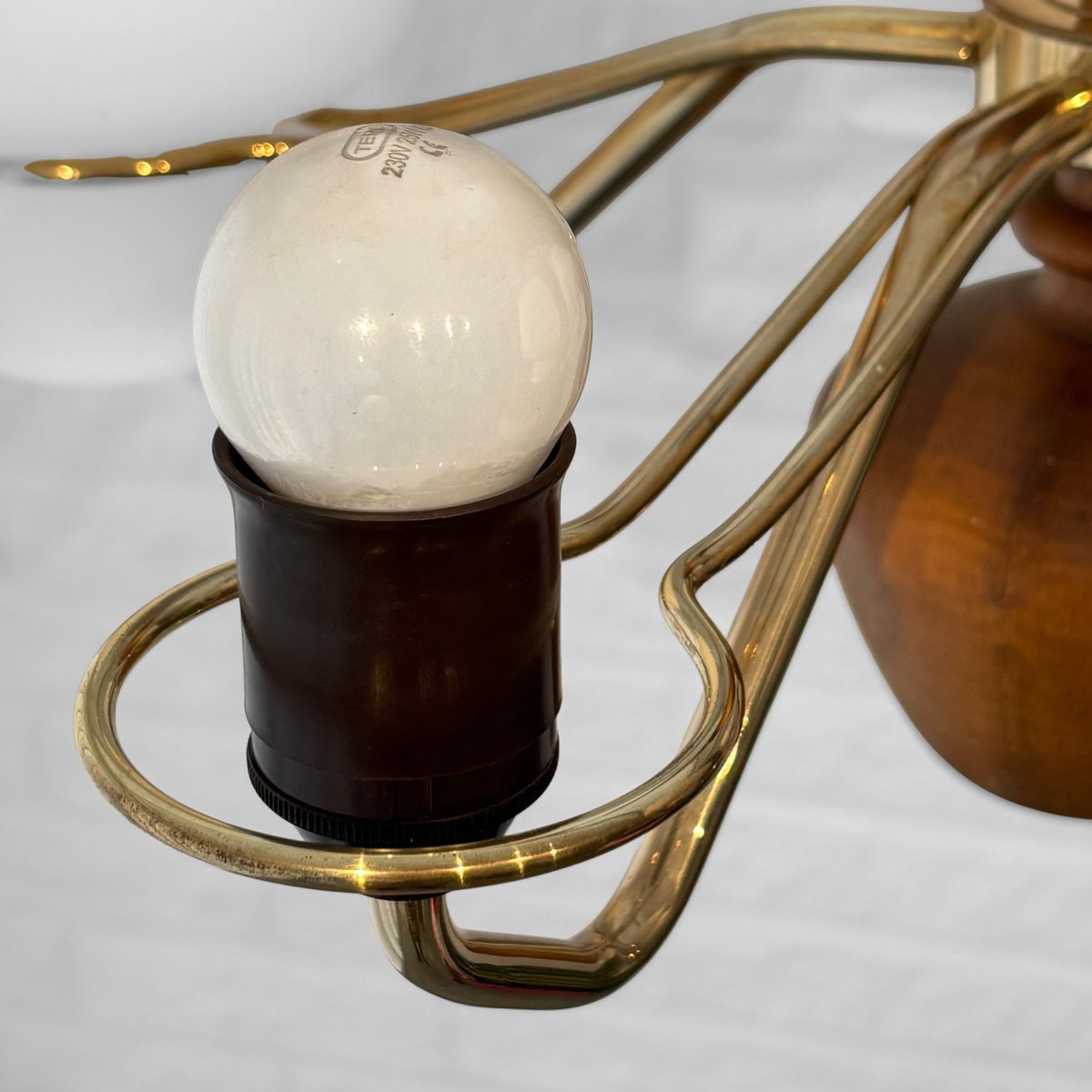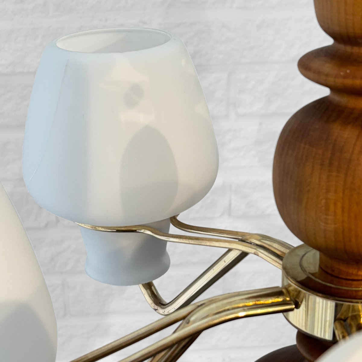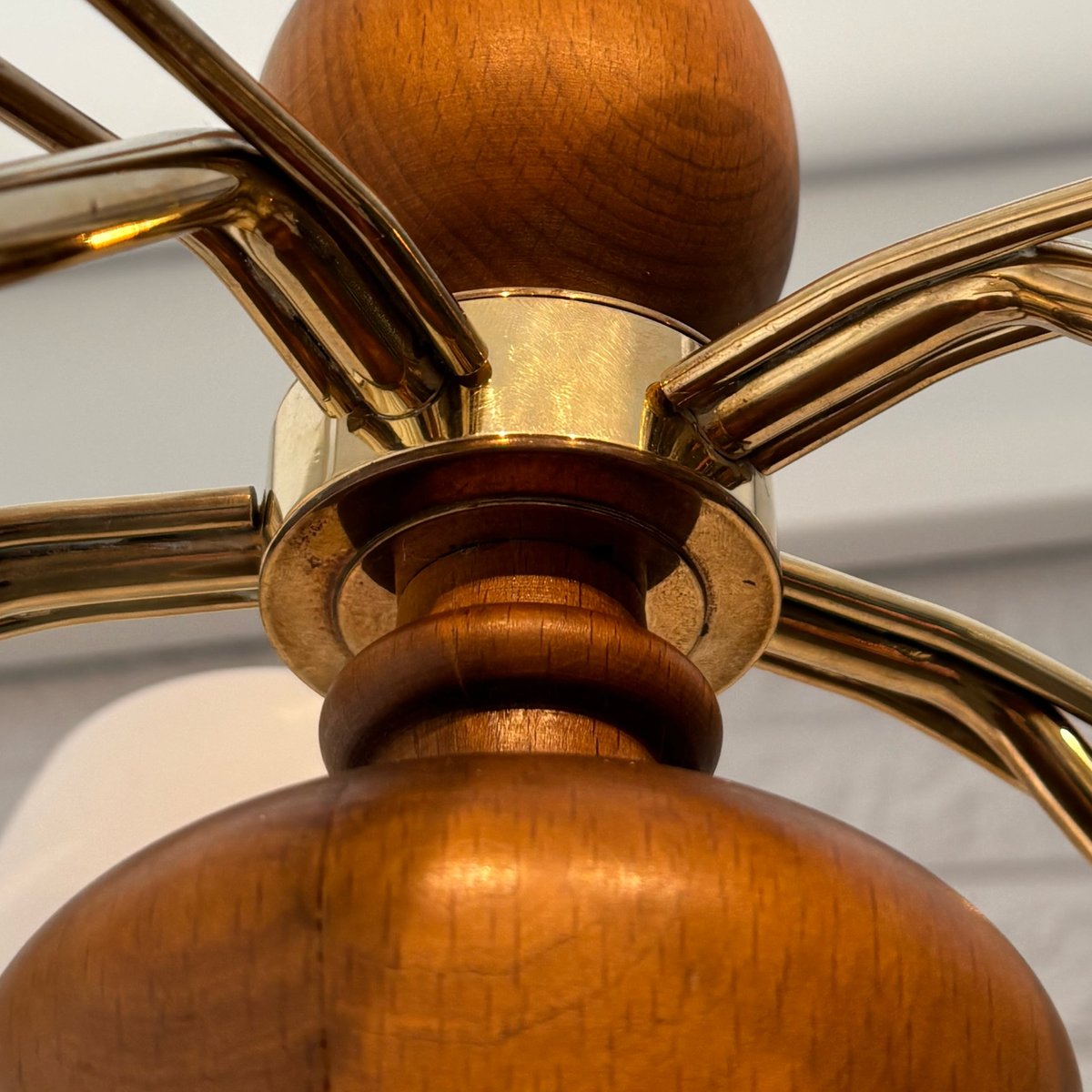 Its production most prolific from the 1930s through the 1960s, ASEA’s lighting design spanned desk, table, floor, and wall lamps, as well as chandeliers, pendants, and other ceiling lights. While many of ASEA’s lighting designs remain unattributed, there are notable exceptions: Lisa Johansson-Pape’s opaline-glass Onion series, for instance, for which Johansson-Pape was awarded the gold medal at 1954’s Triennale di Milano. Other standout series include Svend Aage Holm Sørensen’s five-armed chandelier (ca. 1950s) and Space Age-style table lamps (1950s); and an array of brass pieces by Hans Bergström, who, while heading Ateljé Lyktan for three decades (1940s, through the 1960s) contributed widely to the ASEA catalog.