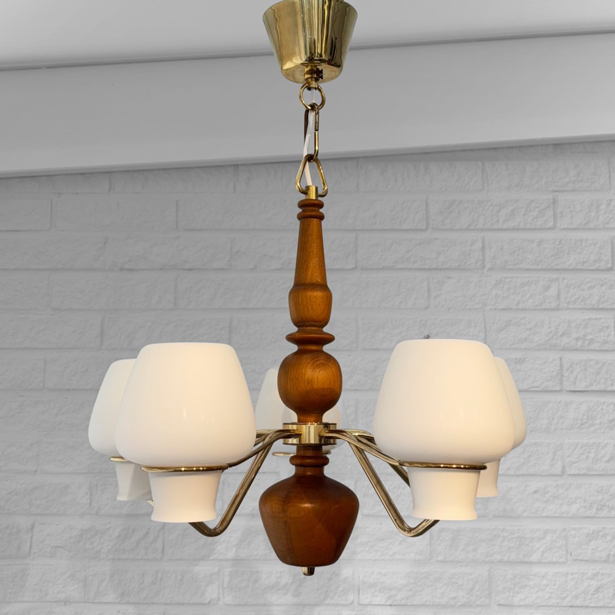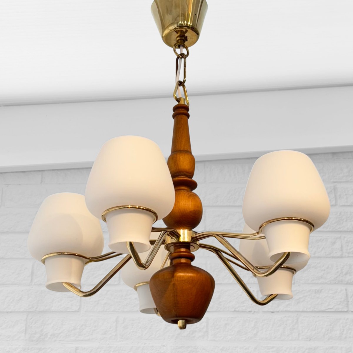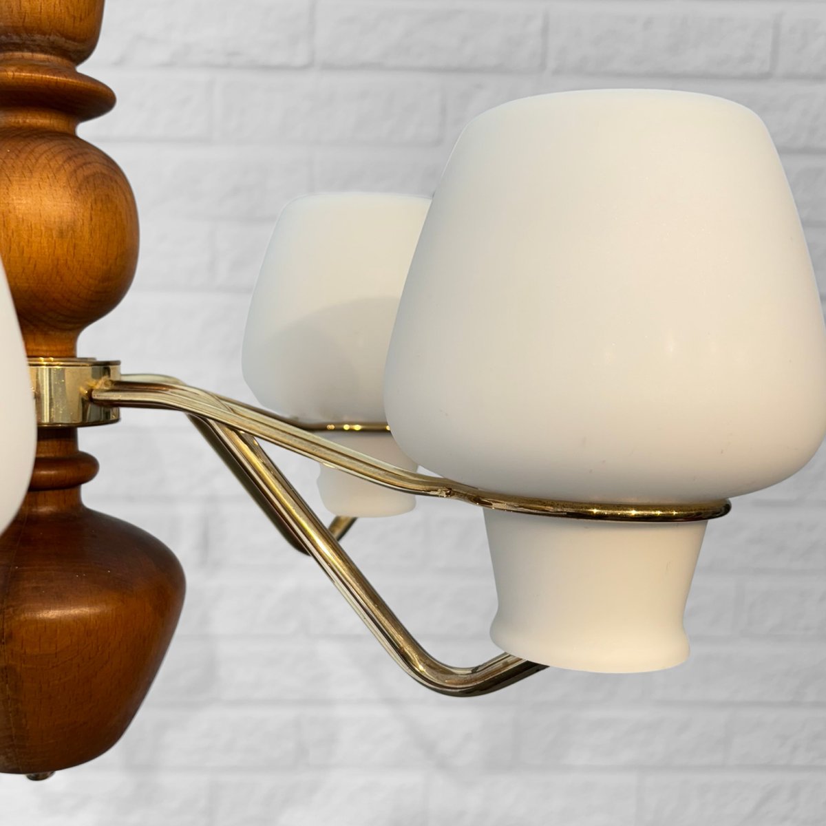 Its production most prolific from the 1930s through the 1960s, ASEA’s lighting design spanned desk, table, floor, and wall lamps, as well as chandeliers, pendants, and other ceiling lights. While many of ASEA’s lighting designs remain unattributed, there are notable exceptions: Lisa Johansson-Pape’s opaline-glass Onion series, for instance, for which Johansson-Pape was awarded the gold medal at 1954’s Triennale di Milano. Other standout series include Svend Aage Holm Sørensen’s five-armed chandelier (ca. 1950s) and Space Age-style table lamps (1950s); and an array of brass pieces by Hans Bergström, who, while heading Ateljé Lyktan for three decades (1940s, through the 1960s) contributed widely to the ASEA catalog.