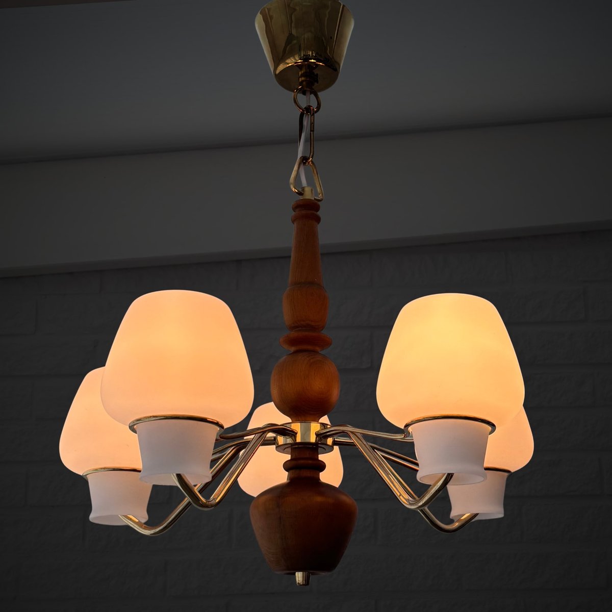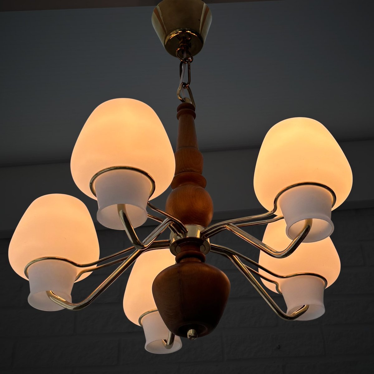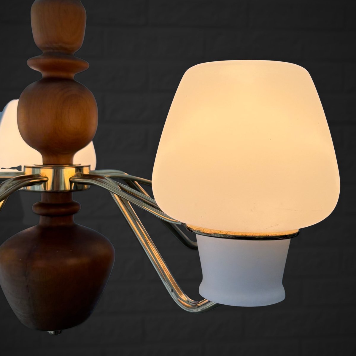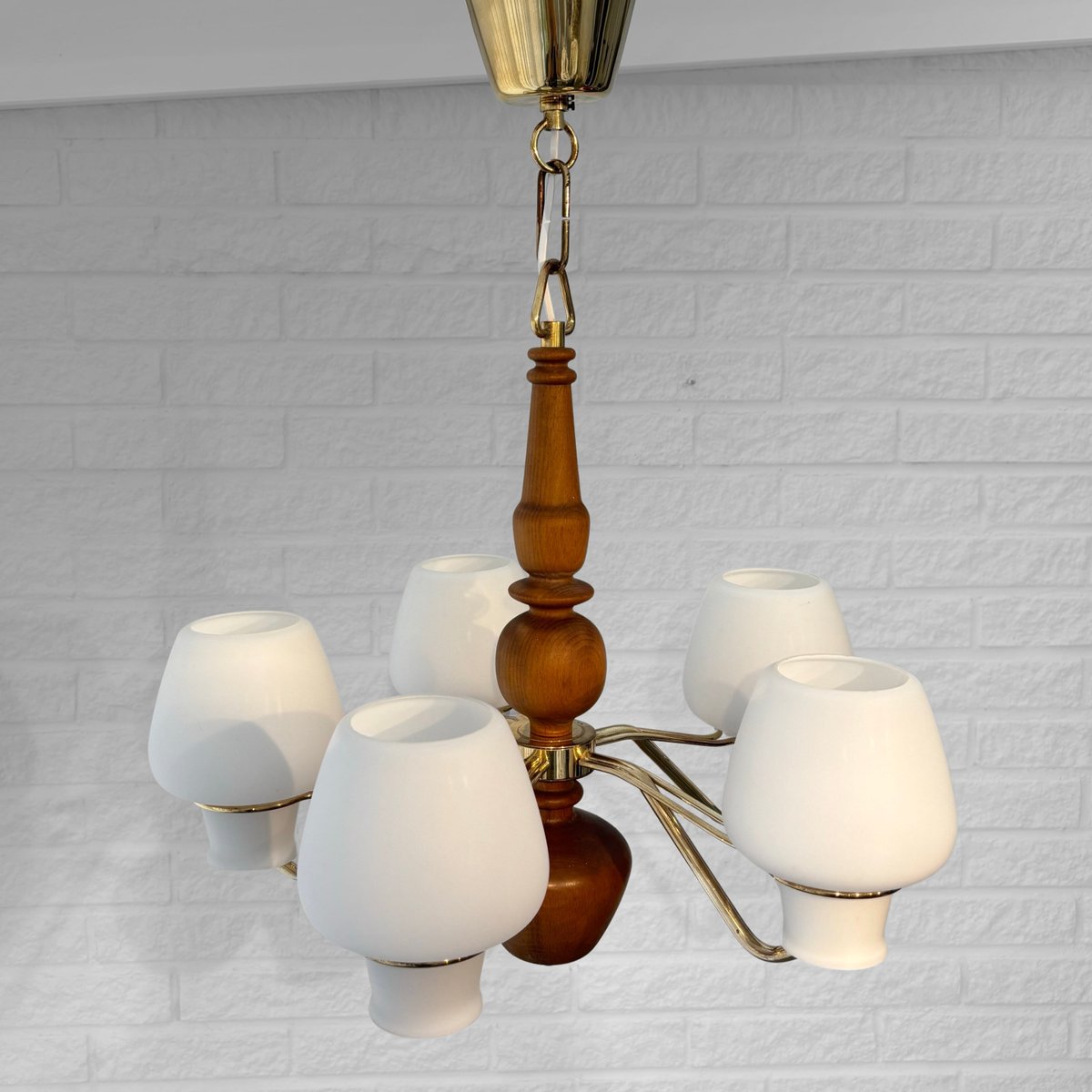 Its production most prolific from the 1930s through the 1960s, ASEA’s lighting design spanned desk, table, floor, and wall lamps, as well as chandeliers, pendants, and other ceiling lights. While many of ASEA’s lighting designs remain unattributed, there are notable exceptions: Lisa Johansson-Pape’s opaline-glass Onion series, for instance, for which Johansson-Pape was awarded the gold medal at 1954’s Triennale di Milano. Other standout series include Svend Aage Holm Sørensen’s five-armed chandelier (ca. 1950s) and Space Age-style table lamps (1950s); and an array of brass pieces by Hans Bergström, who, while heading Ateljé Lyktan for three decades (1940s, through the 1960s) contributed widely to the ASEA catalog.